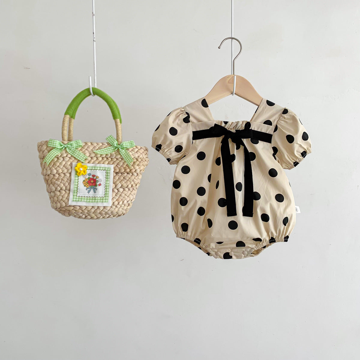 G25051418嬰兒韓版薄款甜美夏裝嬰兒波點女寶寶連身包屁衣嬰幼兒洋氣哈衣服