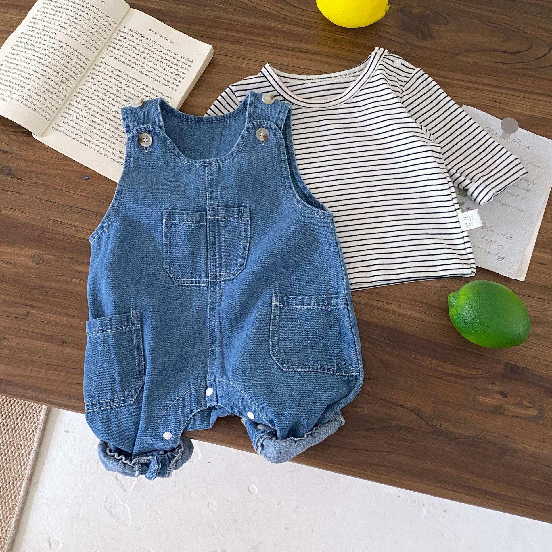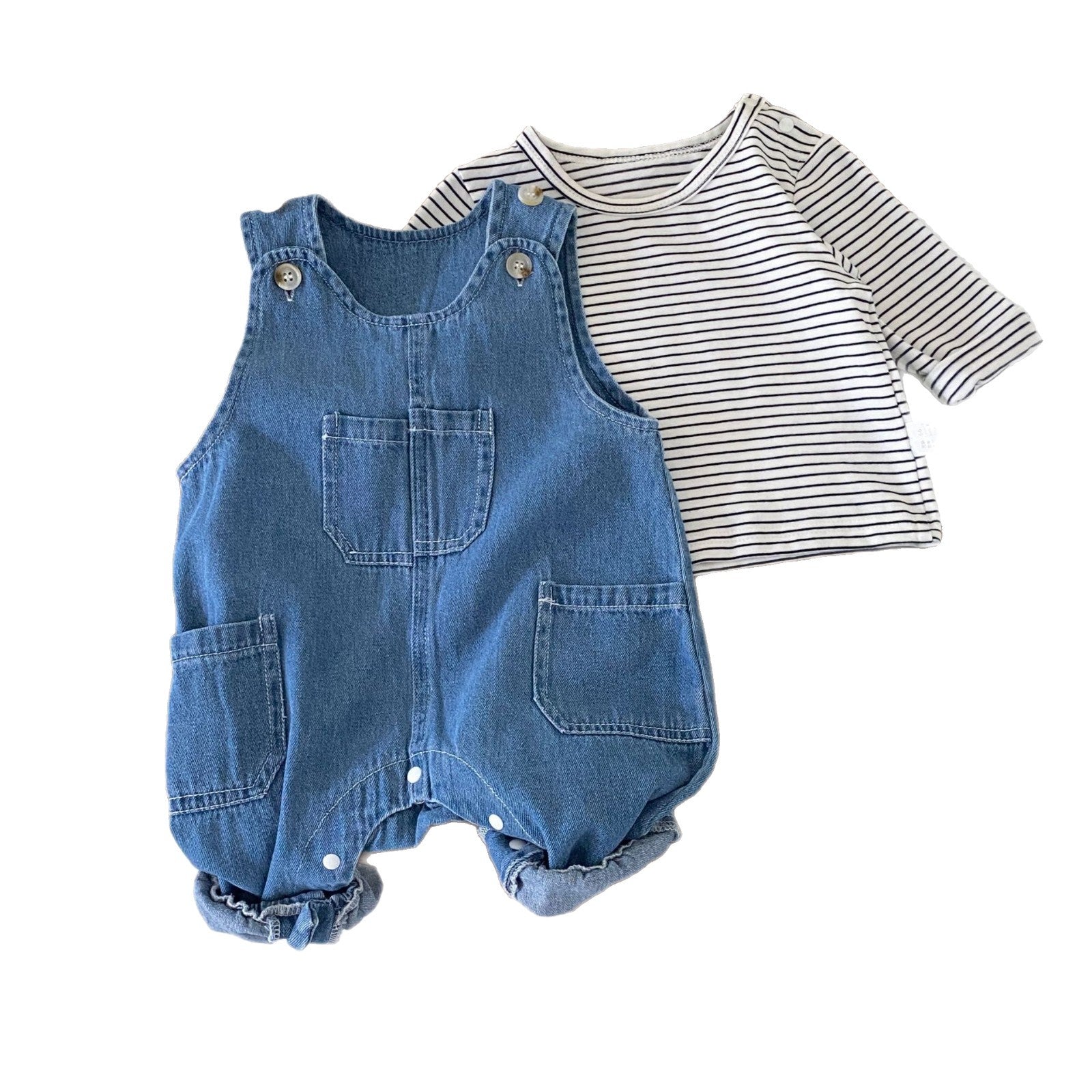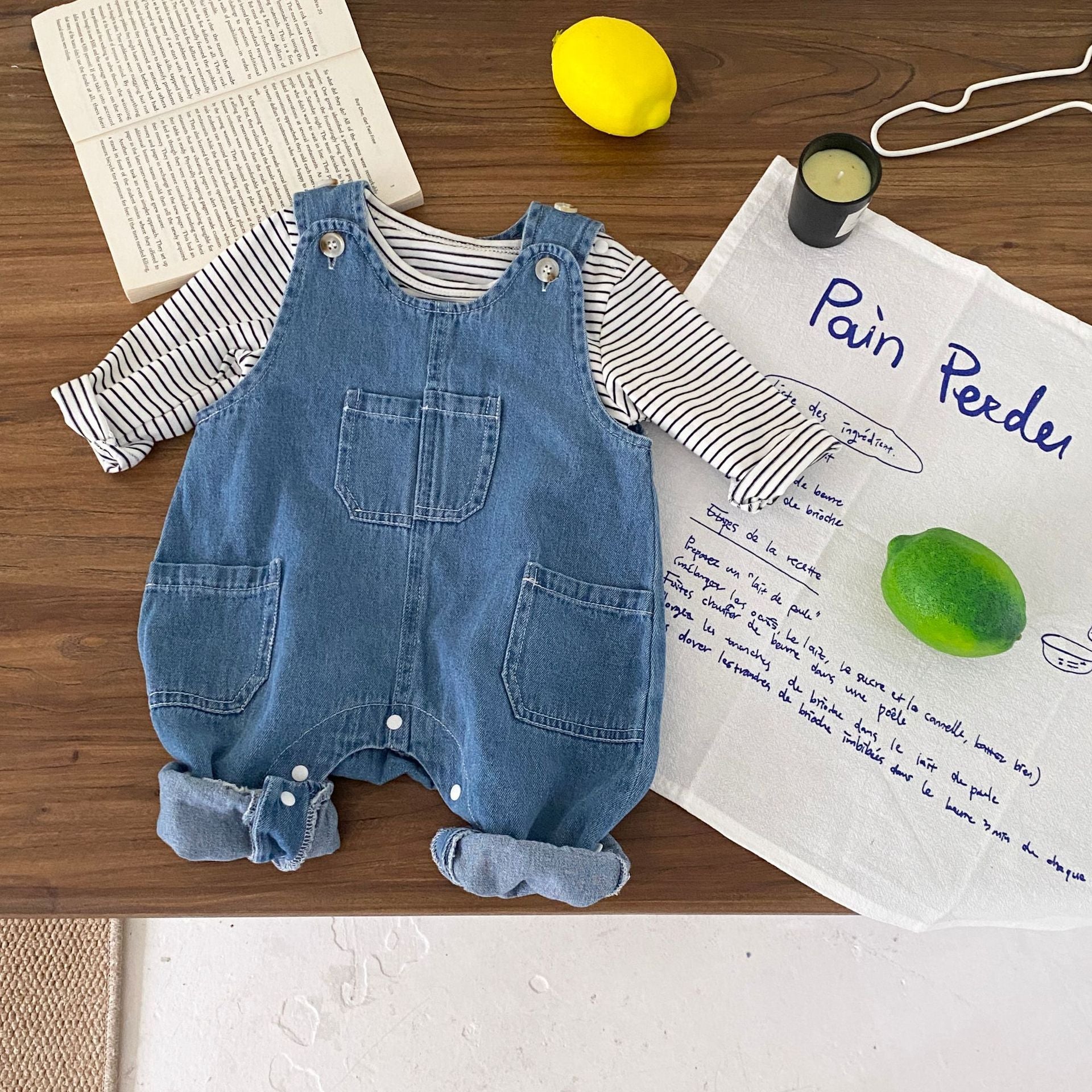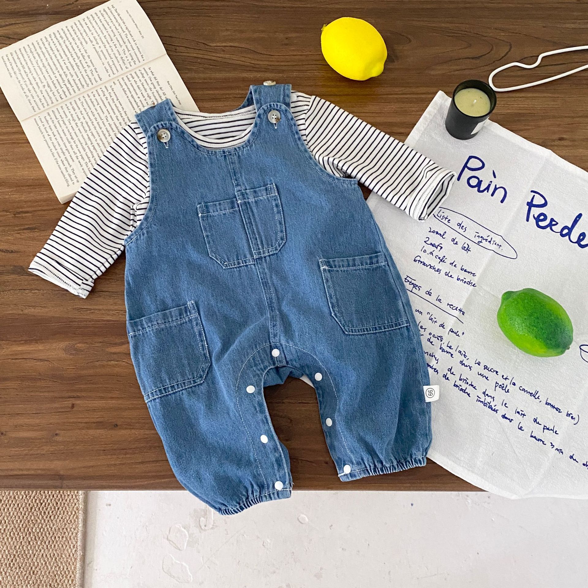 G25092505秋季嬰兒背帶褲套裝洋氣男女寶寶牛仔連身衣分體兩件套外出服