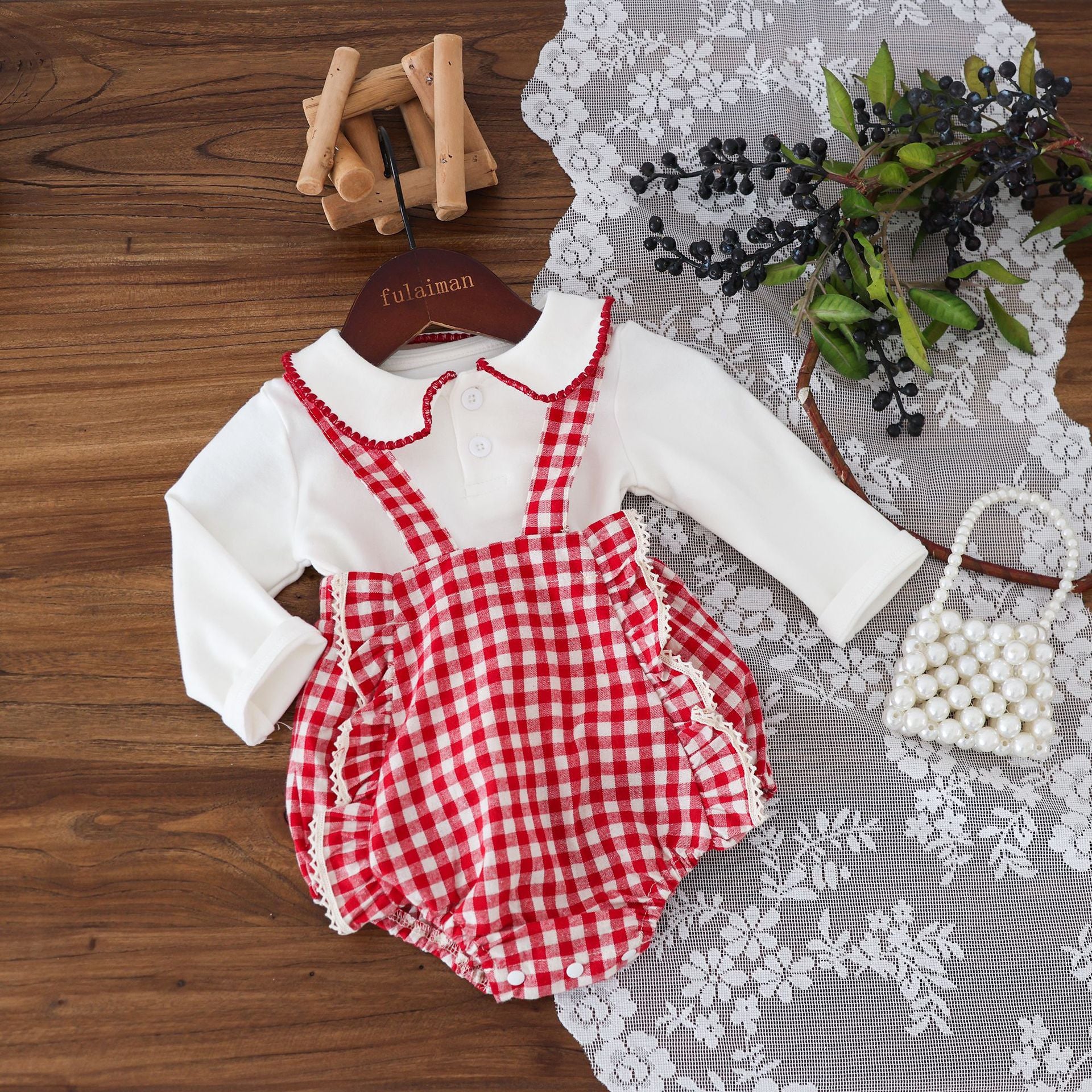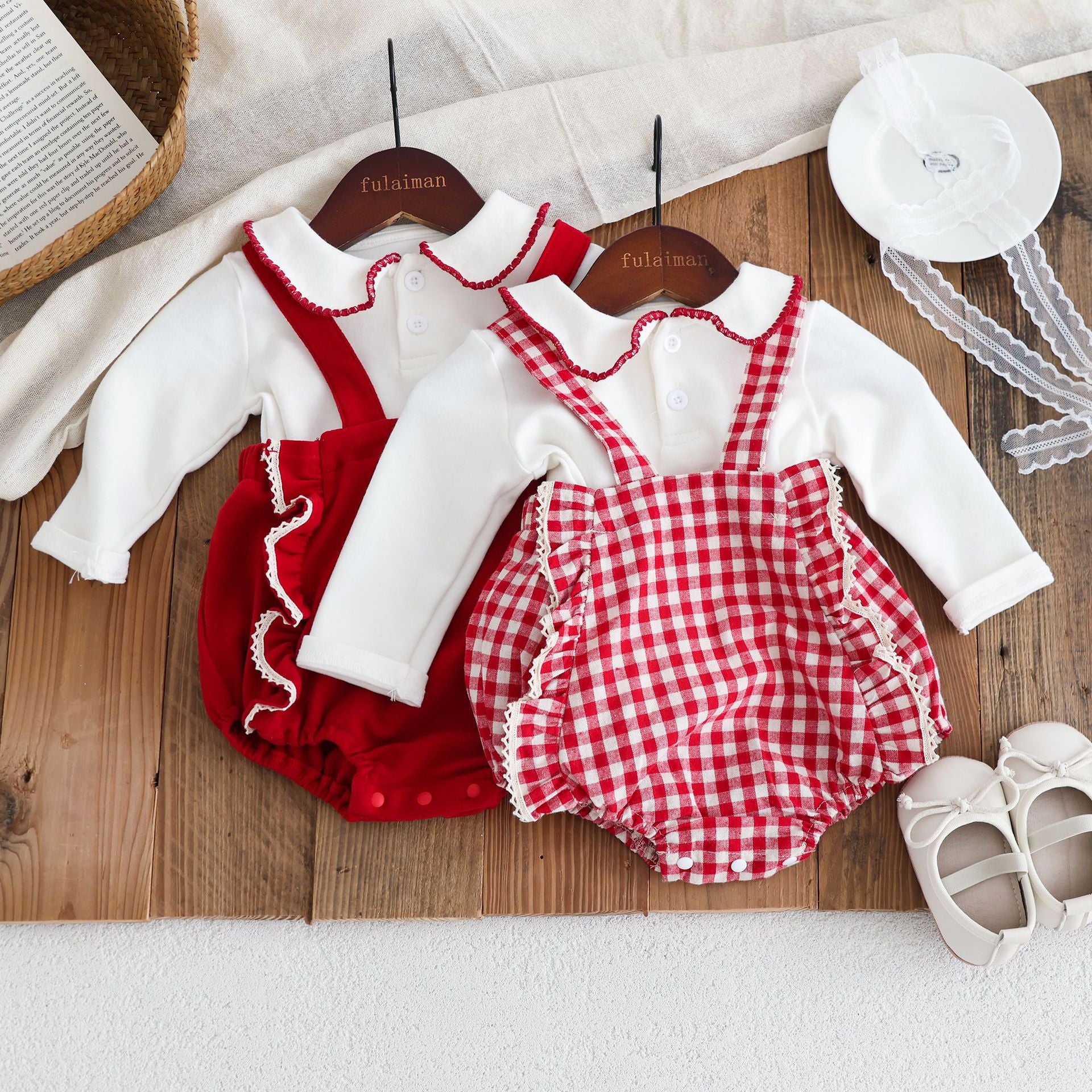 G25092508秋裝嬰兒衣服女寶寶滿月歲背帶裝韓版童裝女寶長袖上衣套裝
