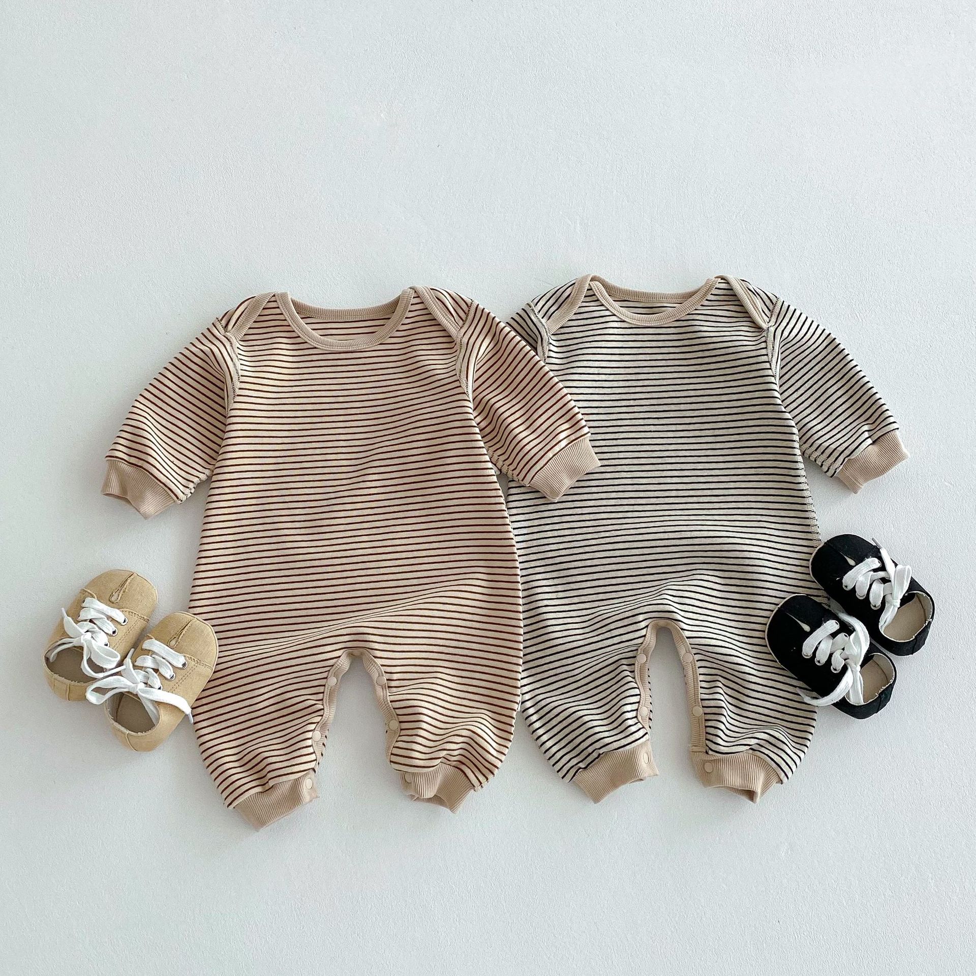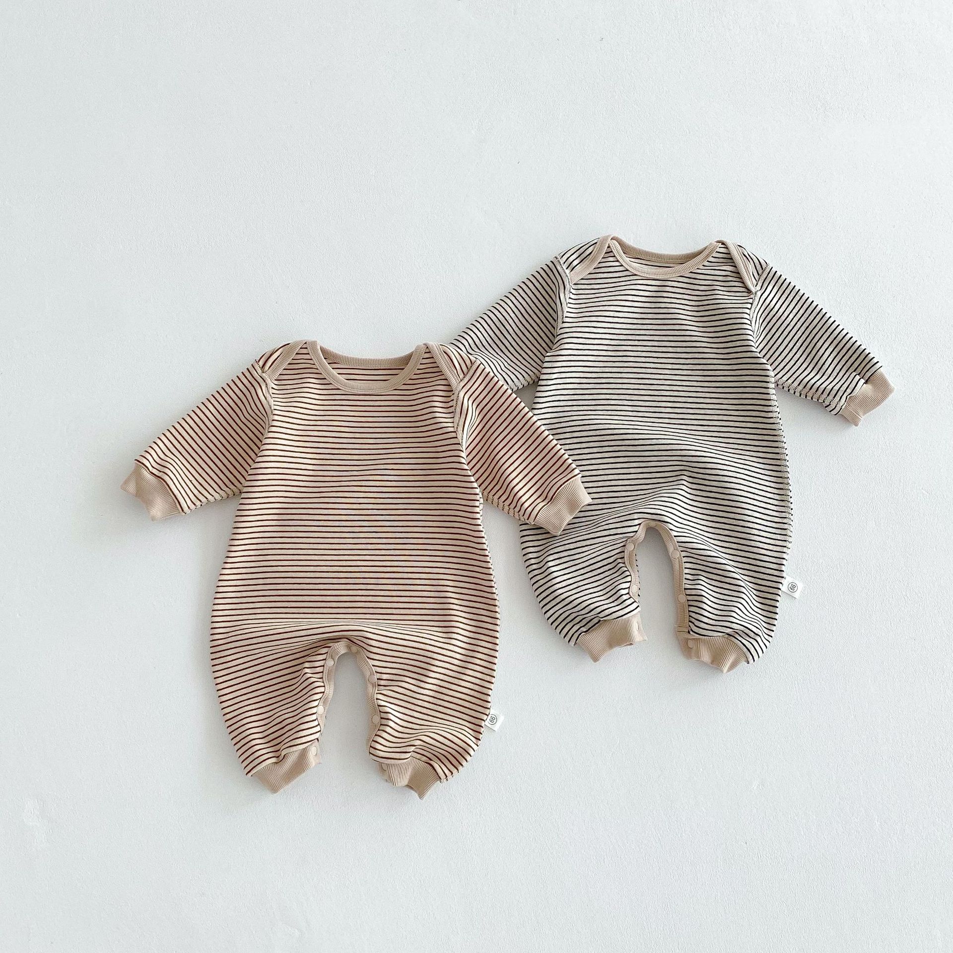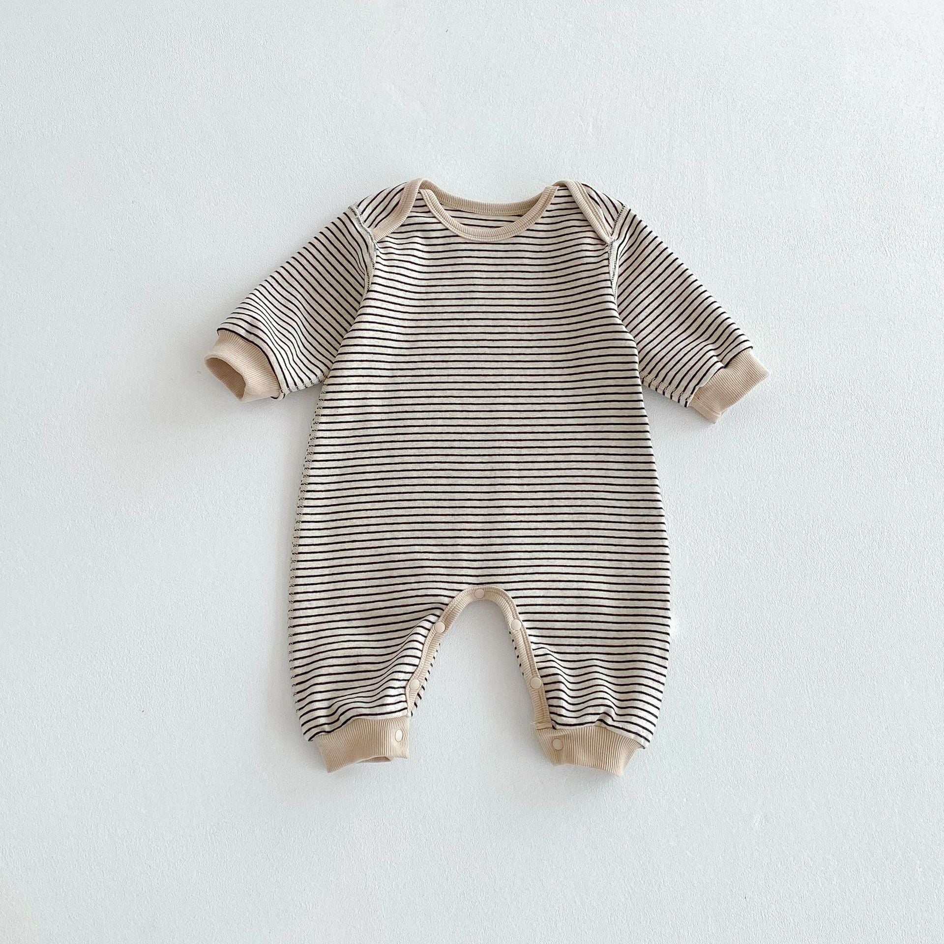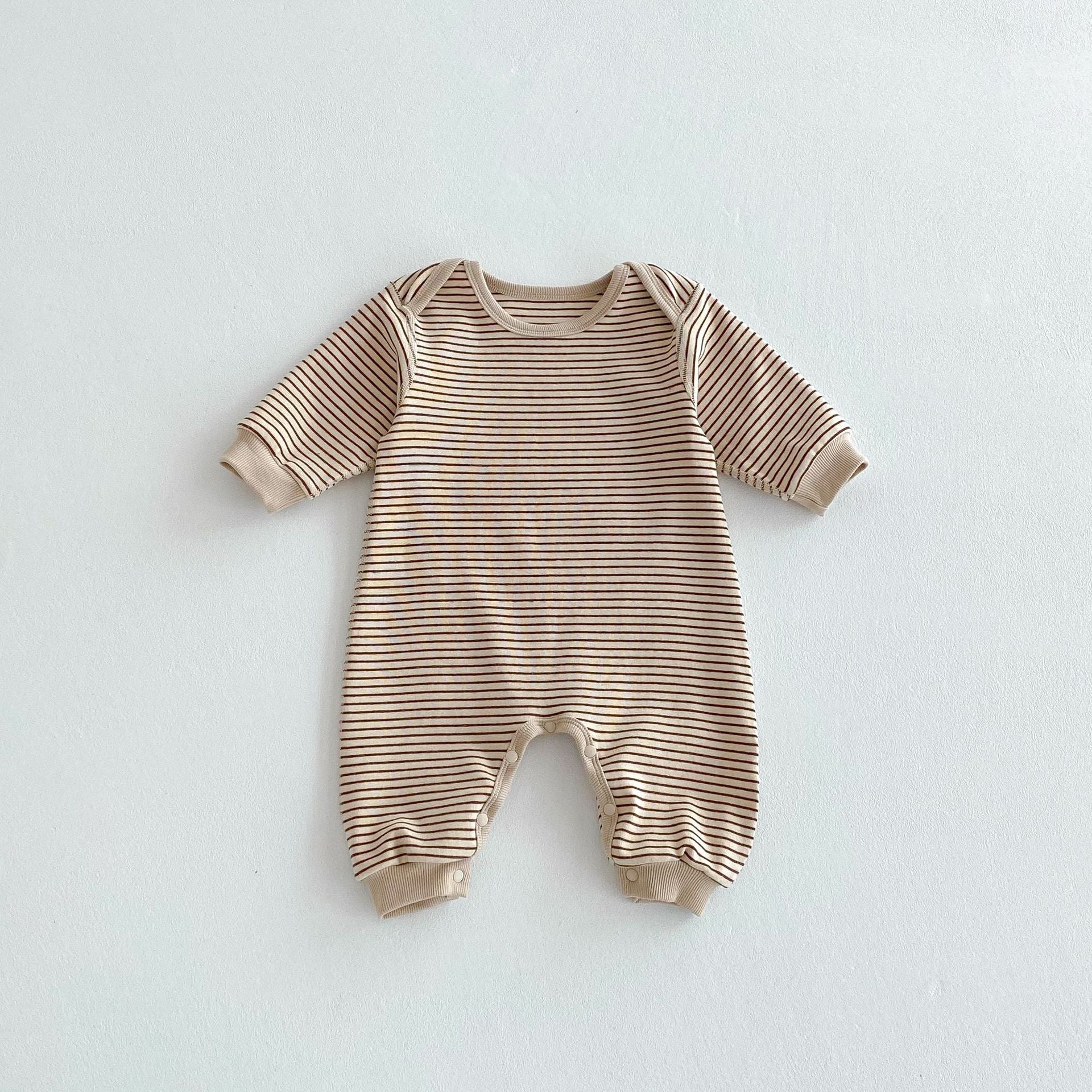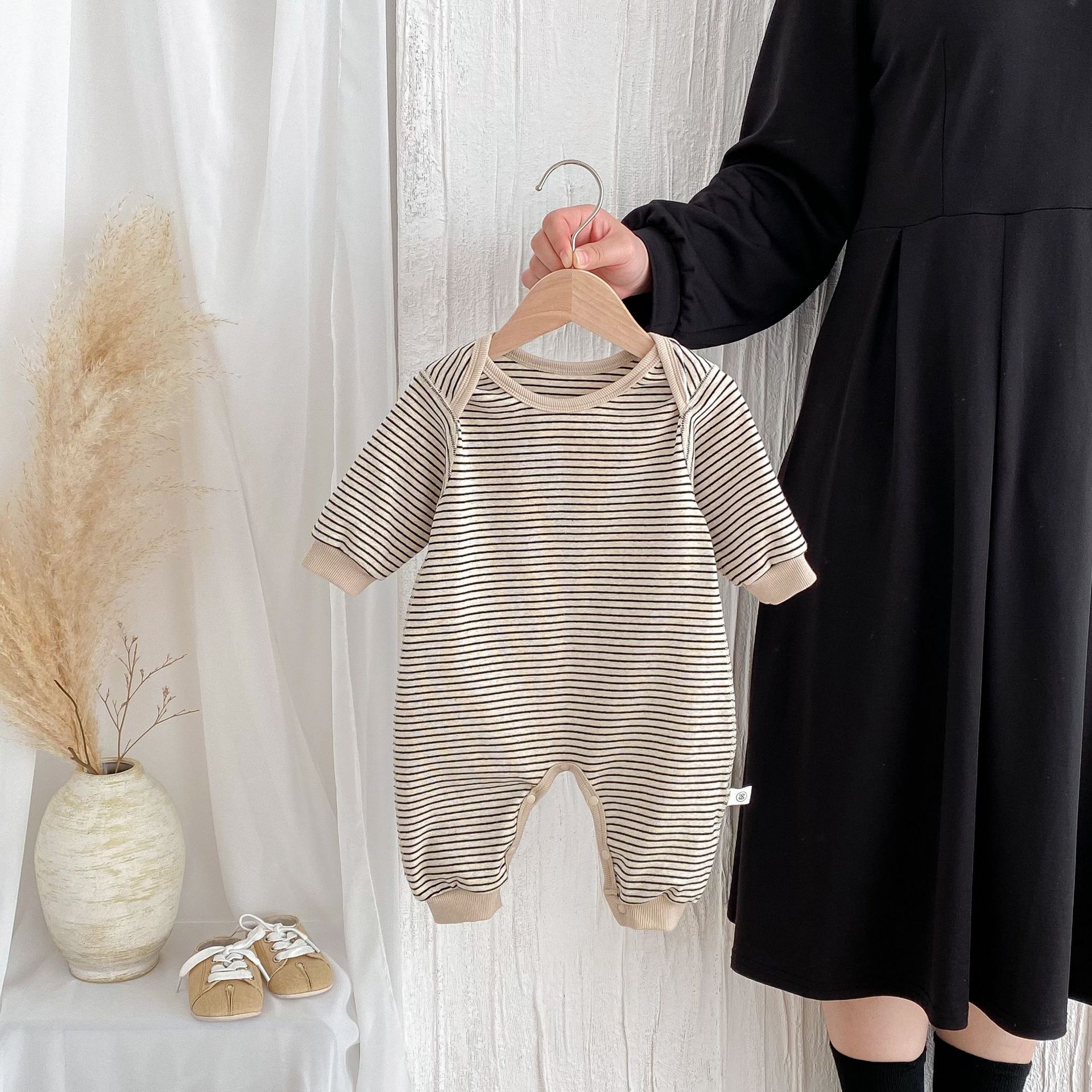 G25092510嬰兒秋冬長袖信封條紋無骨連身衣男女寶寶韓版居家服外出服