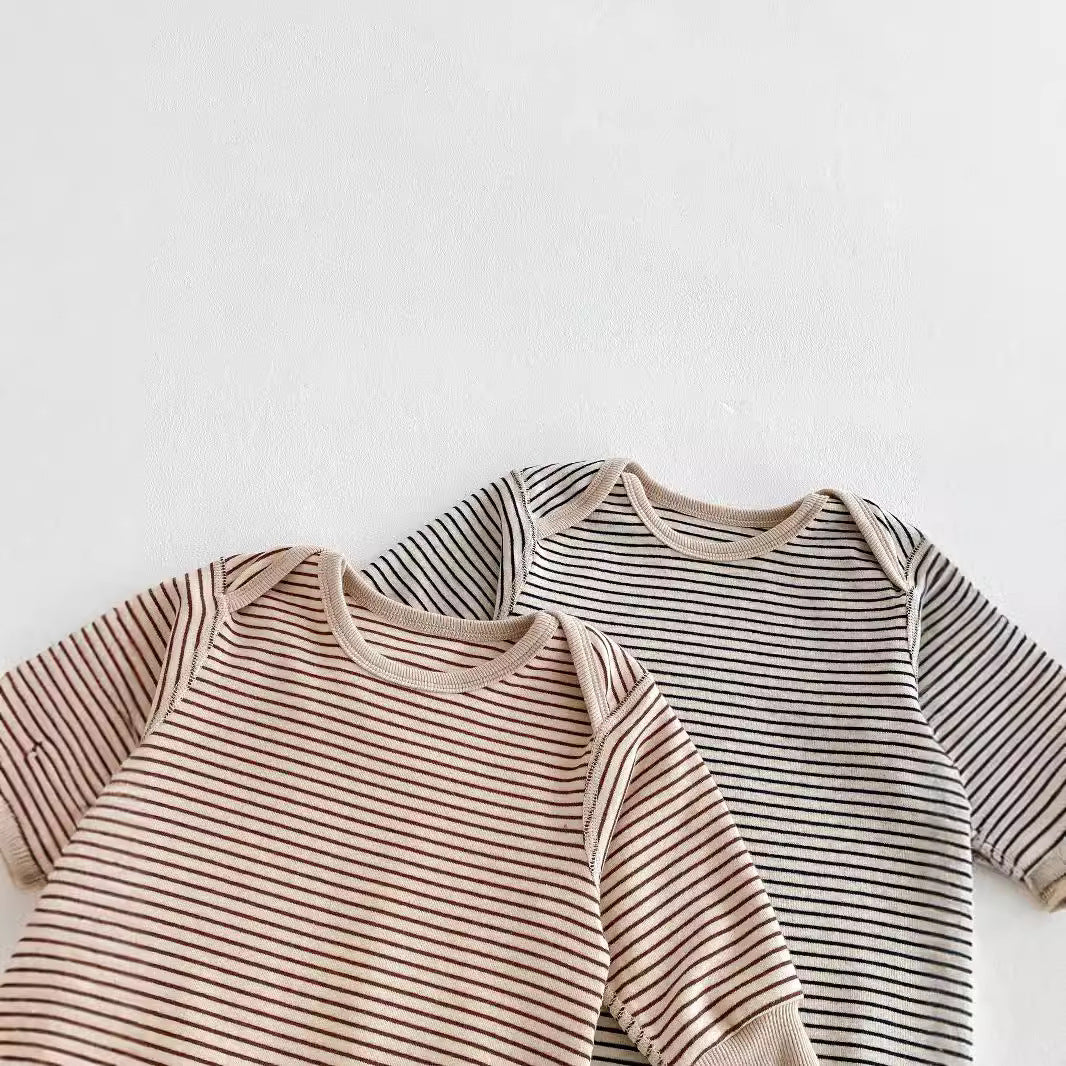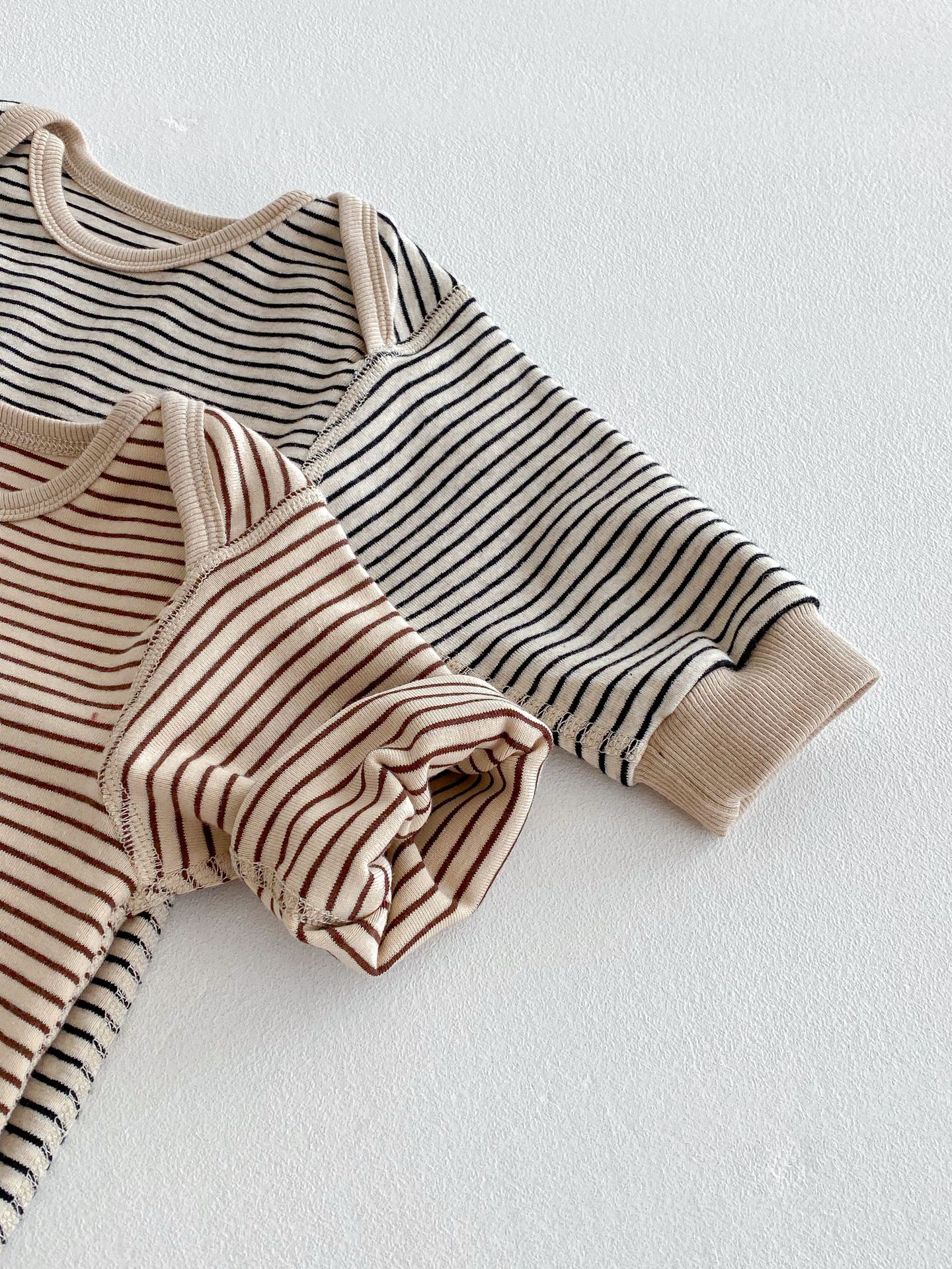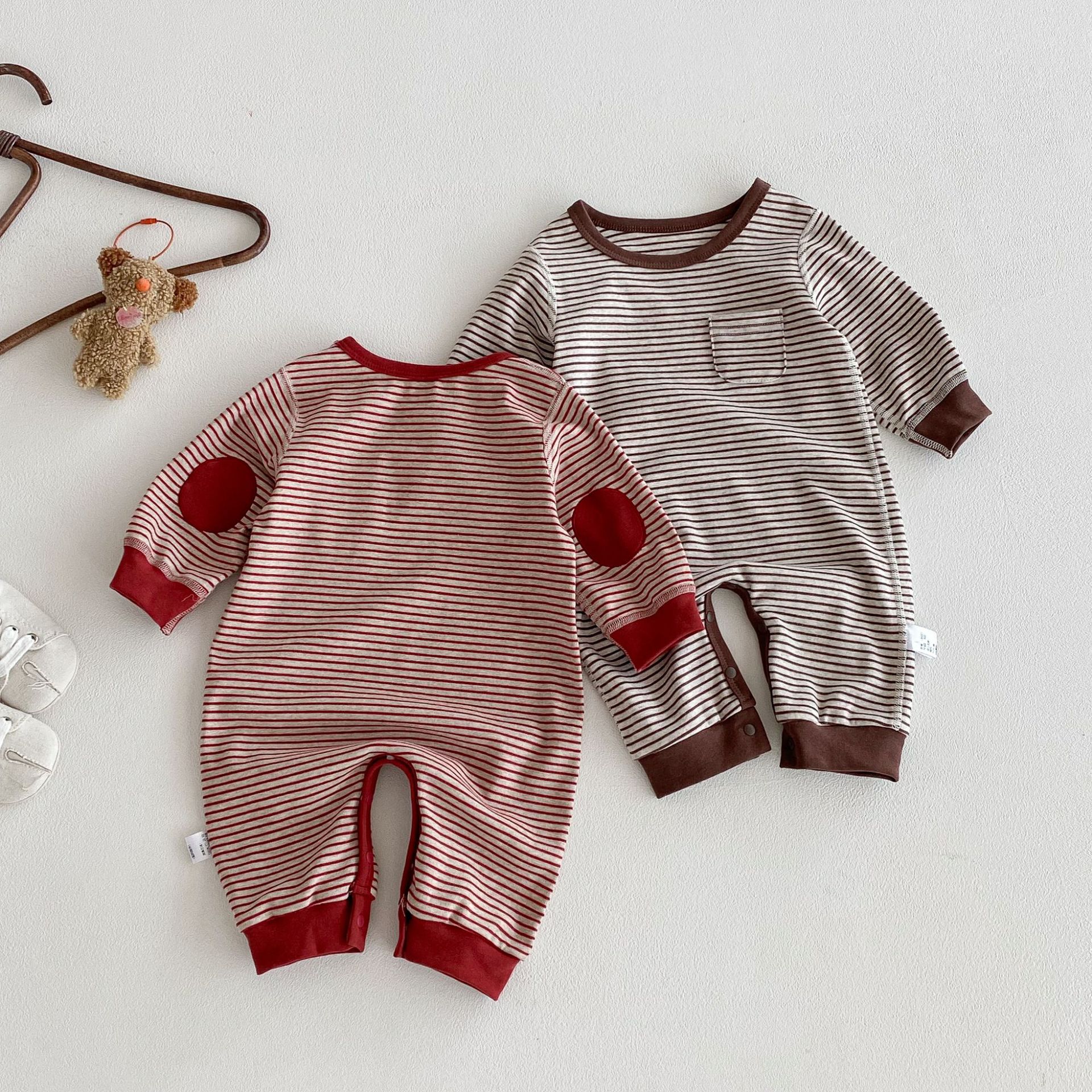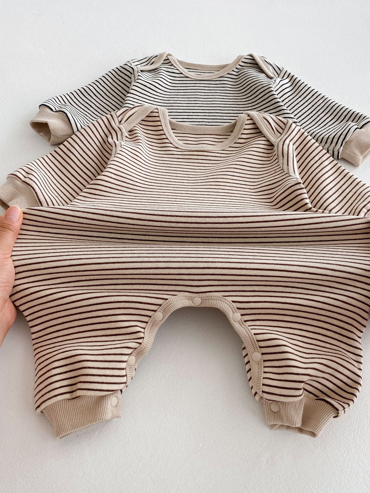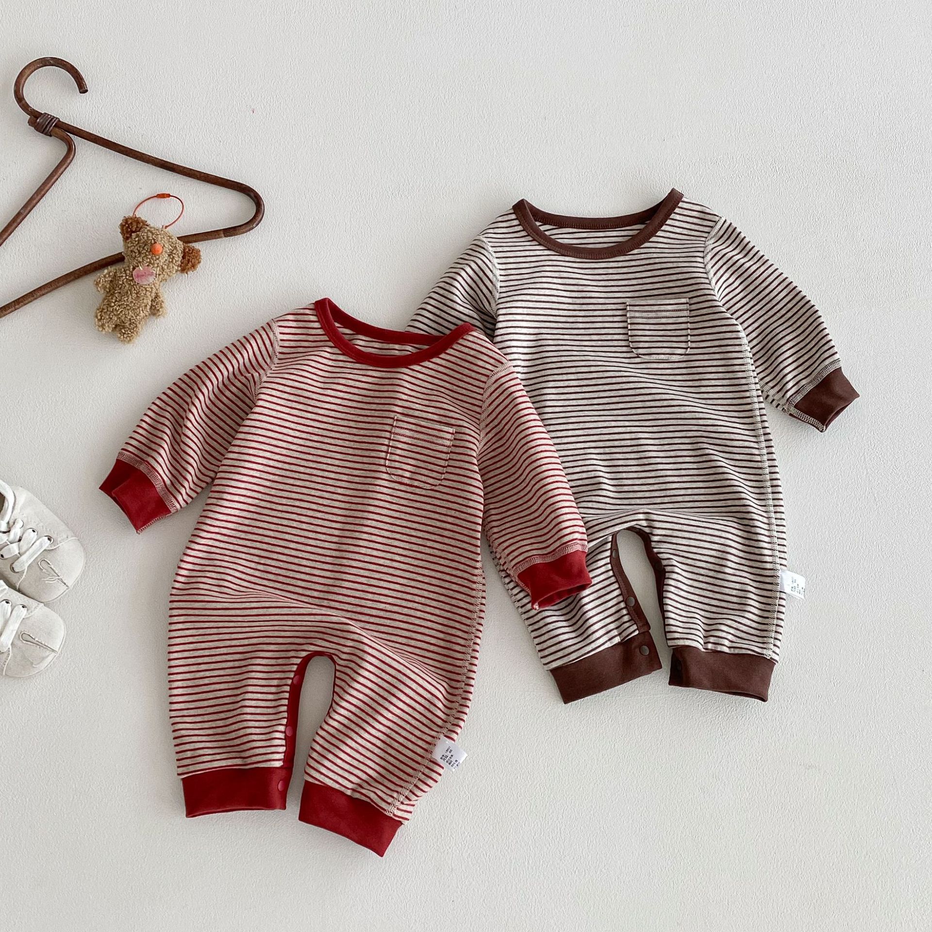 G25092510嬰兒秋冬長袖信封條紋無骨連身衣男女寶寶韓版居家服外出服
