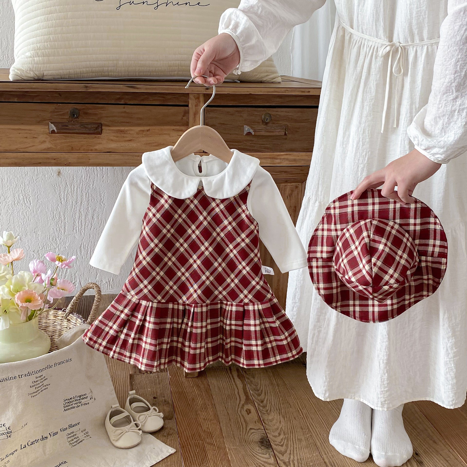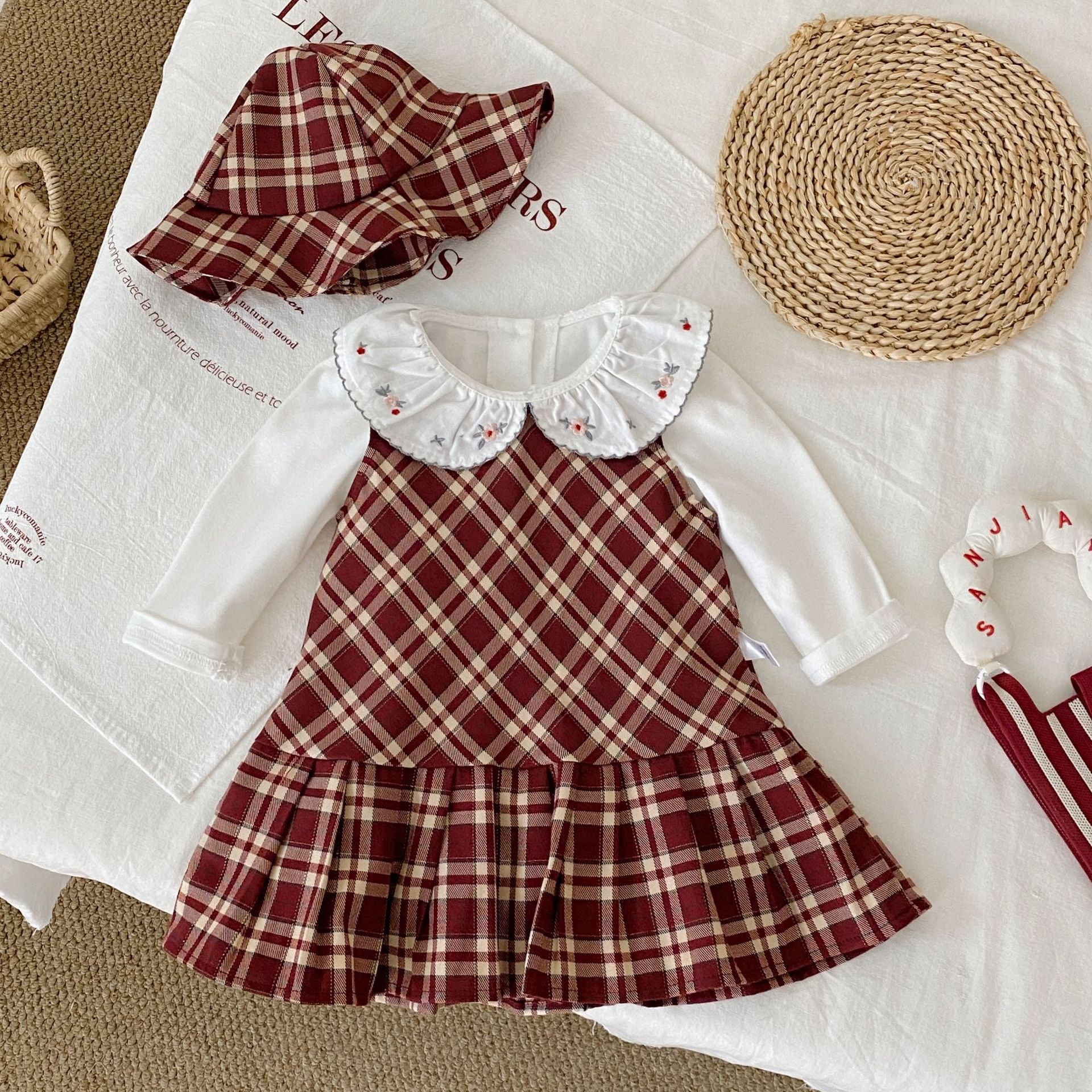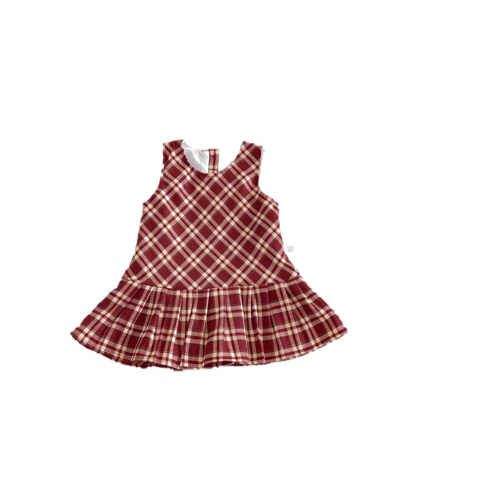 G26010109女童格子背心裙2026春秋新款中小童韓版無袖格子百褶裙新年服
