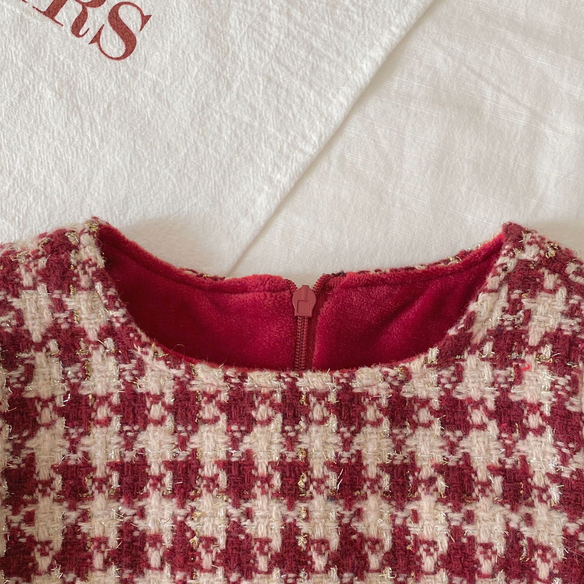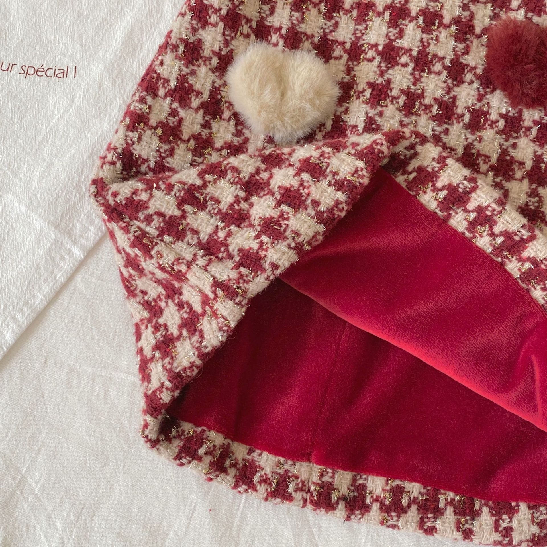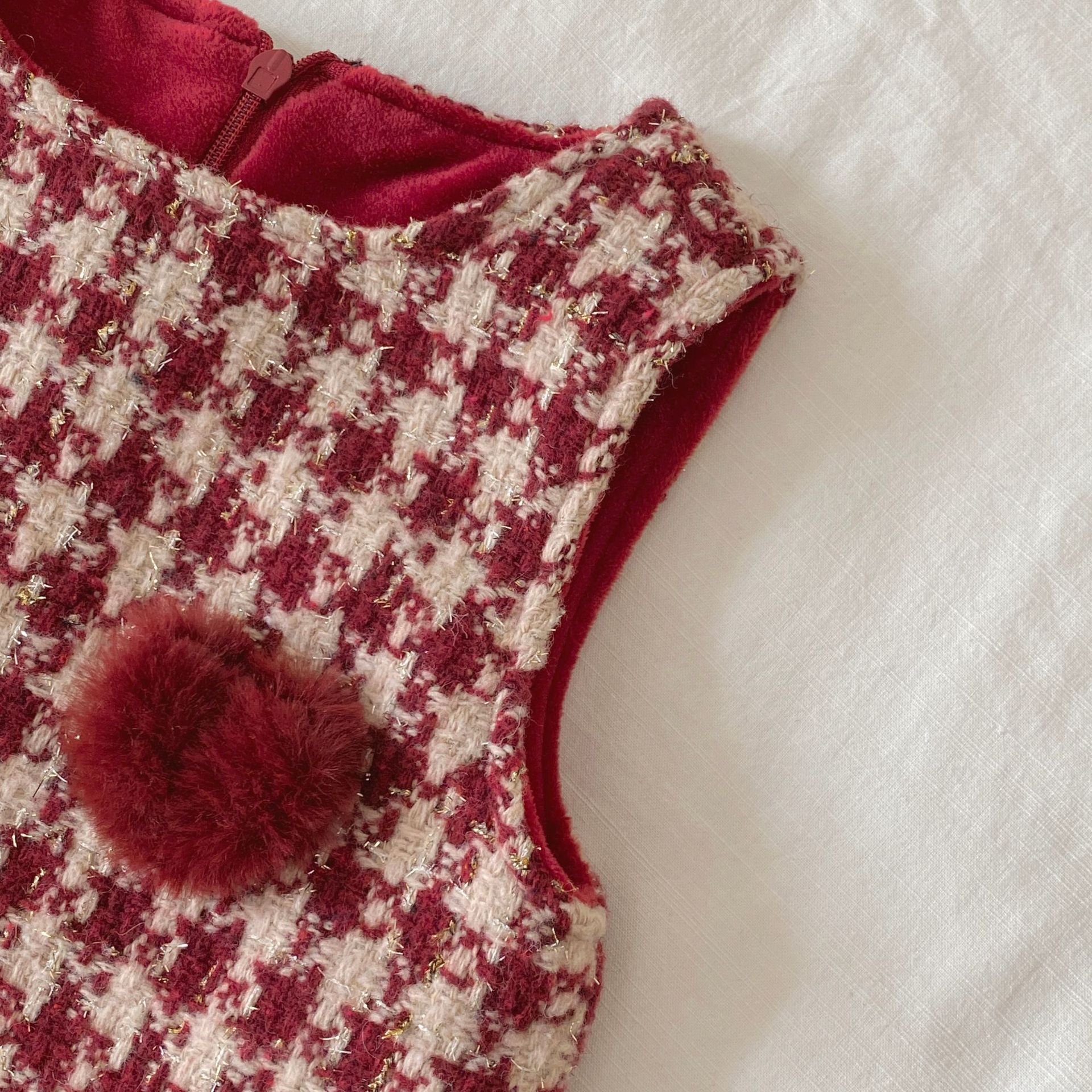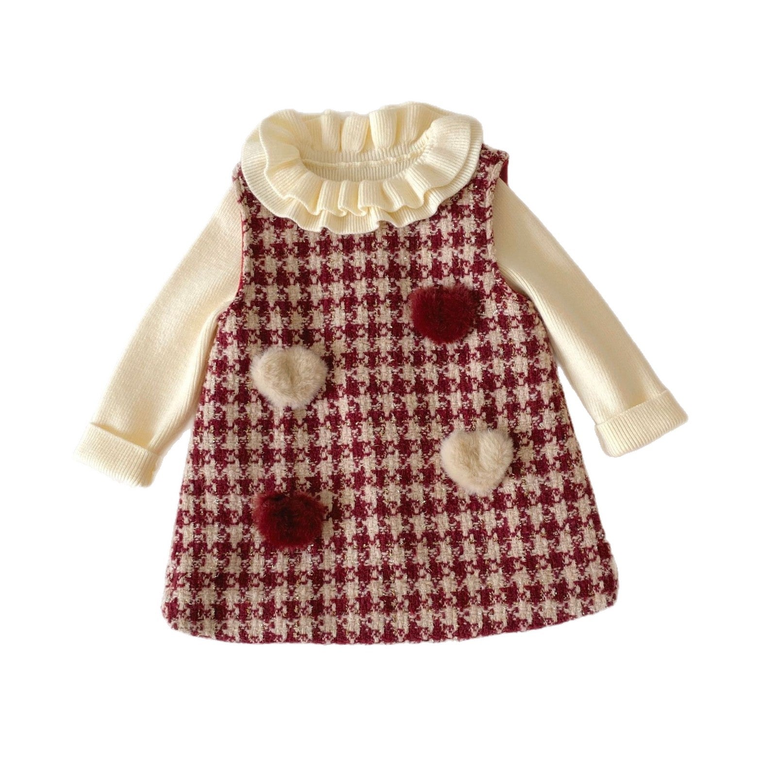 G26010110女童加絨背心裙冬季韓版寶寶加厚格紋愛心兒童裙