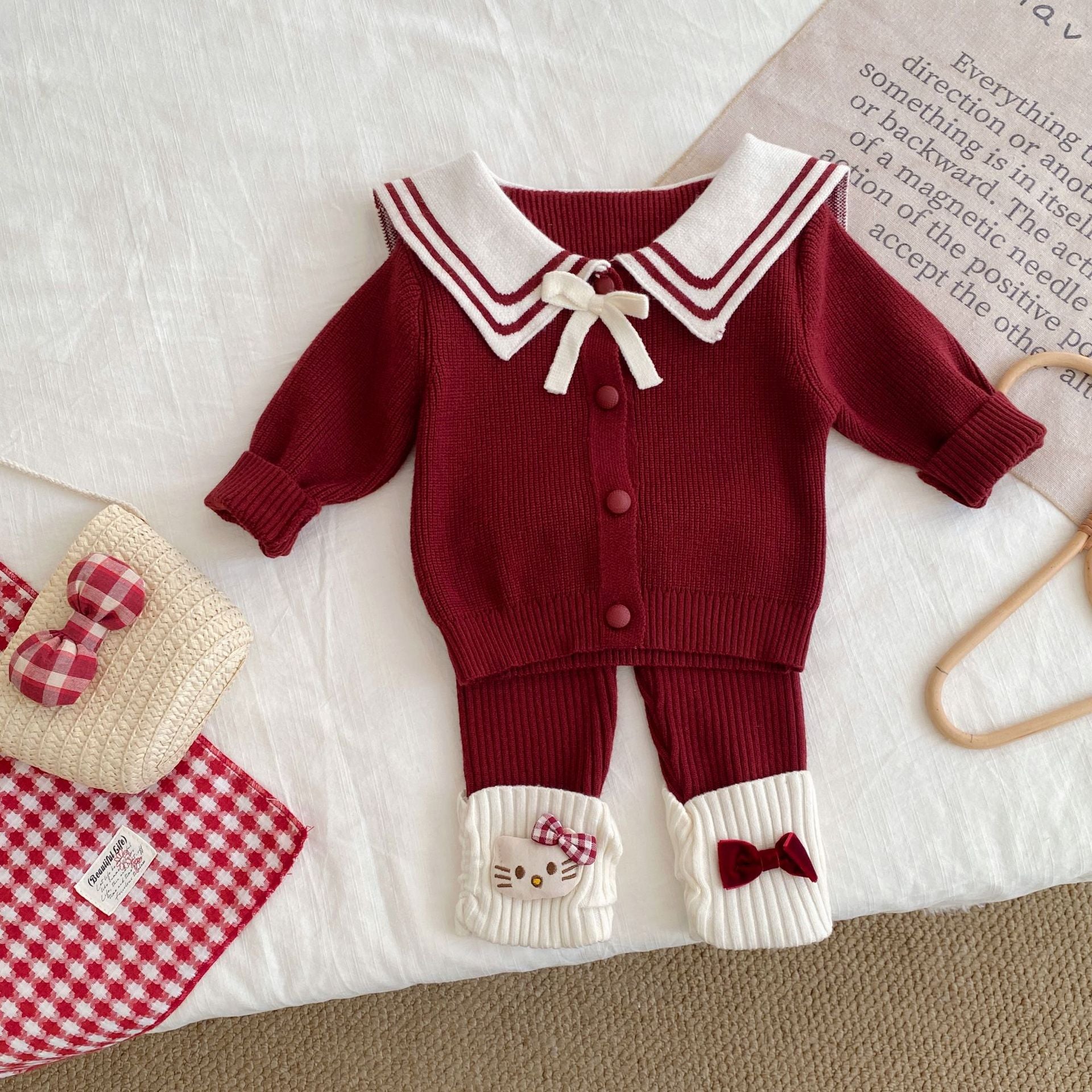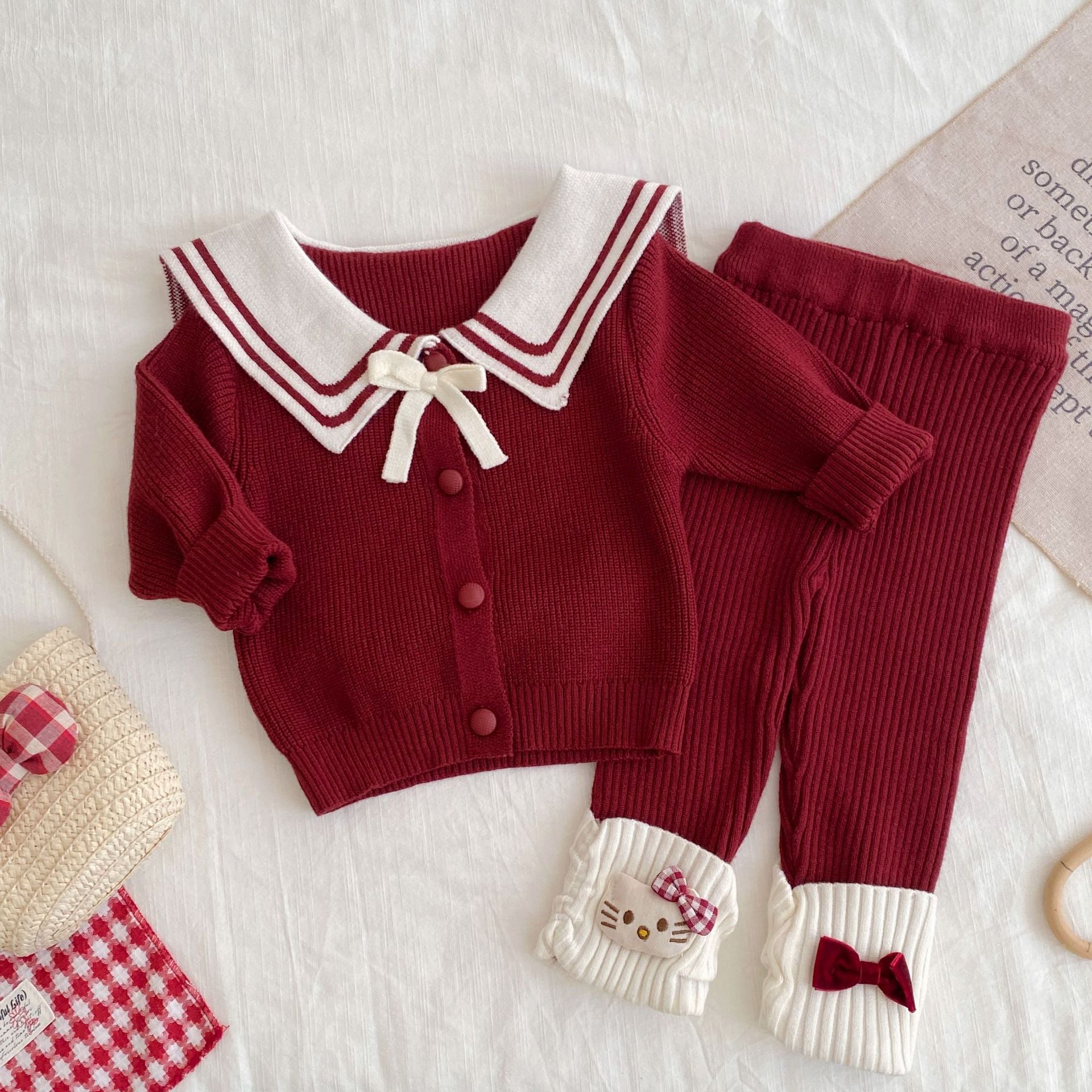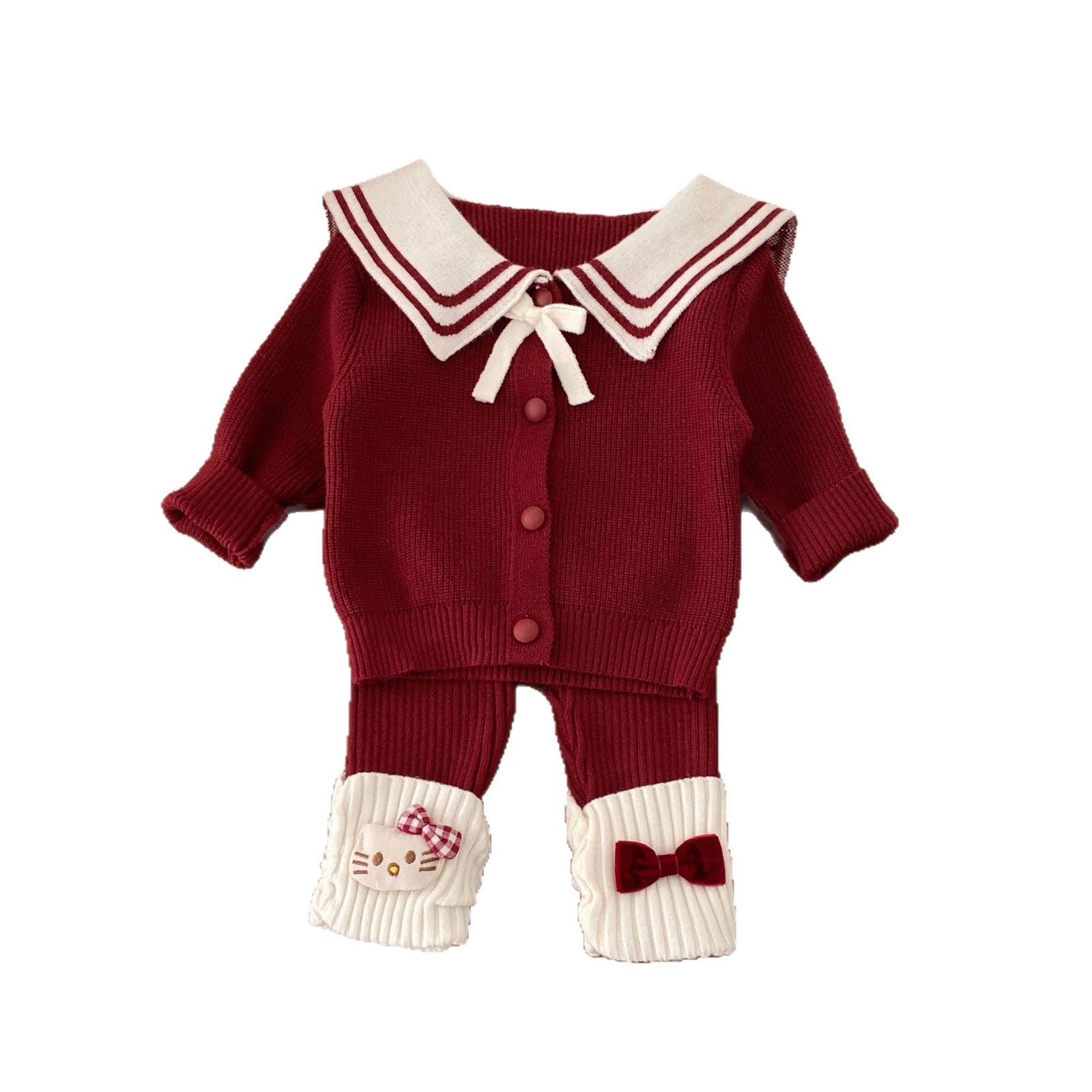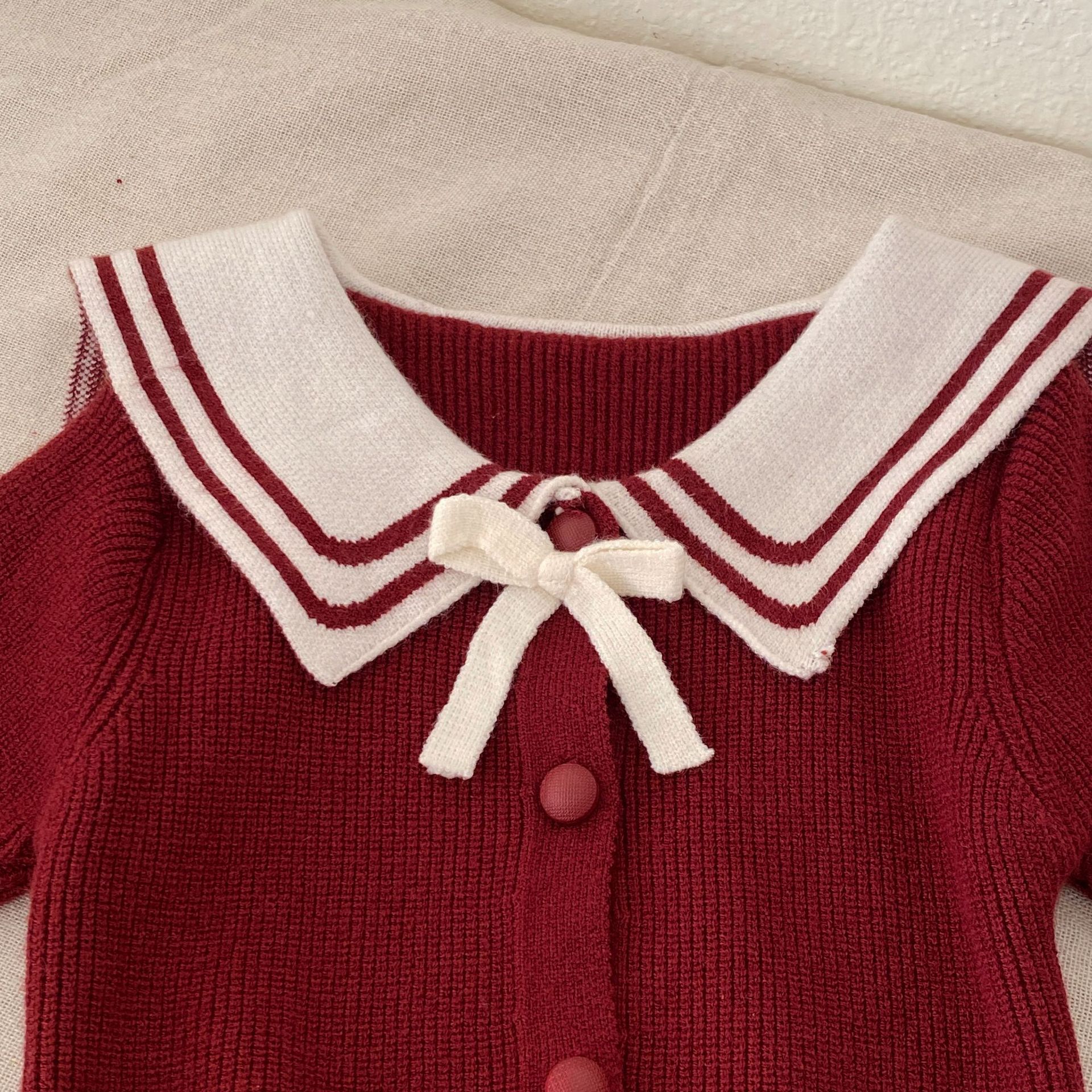 G26010112新年衣秋冬新生兒女童毛衣可愛套裝拜年服海軍領兩件套裝