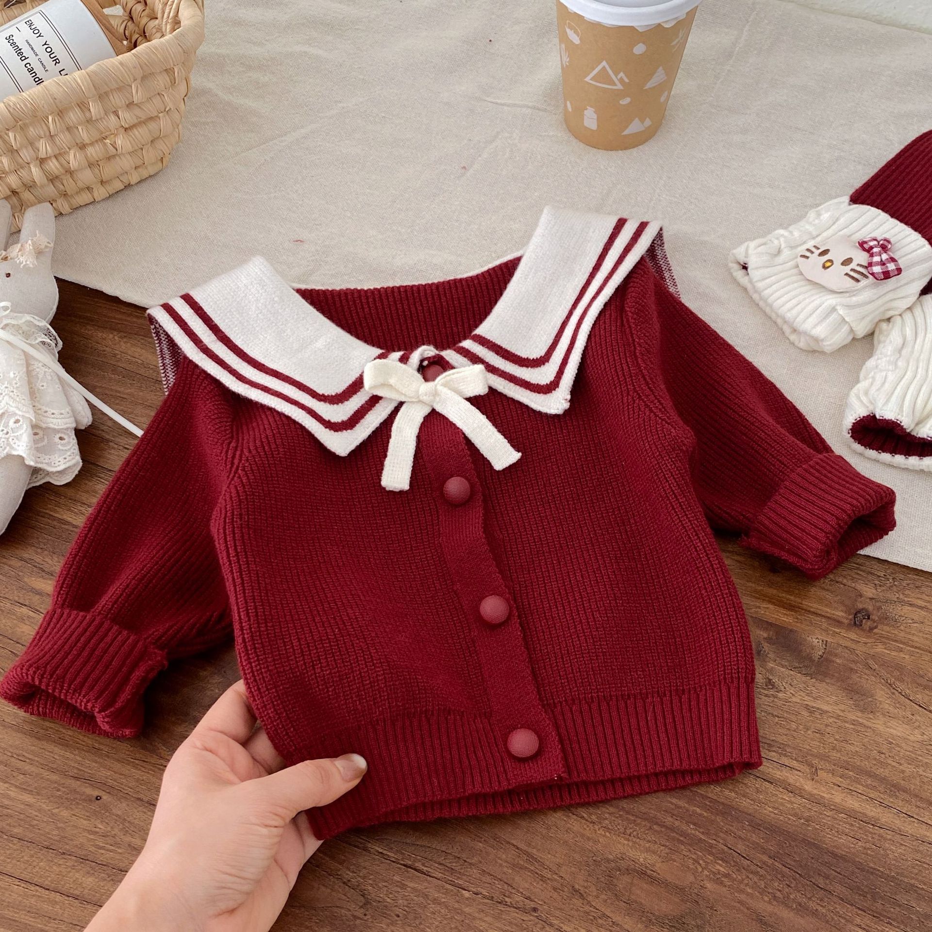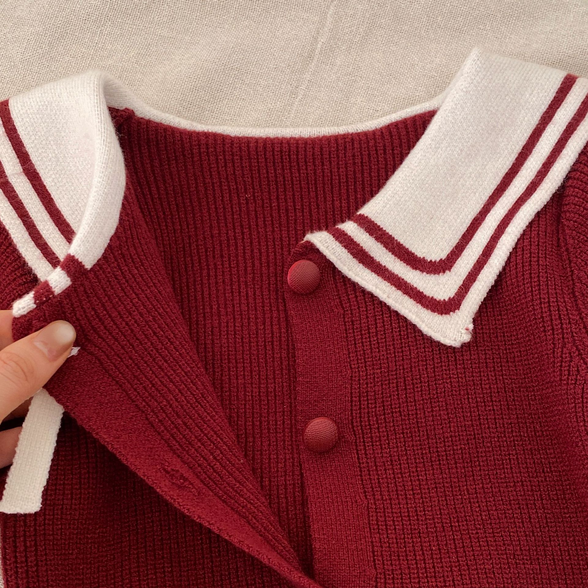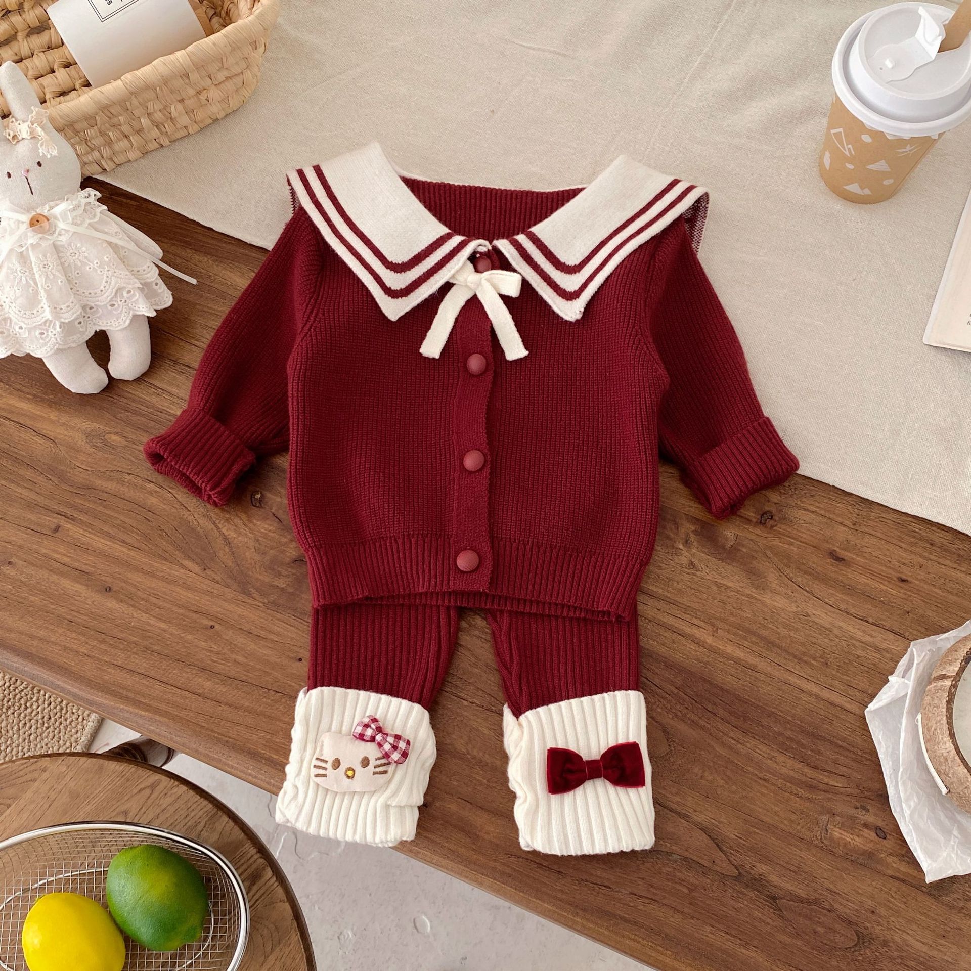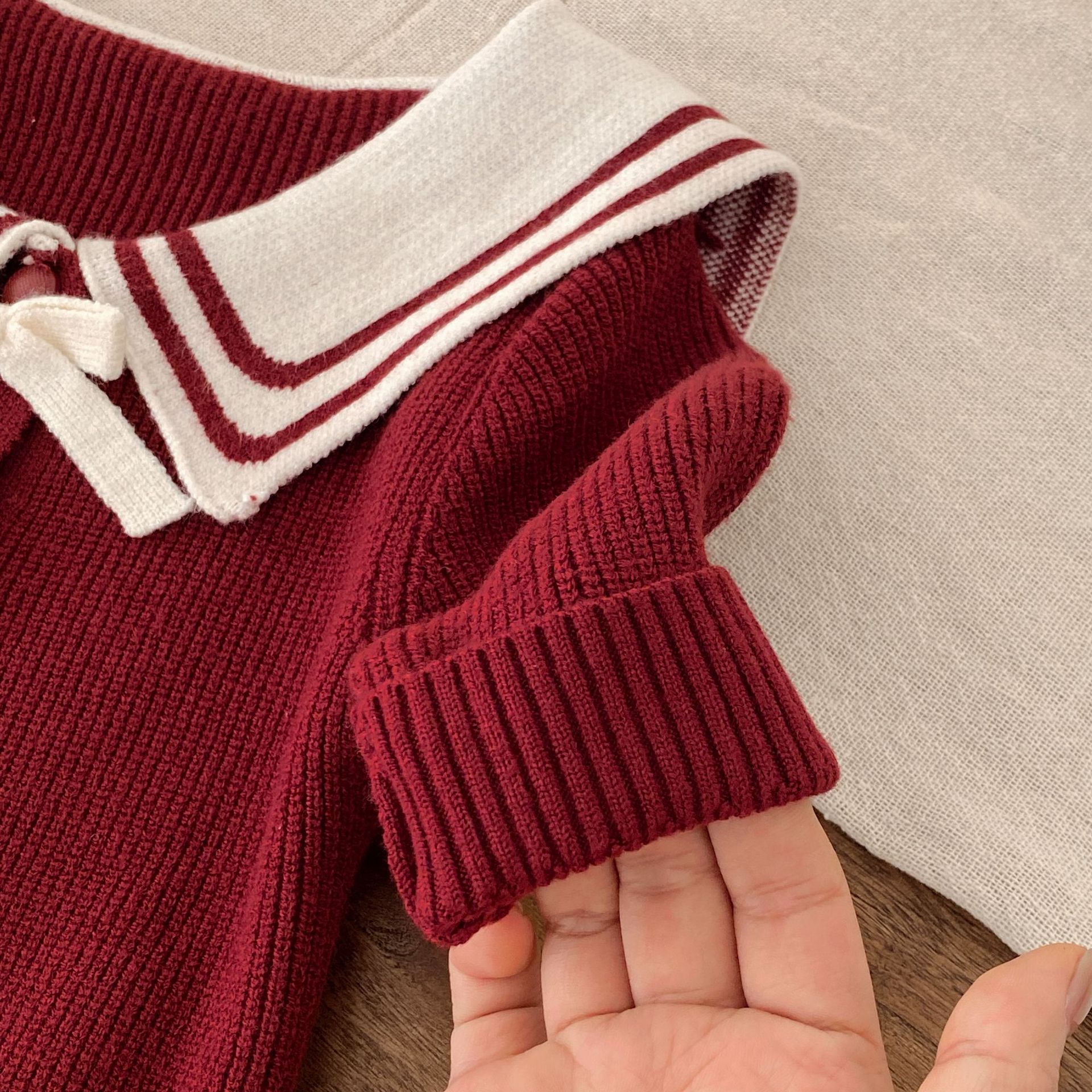 G26010112新年衣秋冬新生兒女童毛衣可愛套裝拜年服海軍領兩件套裝