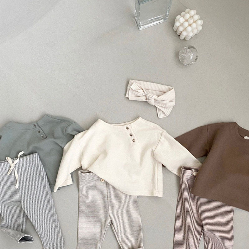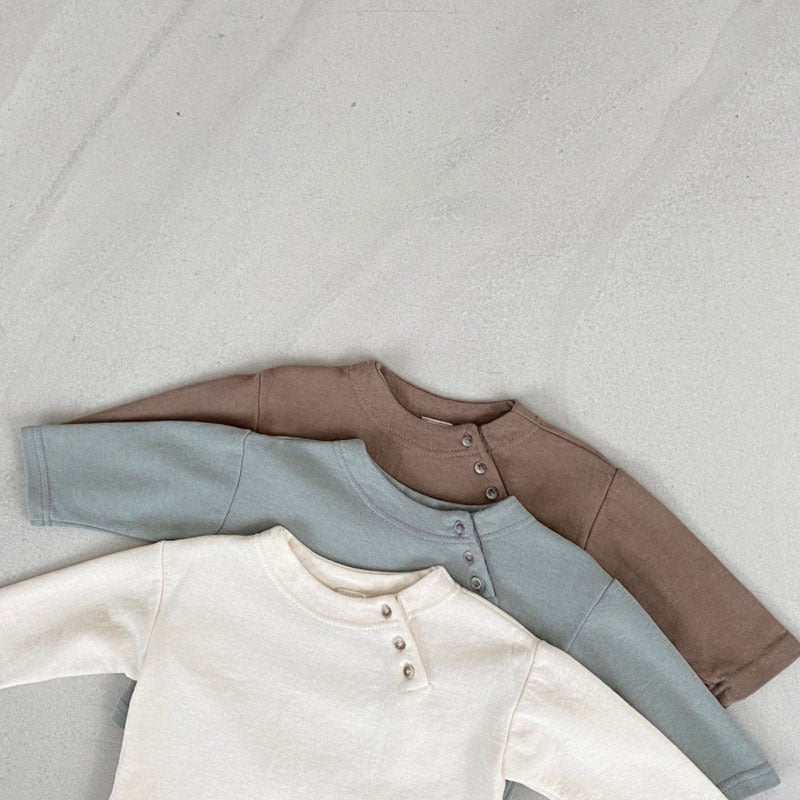 GB24011102韓版ins春秋新生嬰兒簡約棉休閒長袖T卹嬰幼童寶寶春款開扣打底衫