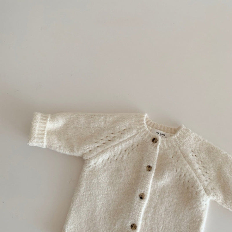 GB24011106韓版ins嬰幼童裝質感休閒毛衣外套寶寶圓領含羊毛針織開衫秋冬裝