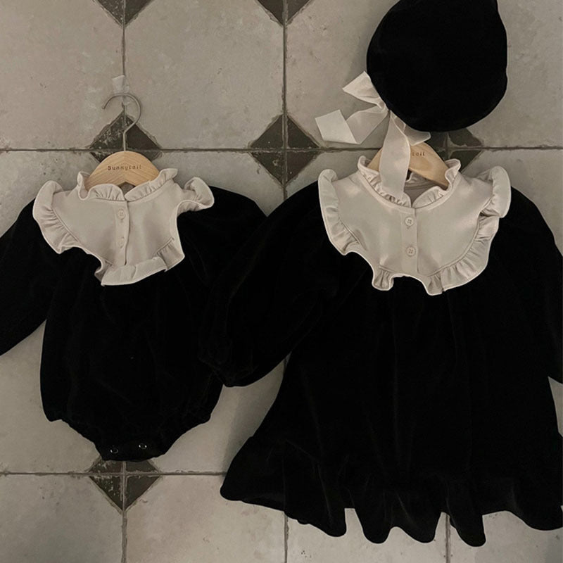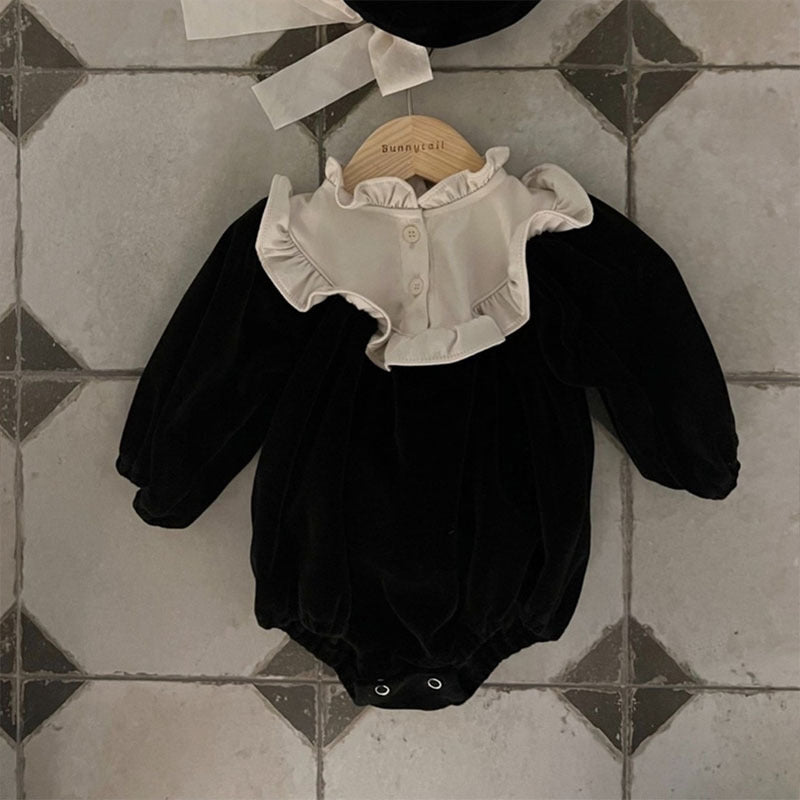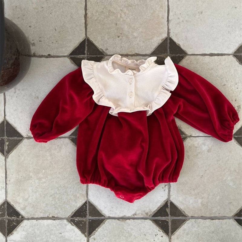 GB24011111韓版童裝冬季女孩女嬰柔軟菲邊洋氣包屁連身爬服寶寶喜慶紅哈衣帶帽