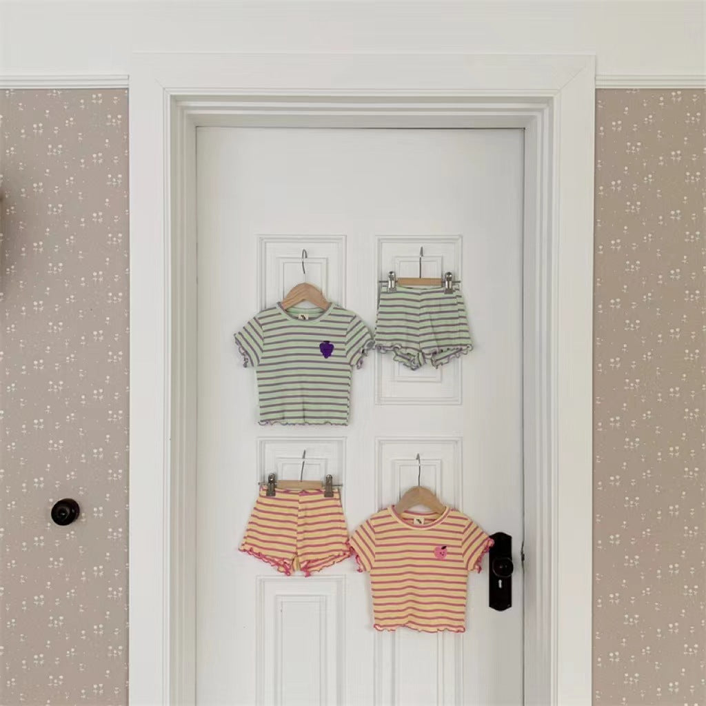 GB24031703韓版嬰幼兒條紋木耳邊套裝葡萄水果圓領外出散步舒適百搭兩件套