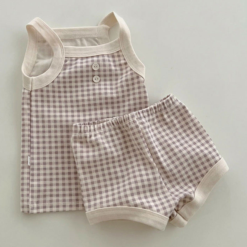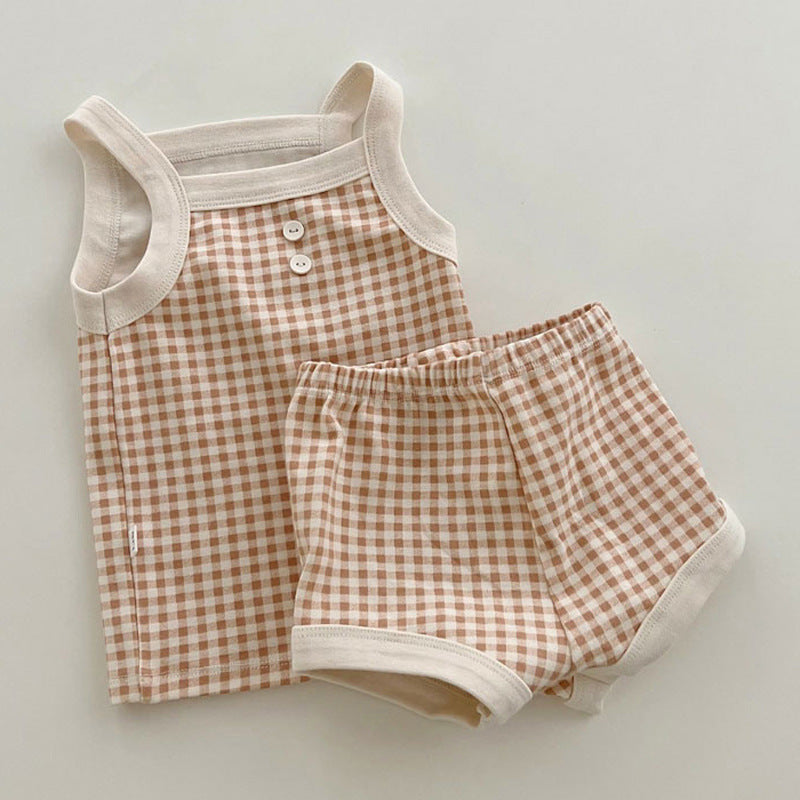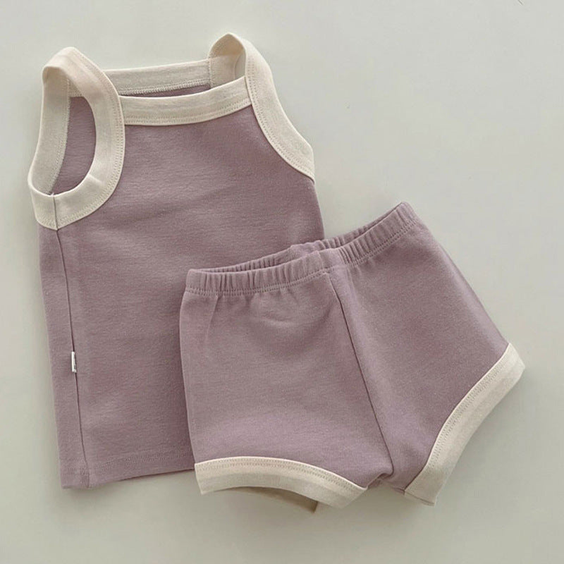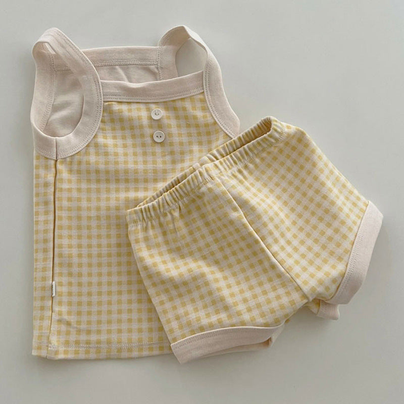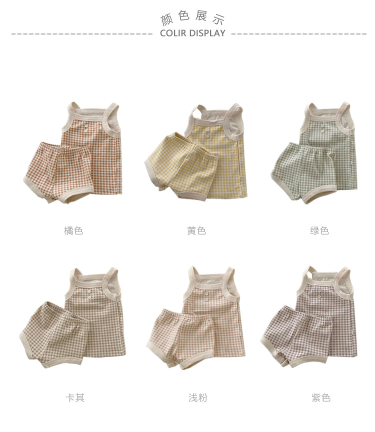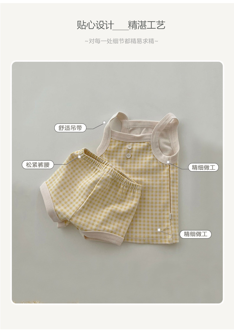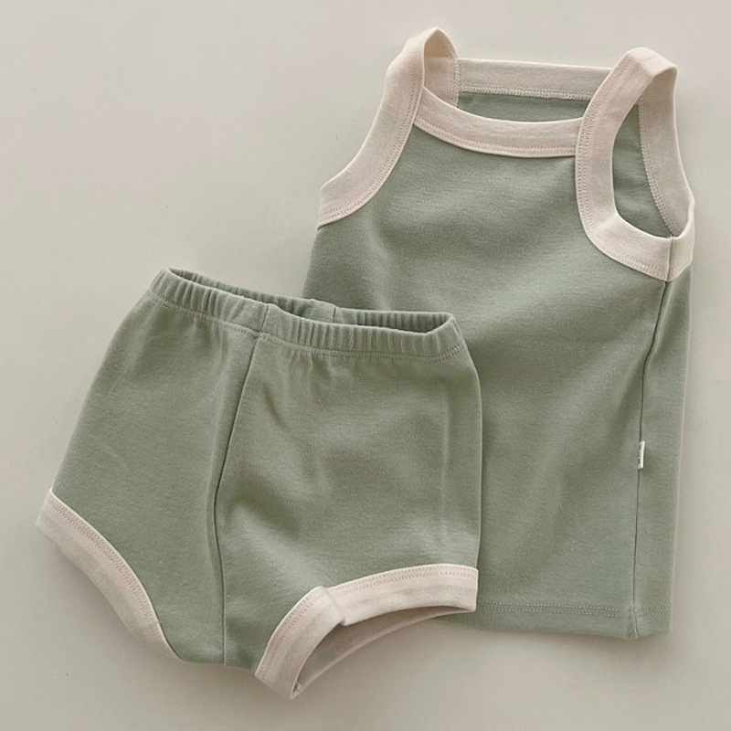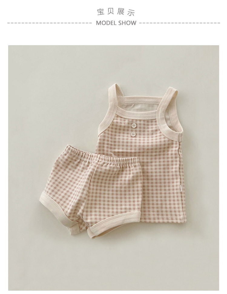 GB24031704韓國版夏季嬰幼兒套裝嬰兒棉吊帶清涼背心上衣包褲兒童舒適家居服
