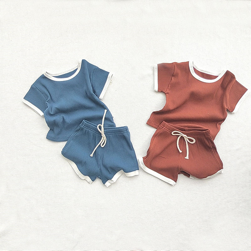 GB24031706韓版夏款嬰幼兒條紋短袖短褲套裝寶寶舒適可愛潮搭兩件式童裝