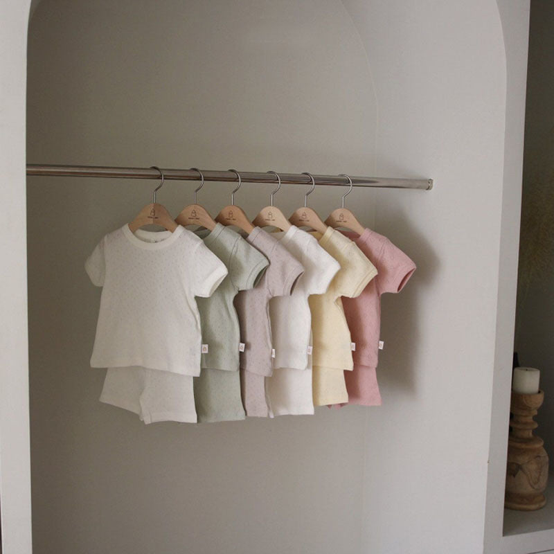 GB24031712韓版ins嬰幼兒裝薄棉柔軟短袖家居服套裝夏日寶寶鏤空清涼兩件套