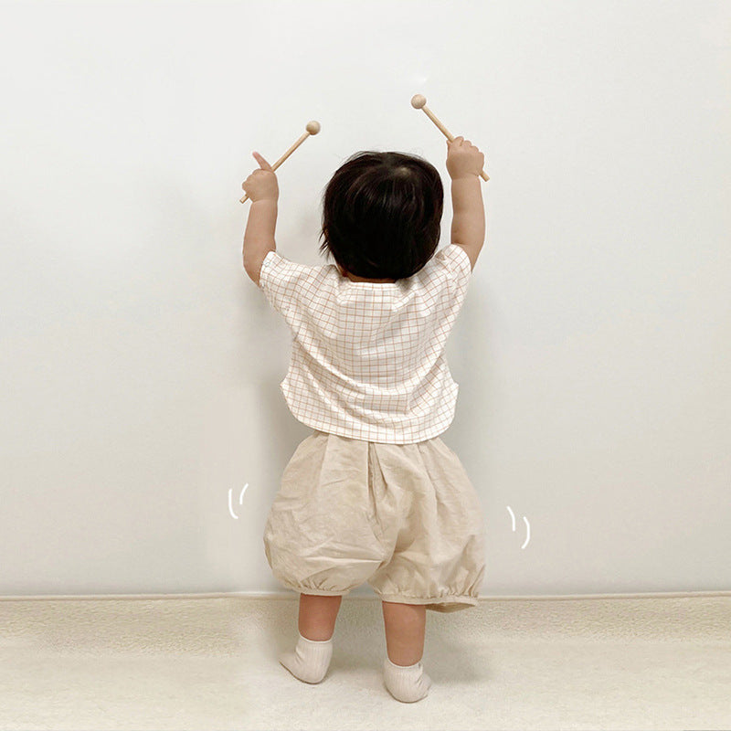 GB24031714夏季薄款男女寶寶短袖T恤上衣嬰幼兒寬鬆褲子韓版ins童裝套裝