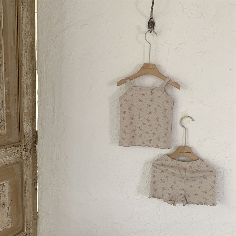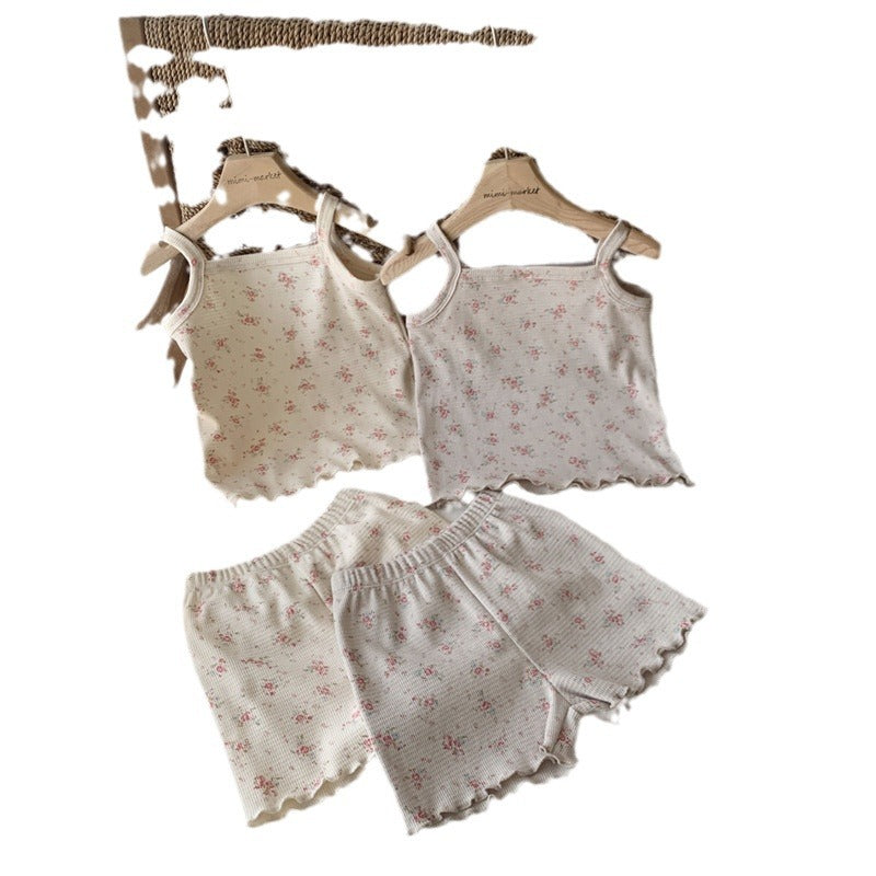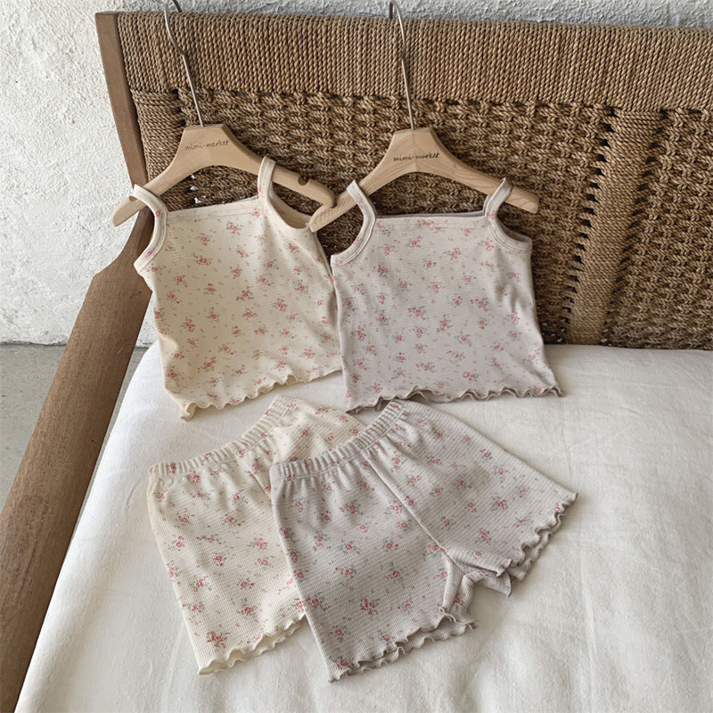 GB25032401韓版童裝ins夏款嬰幼童薄棉碎花吊帶短褲兩件寶寶清爽套裝童裝
