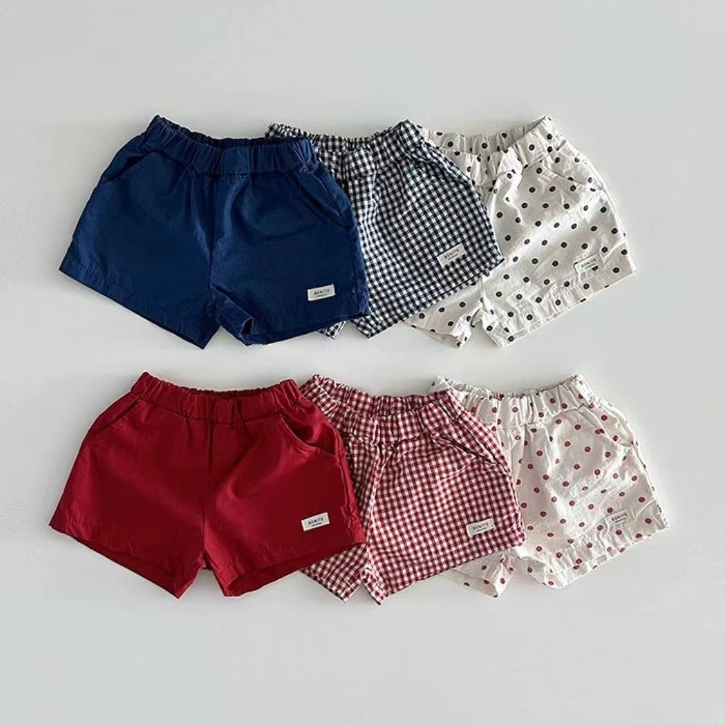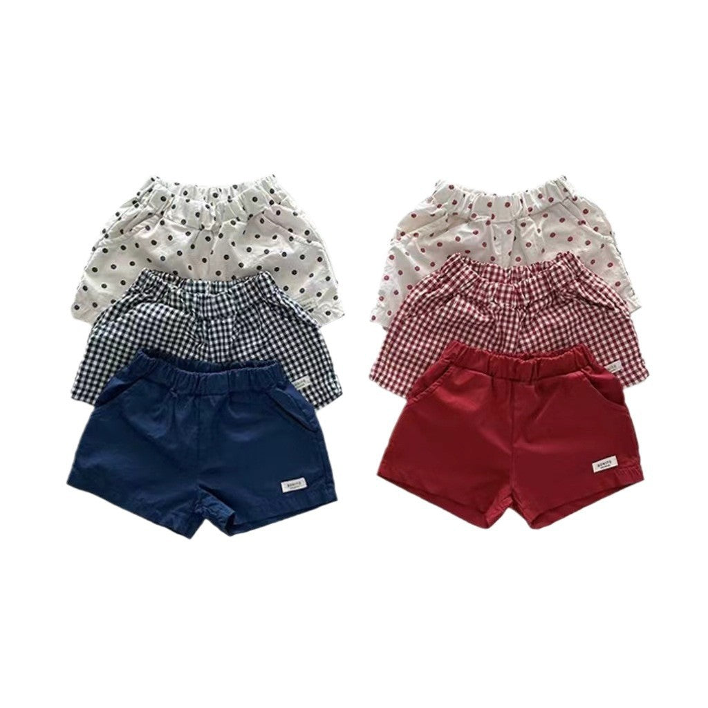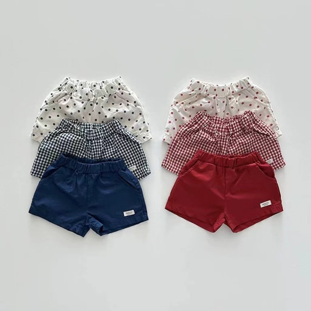GB25032410韓版ins6色格紋純色波點小短褲男女寶寶夏款搭配彩色褲透氣棉