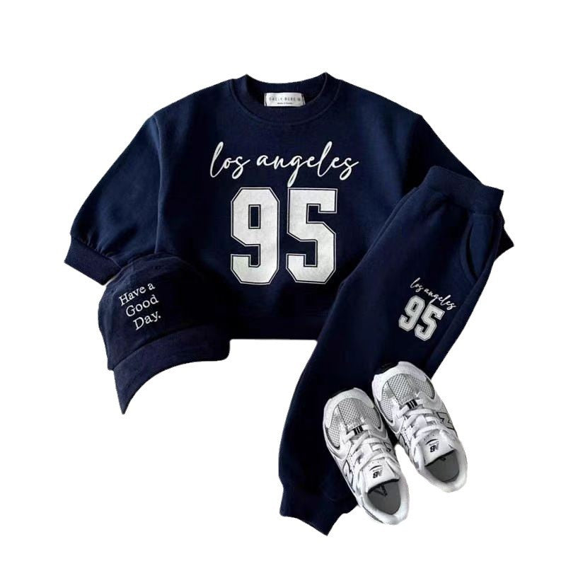 GB25111303ins韓式百搭春秋季新男童潮流休閒運動數位休閒衛衣套裝