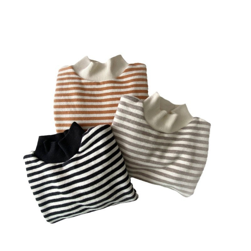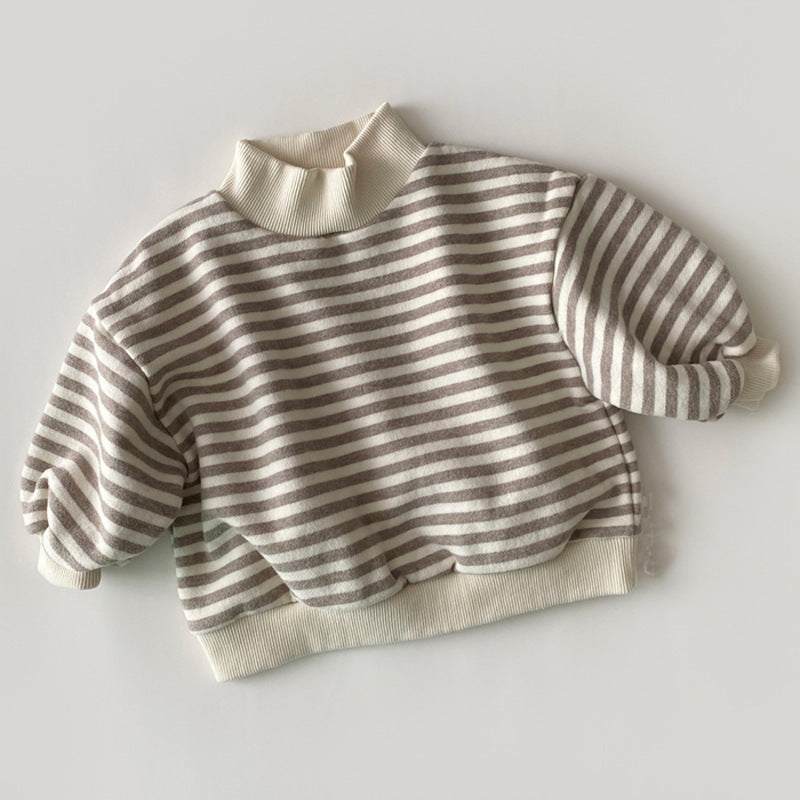 GB25111306韓版ins嬰兒幼童裝條紋加絨衛衣中性寬鬆版型高領絨衫寶寶上衣