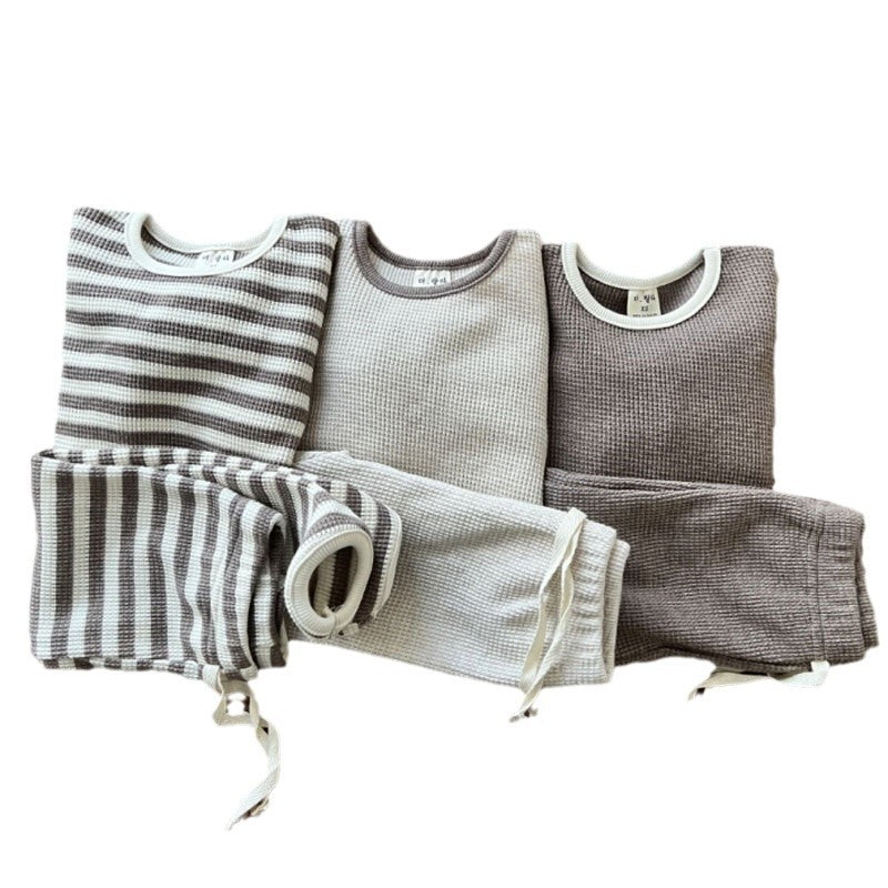 GB25111313韓版ins嬰幼兒休閒套裝兒童寶寶春秋款寬鬆華夫格衛衣長褲兩件套