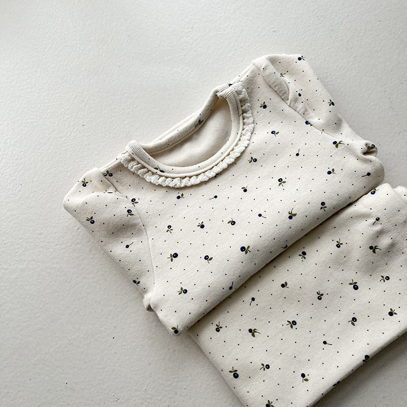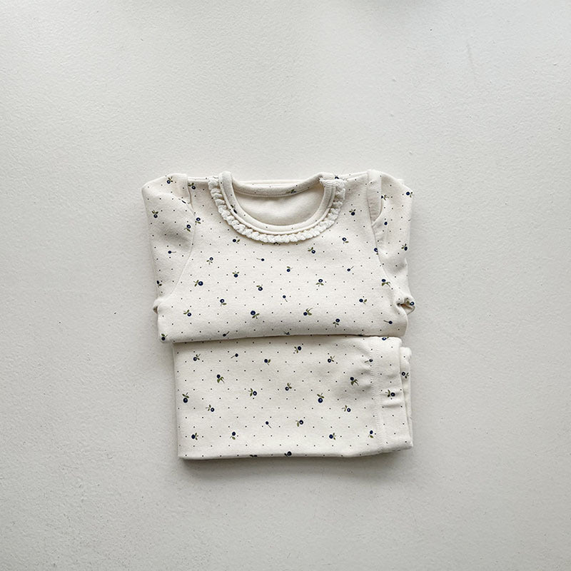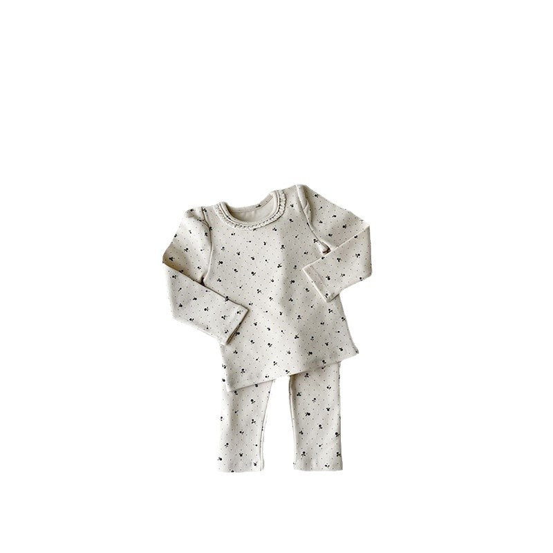 GB25111314韓版嬰幼童棉印花彈性居家服套裝新生兒潮搭可愛蕾絲套裝舒適潮