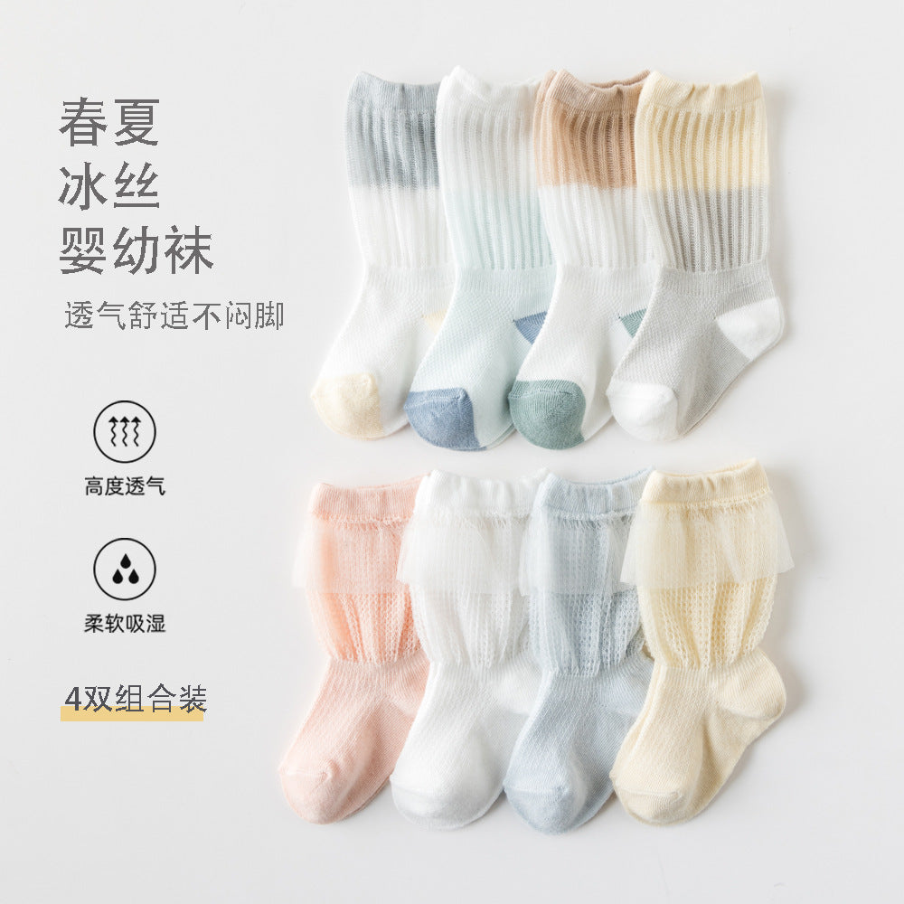 GD24051906A類春夏新款棉質長筒花邊冰網眼袋寶寶嬰幼兒防蚊襪現貨(上面是4雙的價格)(9-12天到貨)