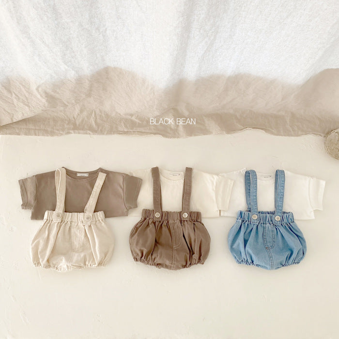 GF25061705韓版嬰幼兒可愛洋氣套裝ins夏季純棉包屁背帶短褲短袖T恤兩件套潮
