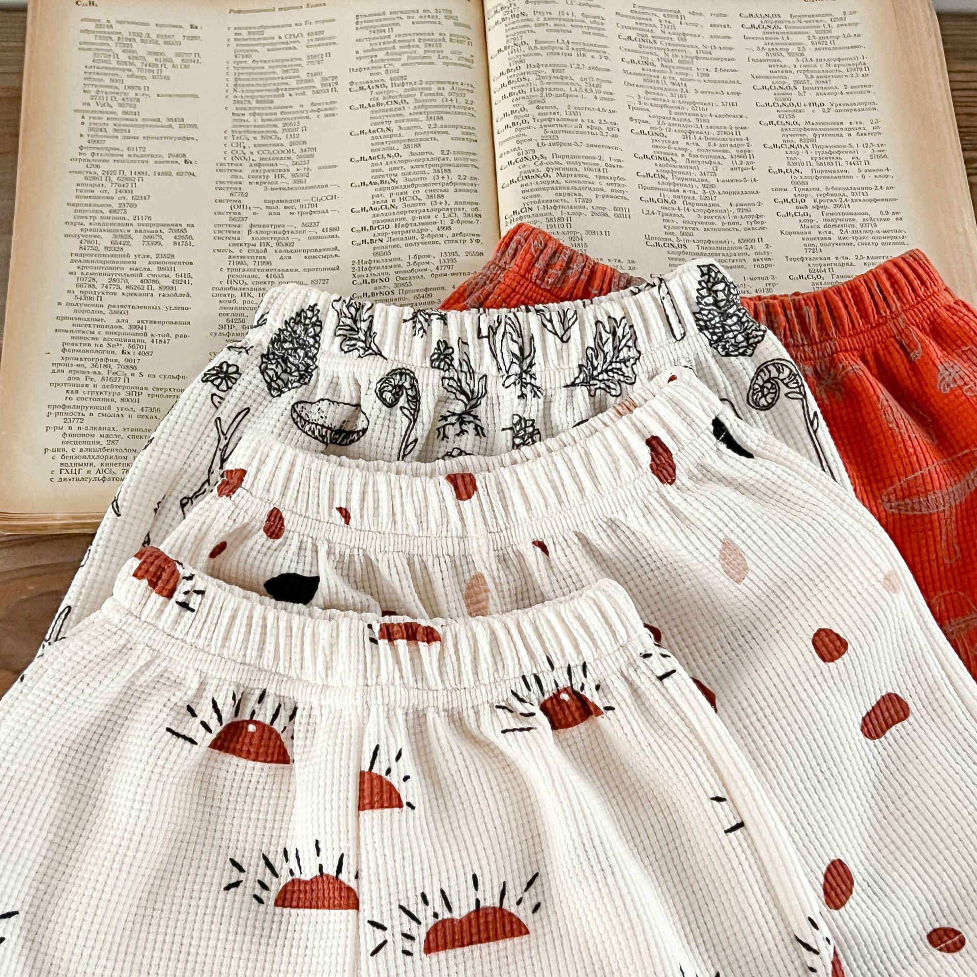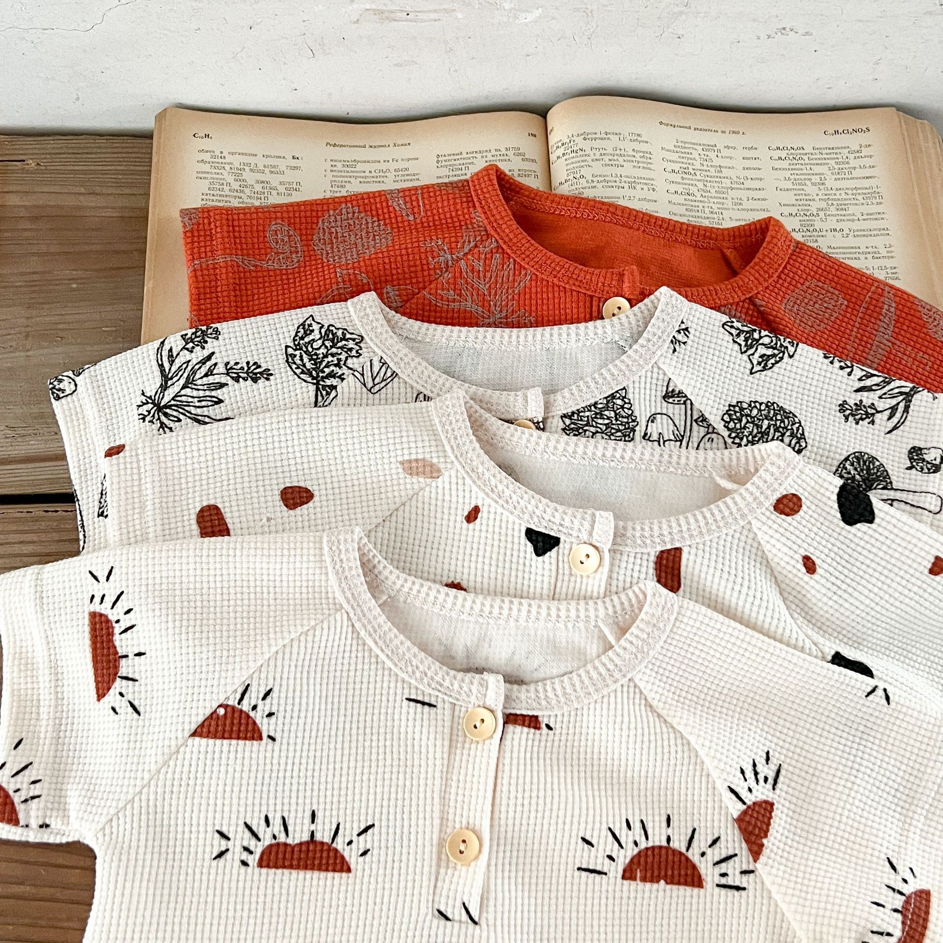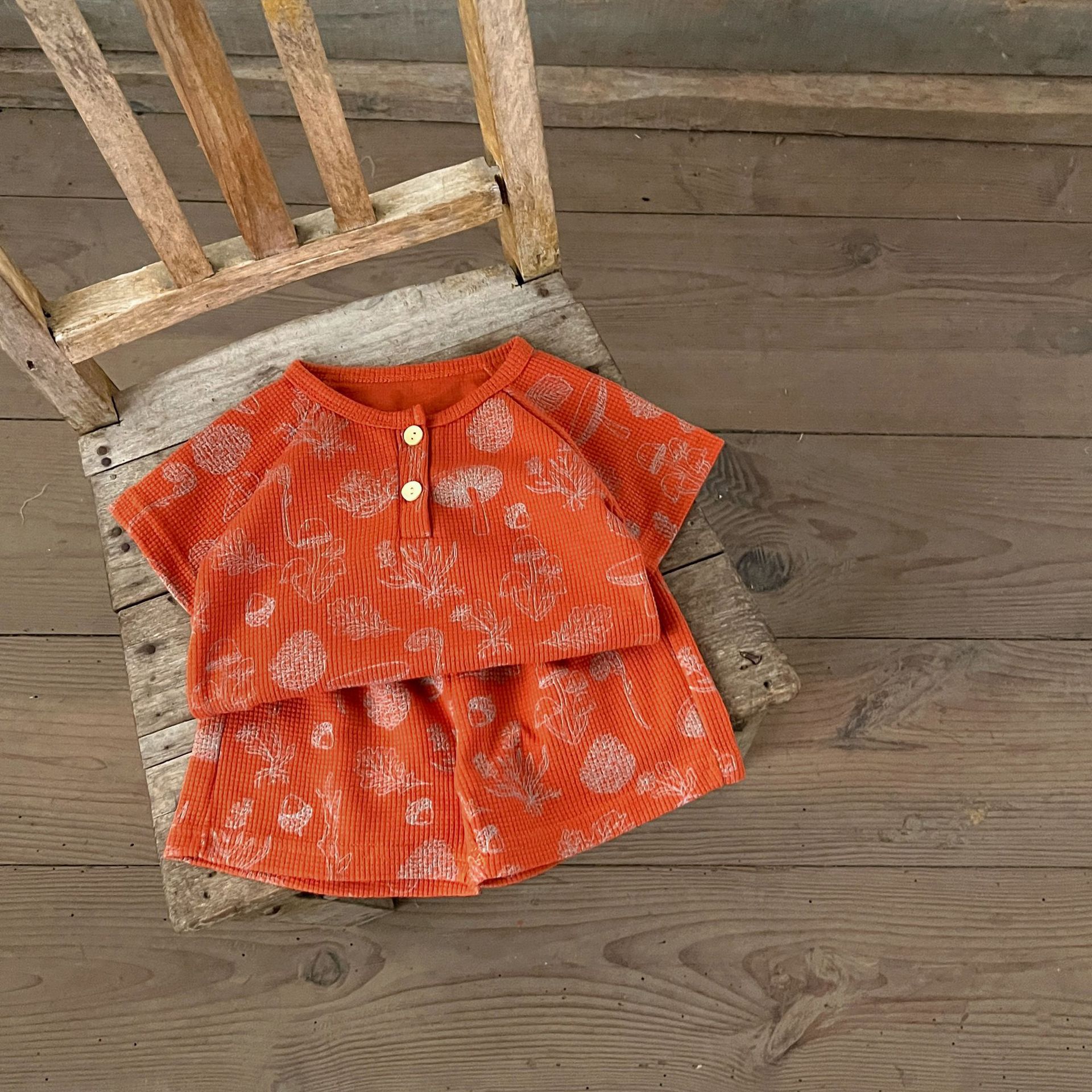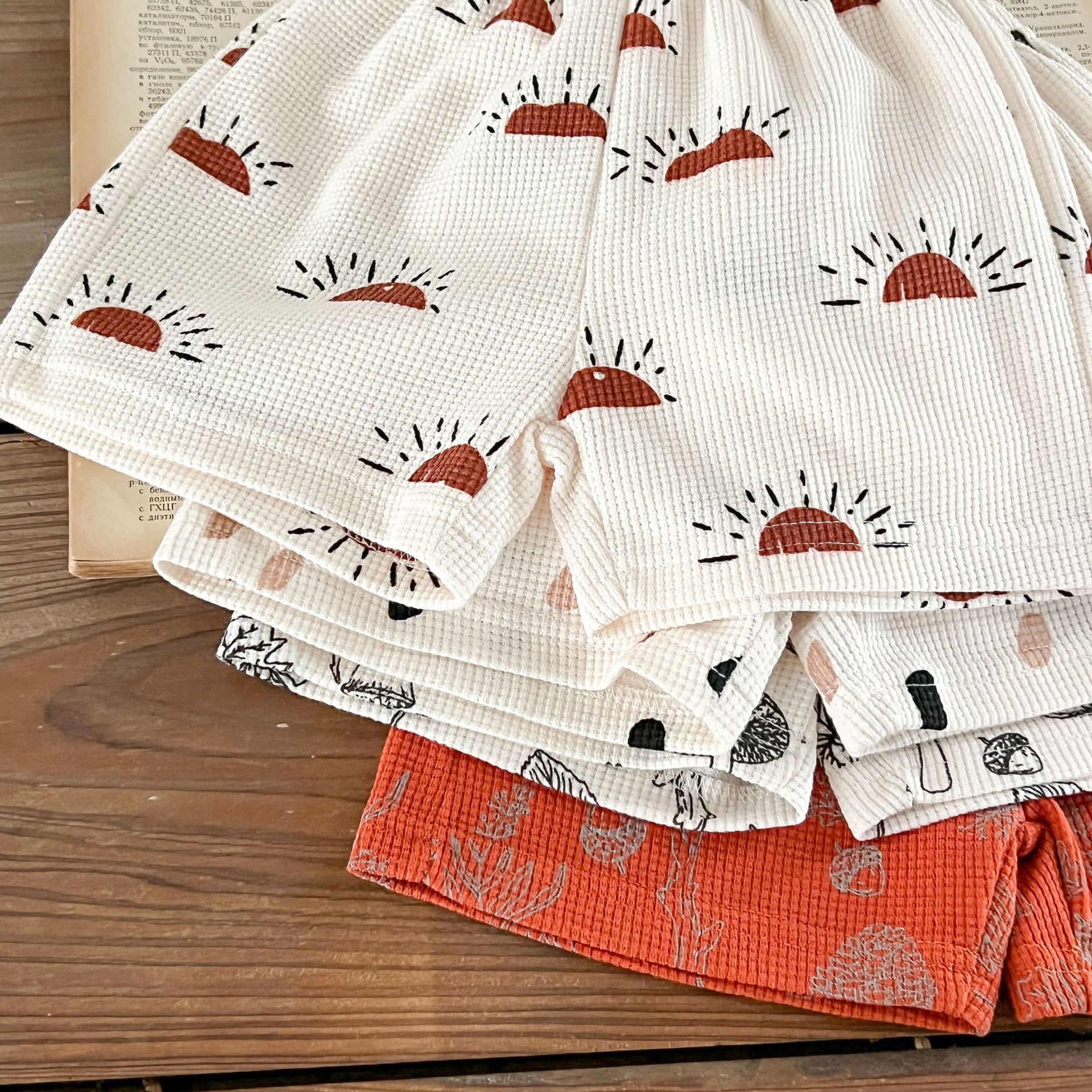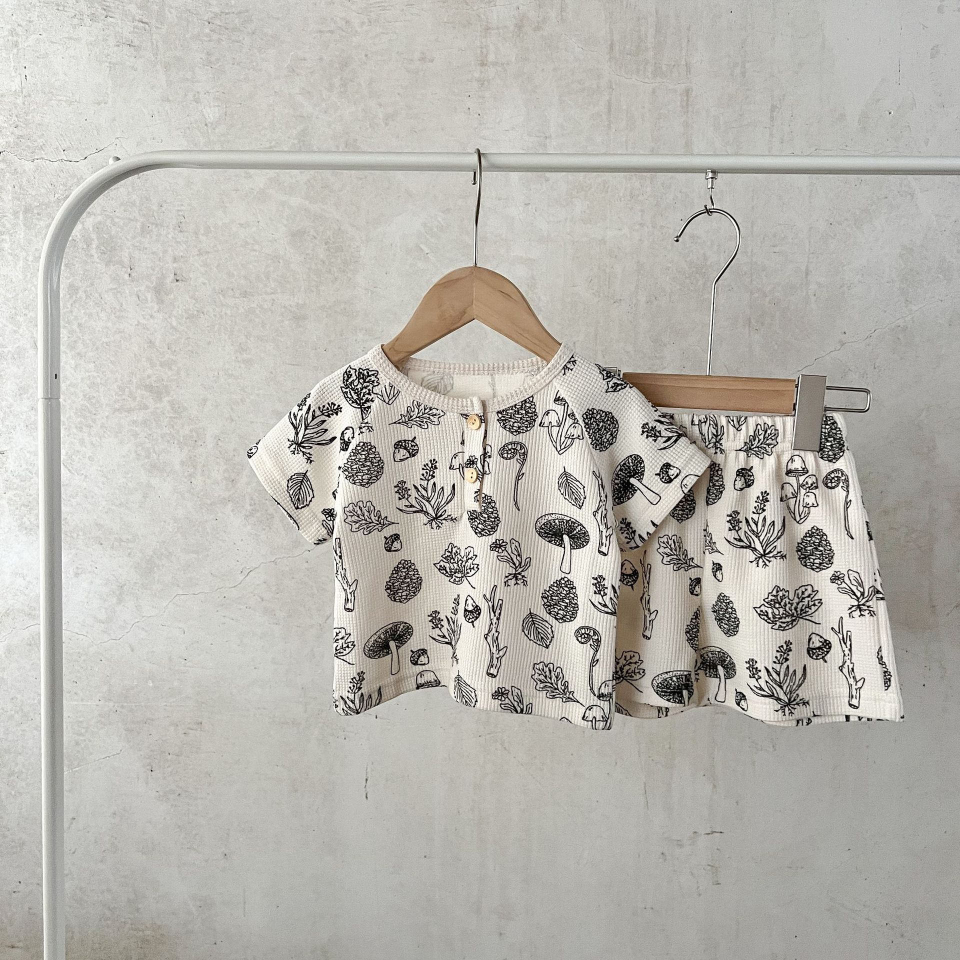 GF25061708丹麥風兒童純棉百搭套裝嬰兒幼童華夫格印花休閒短袖開襟褲兩件套