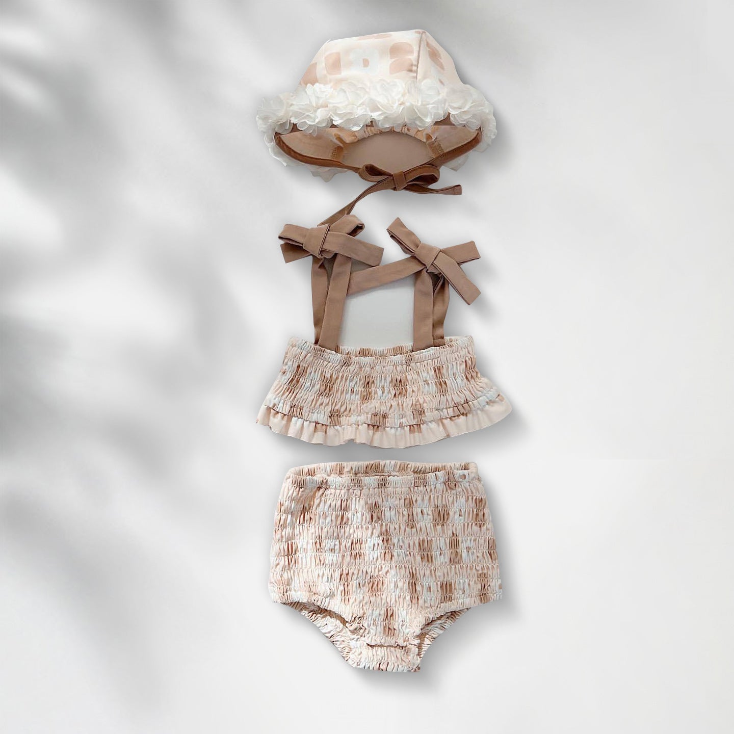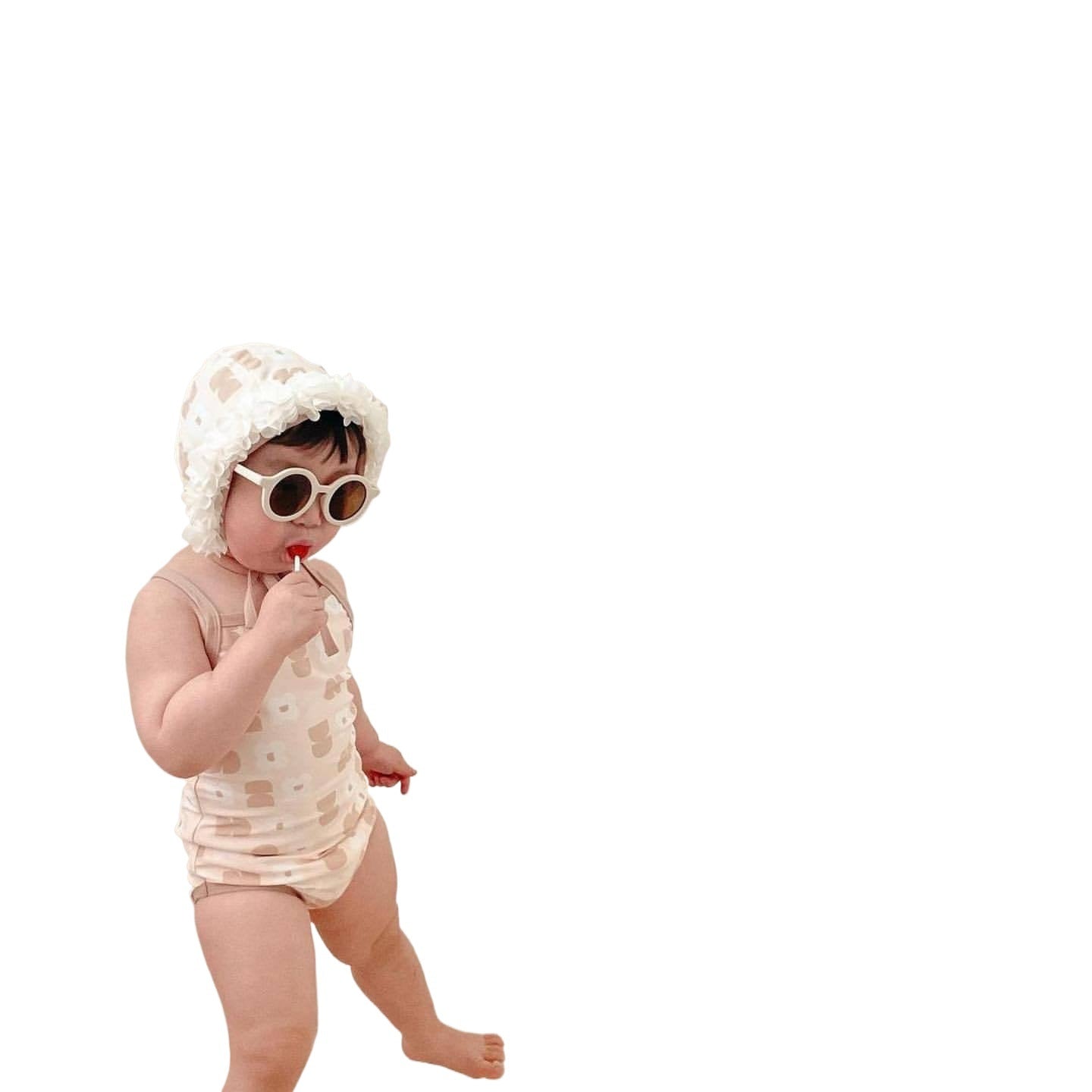 GF25061709ns韓版女童寶寶花朵帶帽連身泳衣新生兒比基尼分身泳衣三件組潮