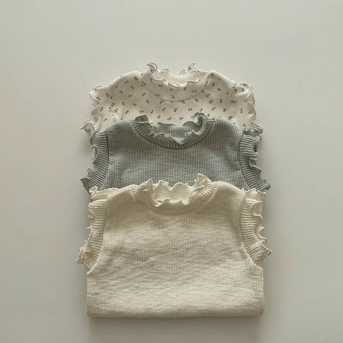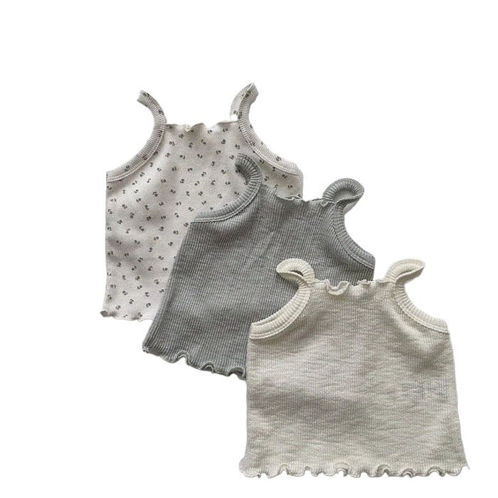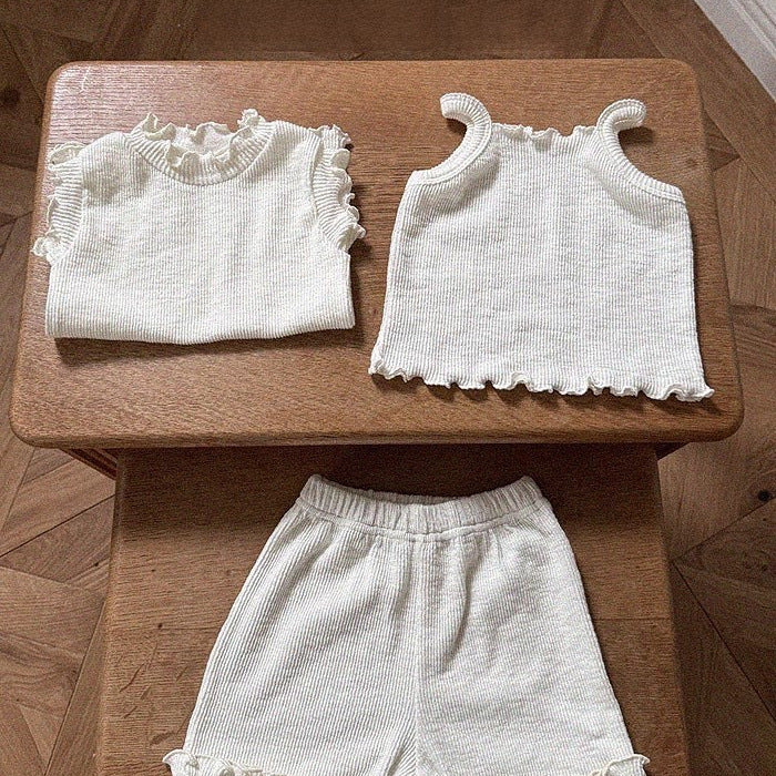 GF25061710ins韓版嬰童寶寶夏季純棉坑條木耳邊背心上衣短褲套裝高彈外出服