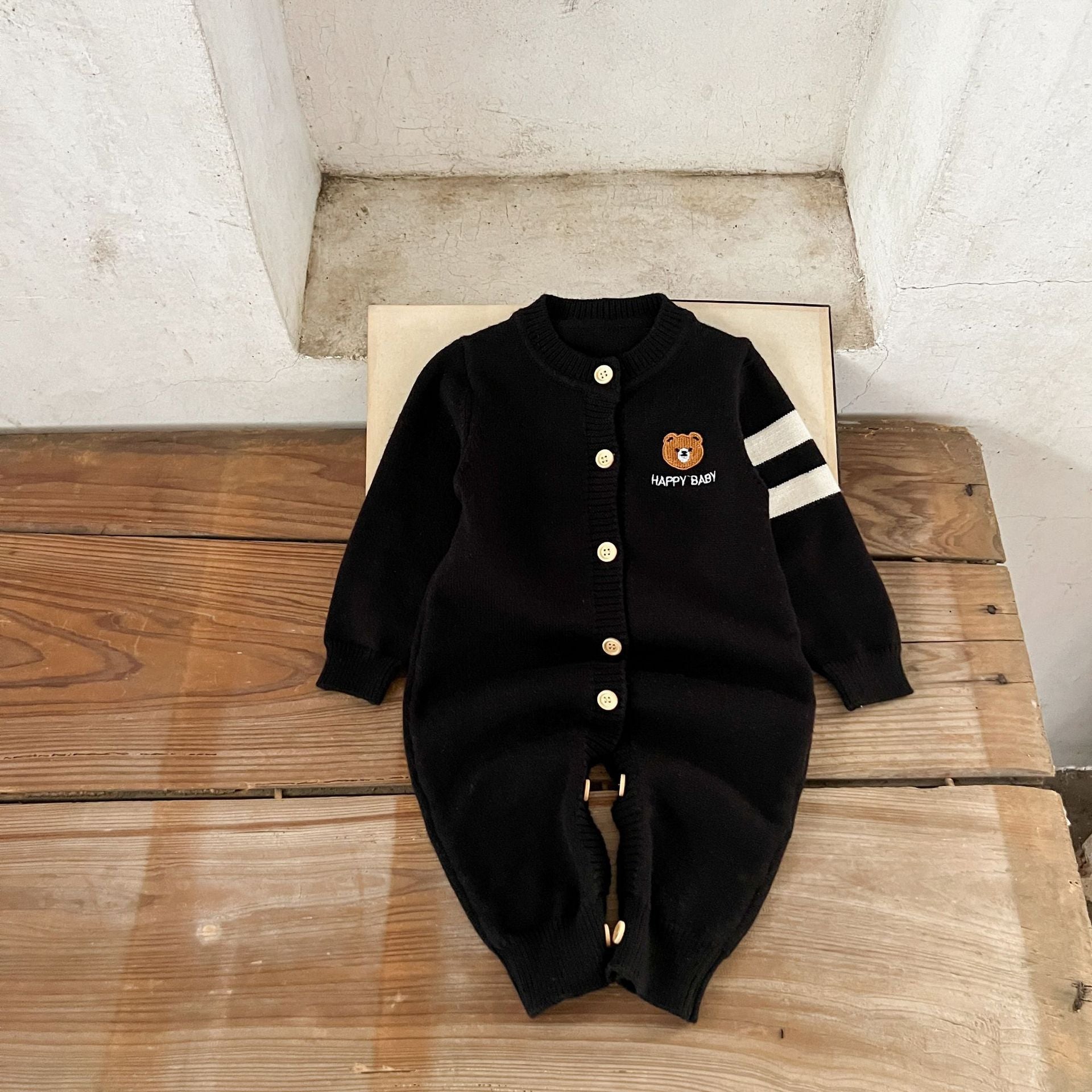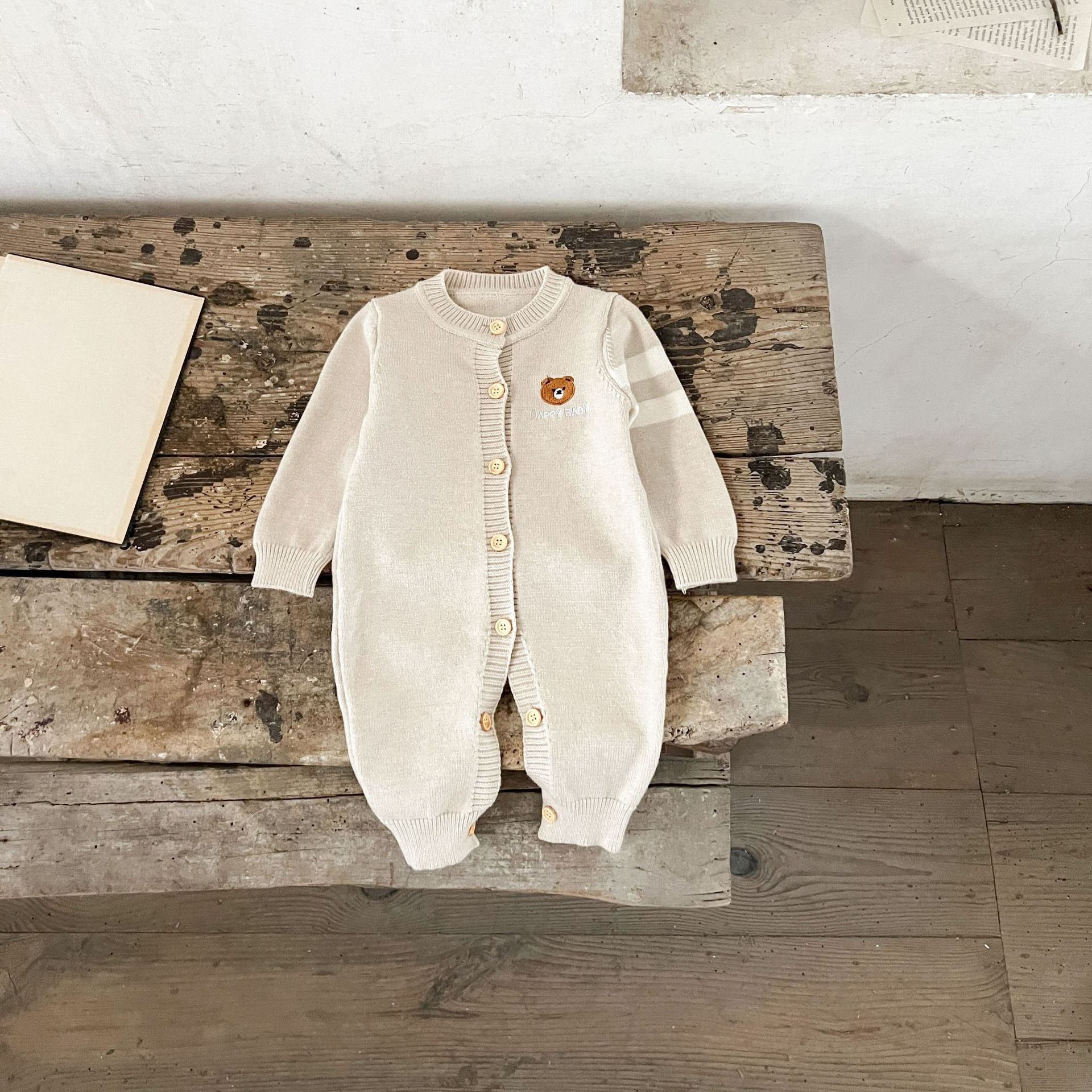 GF25081509 ins韓版男女寶寶純棉毛織卡通刺繡長爬嬰幼童春秋季毛衣連身衣