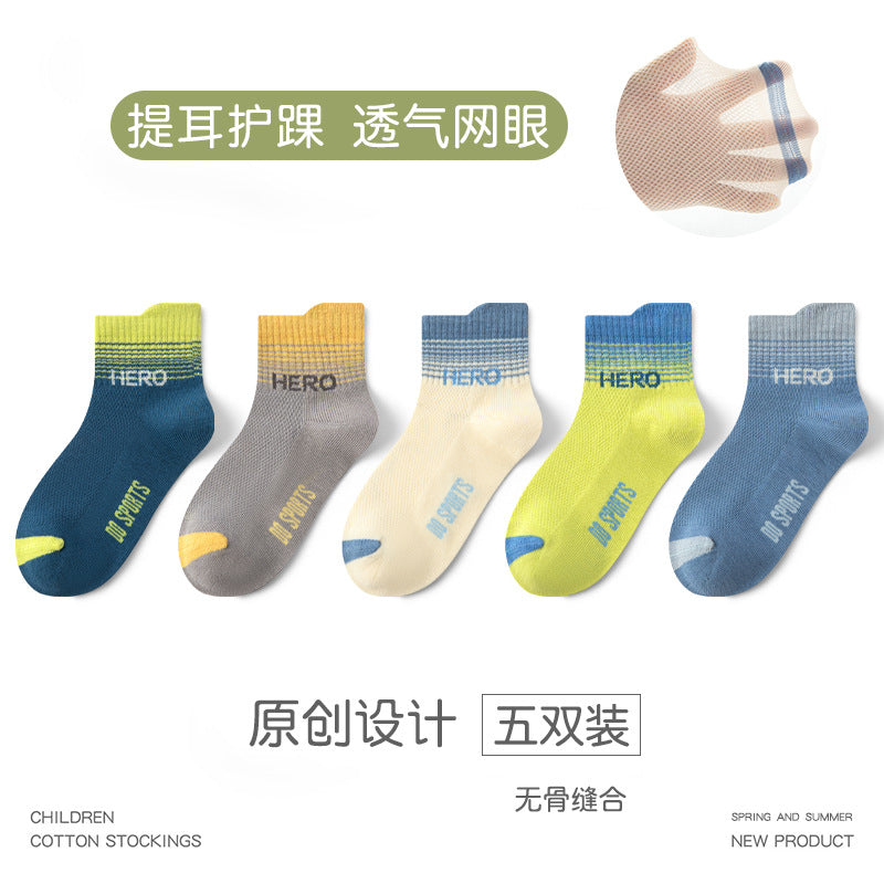 GI25073104男童襪子春夏季男童棉襪短兒童提耳運動襪網眼純色潮襪