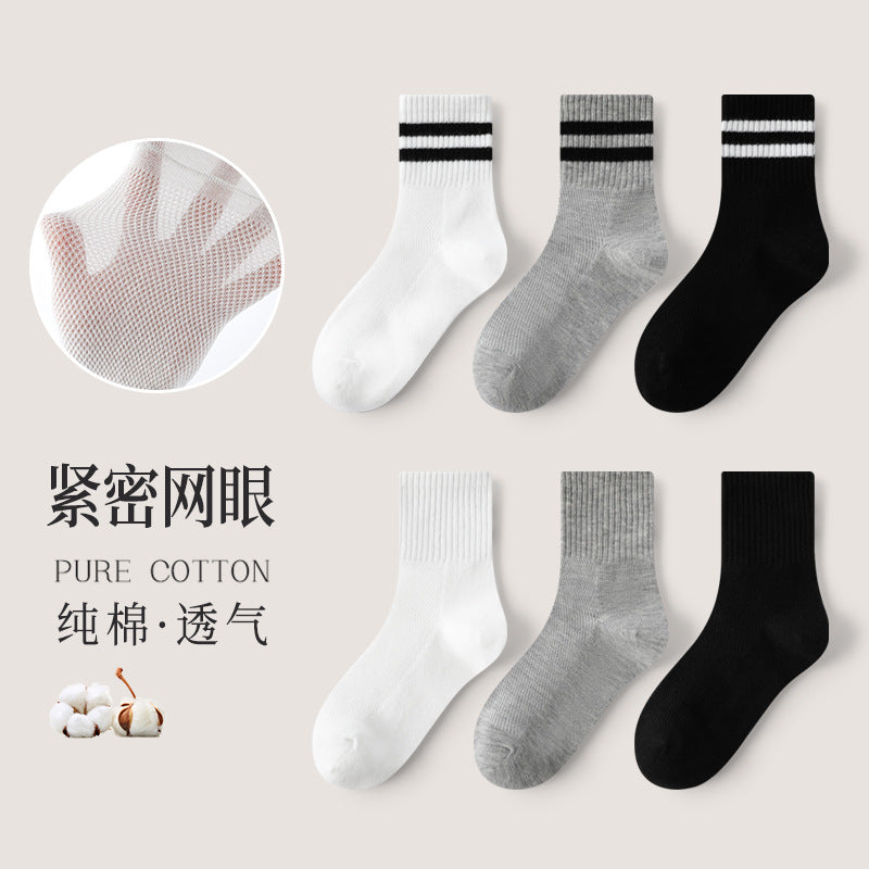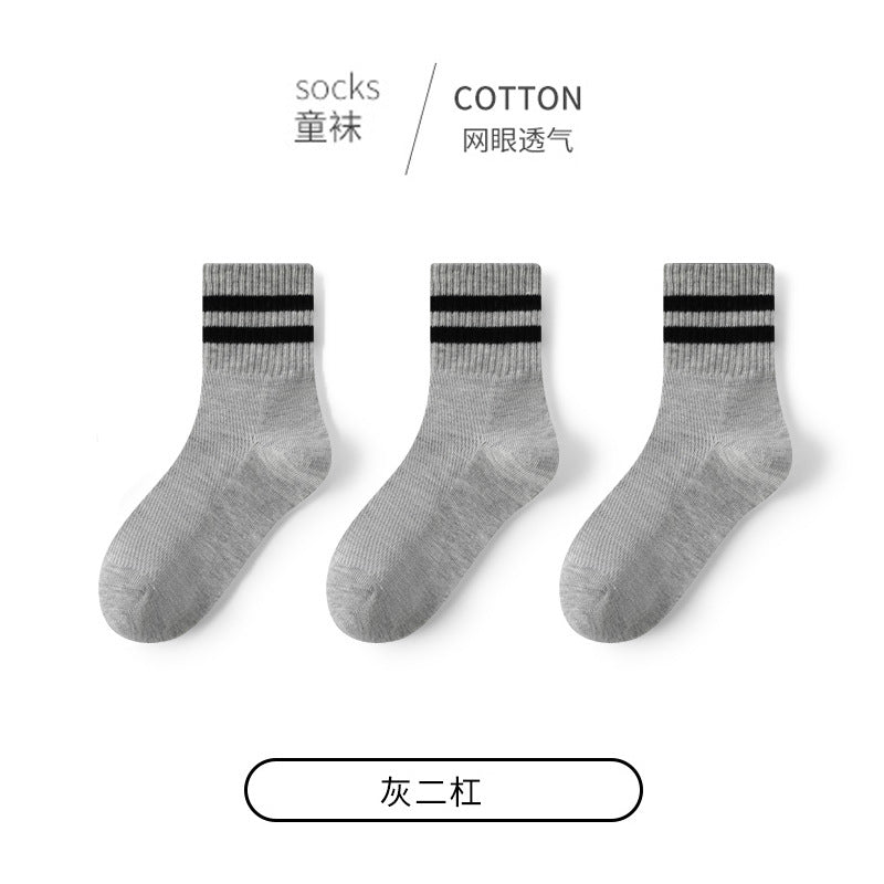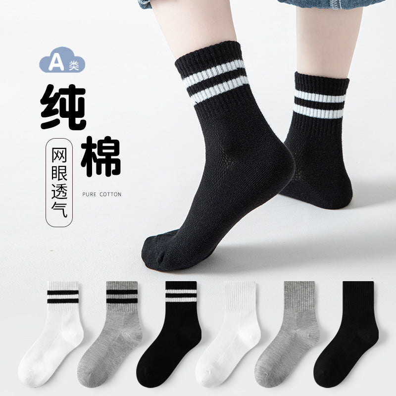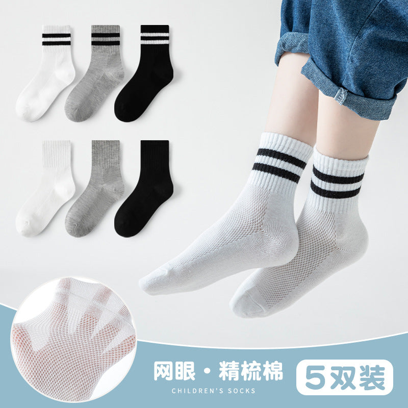 GI25073111兒童襪子春夏薄網眼女童男童中筒襪黑白灰學生襪中大童棉襪