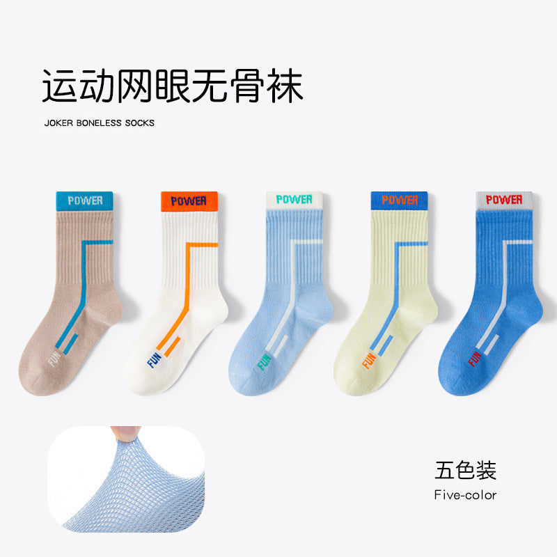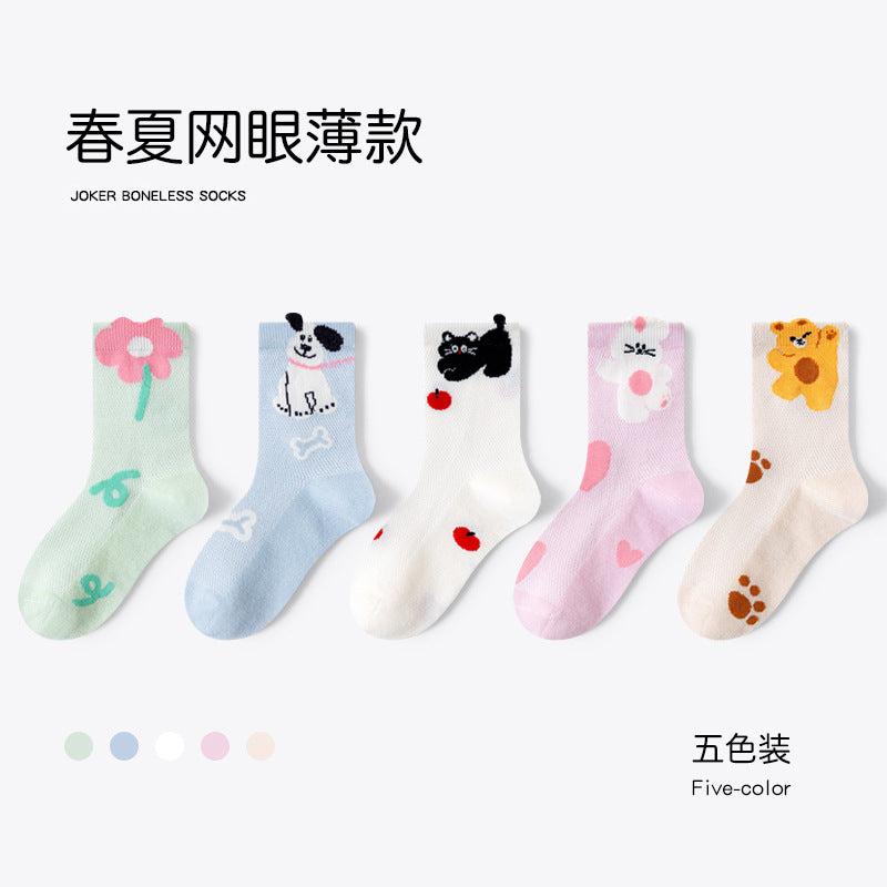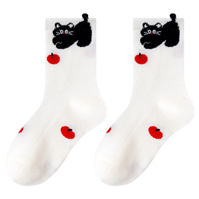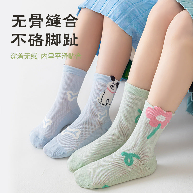 GI25073114兒童襪子 春季女孩可愛卡通中筒棉中大童網眼女童無骨襪男孩