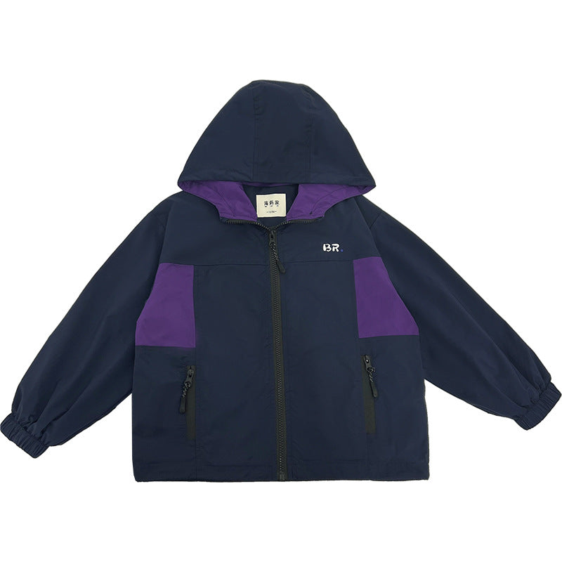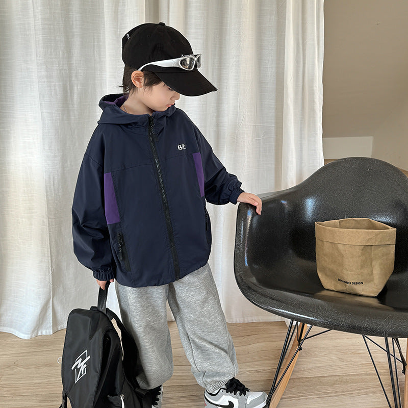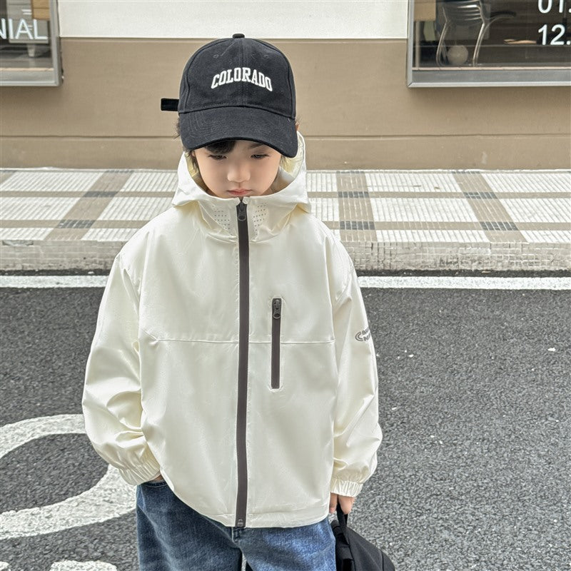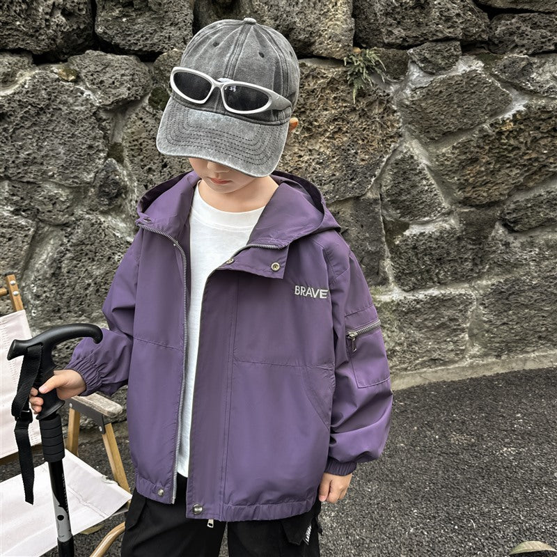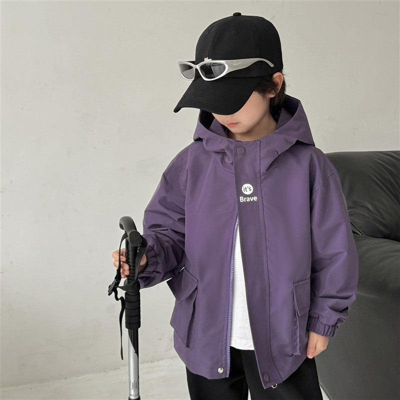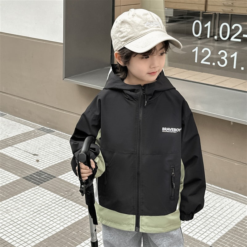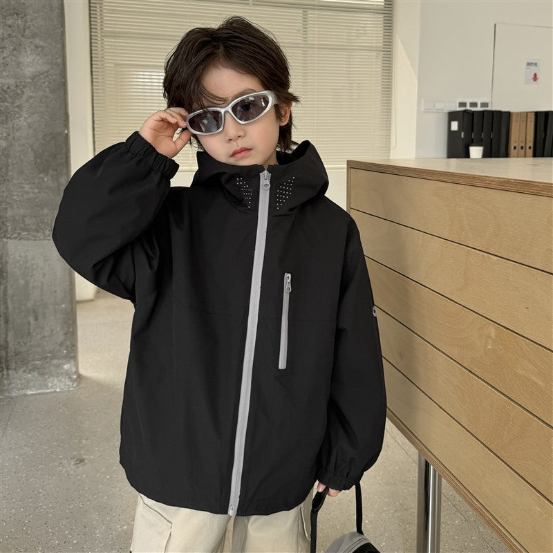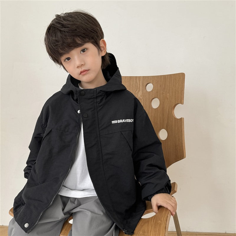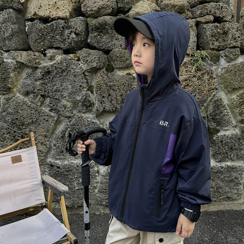GJ25082703秋季新款男童連帽衝鋒衣軟殼外套兒童戶外秋裝衣服露營
