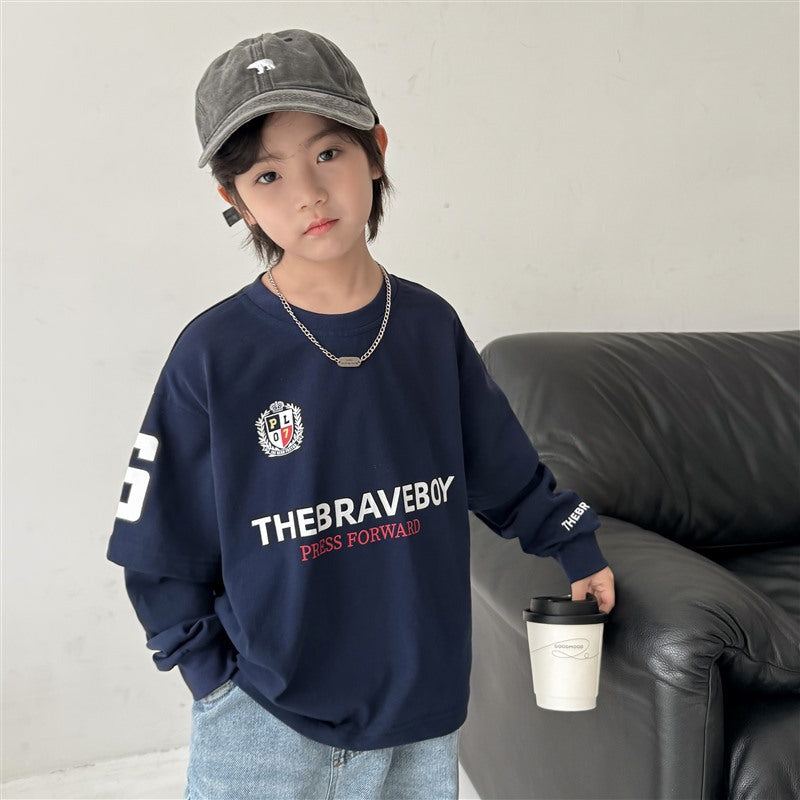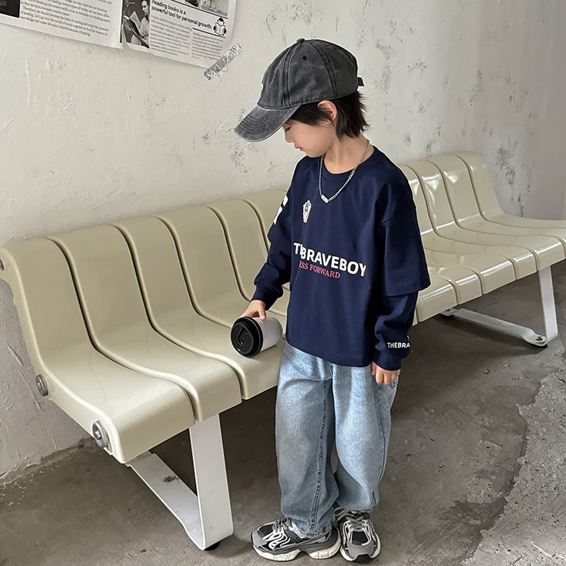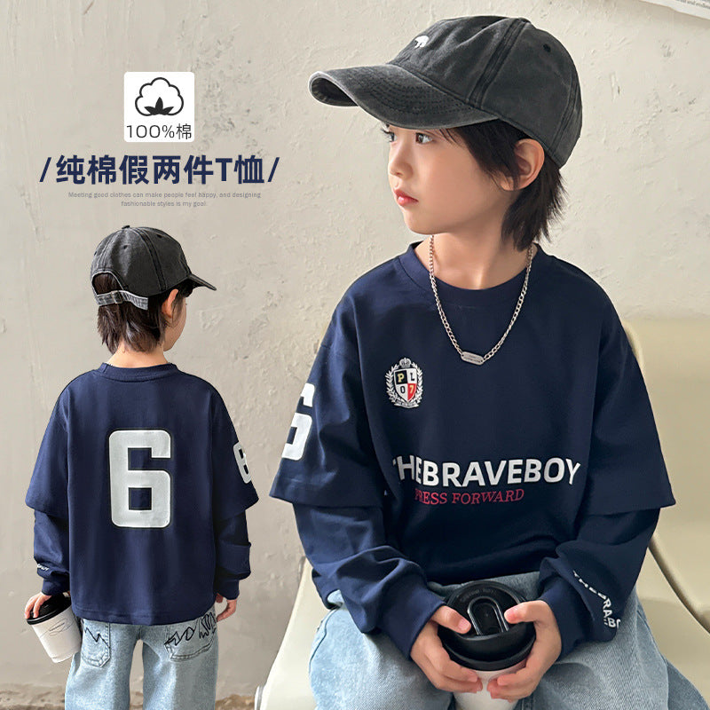 GJ25082719春秋新款男童純棉假兩件長袖T卹秋裝衣服中大童運動服