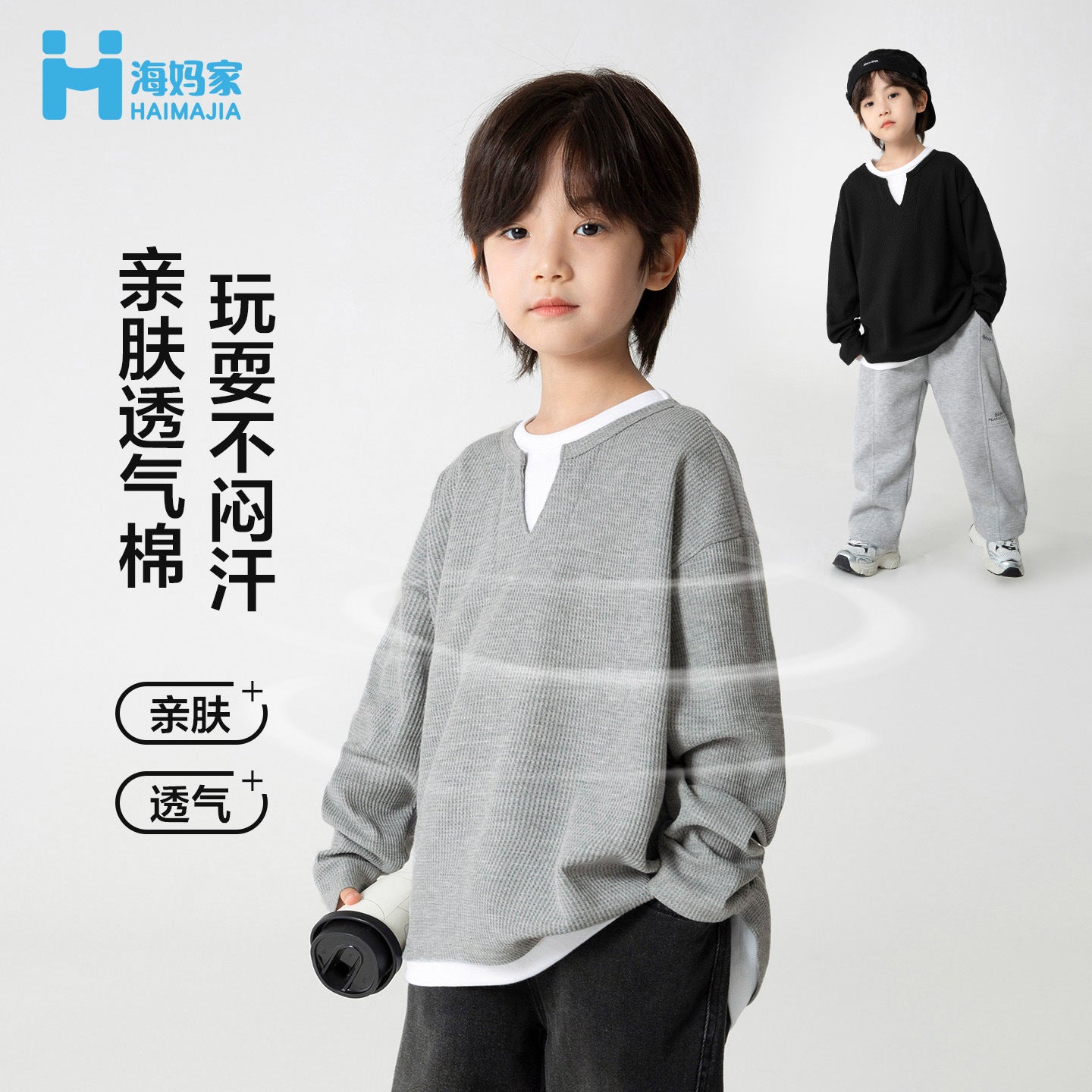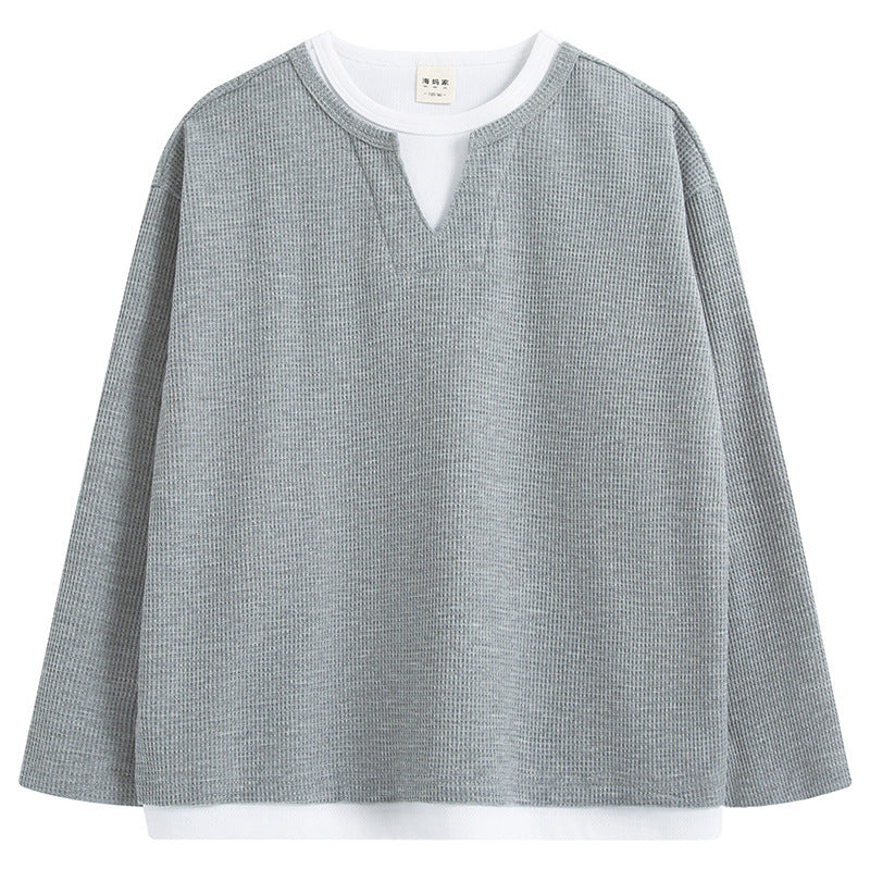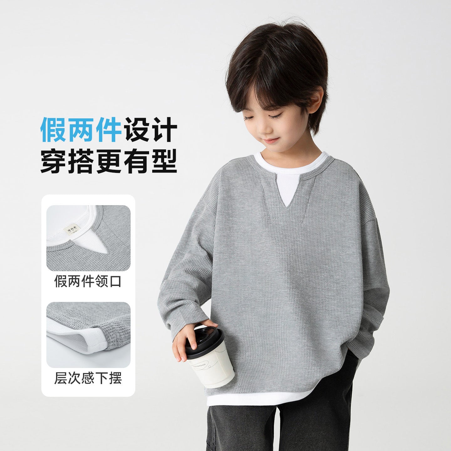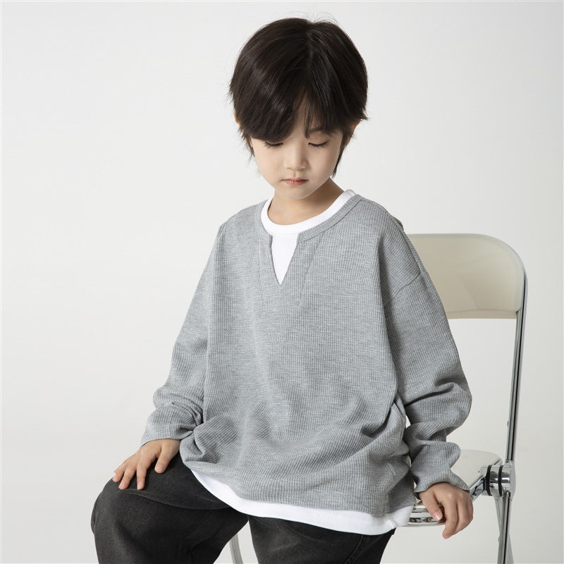 GJ25082720童裝2025春秋新款男童韓版潮範T卹假兩件衣服大童洋氣秋裝