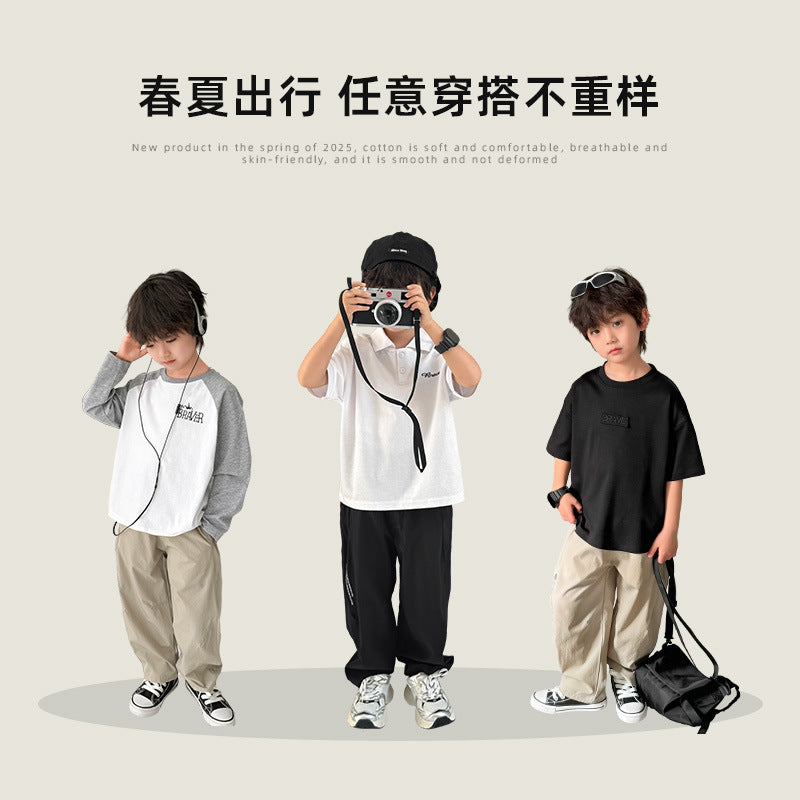GJ25082725男童軟殼休閒褲三防長褲2025年兒童韓版童裝新款工裝褲子秋裝