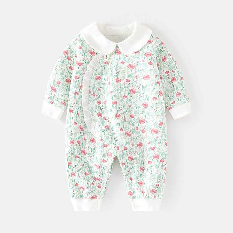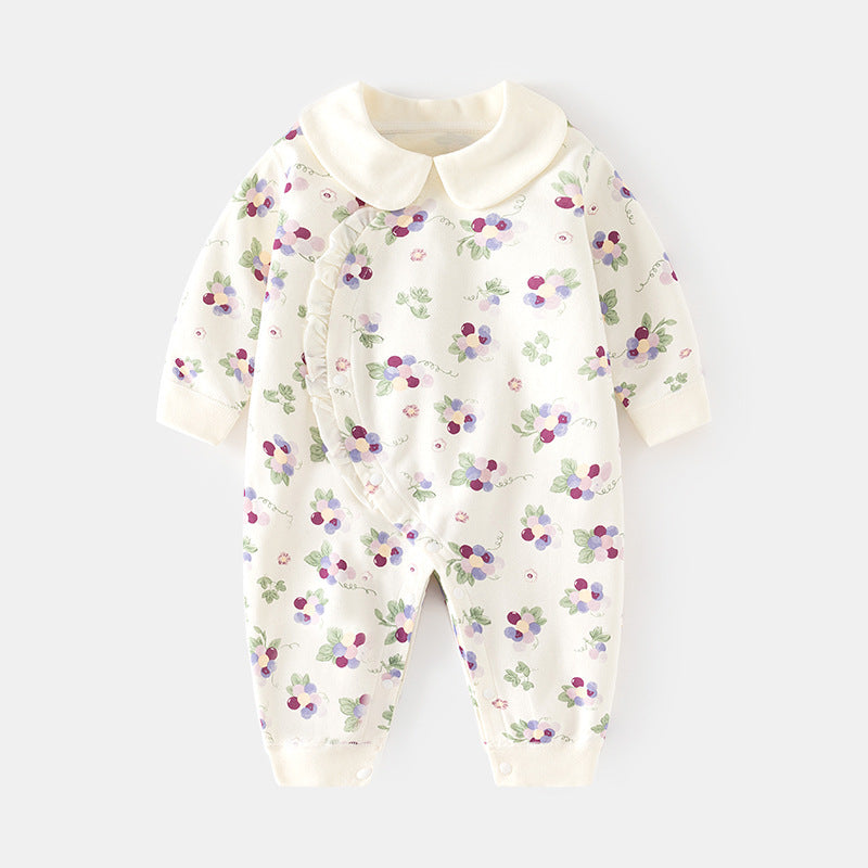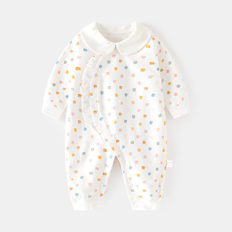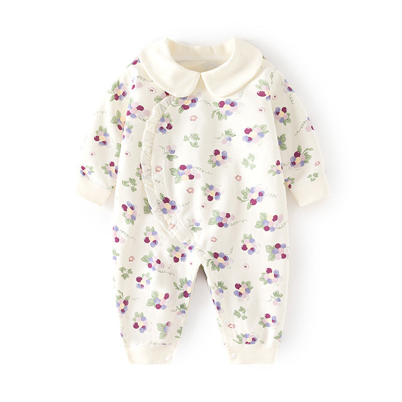 GJ25102102嬰兒春秋連身衣寶寶無骨長袖家居純棉爬服女嬰幼兒兒童印花對門哈衣
