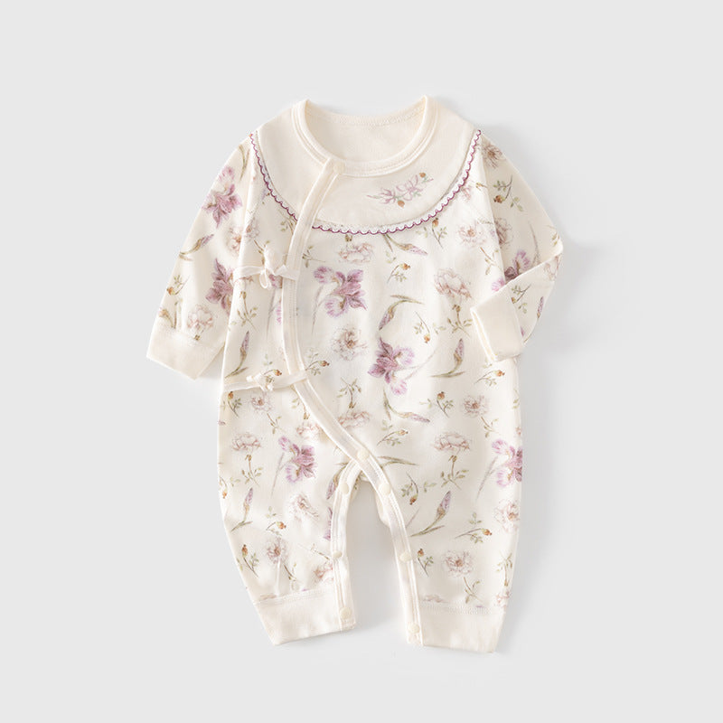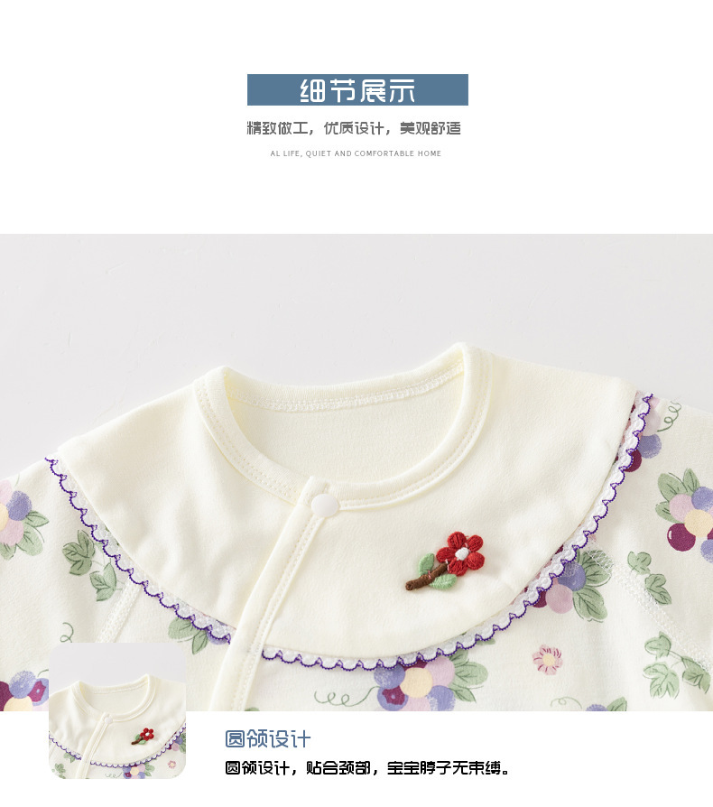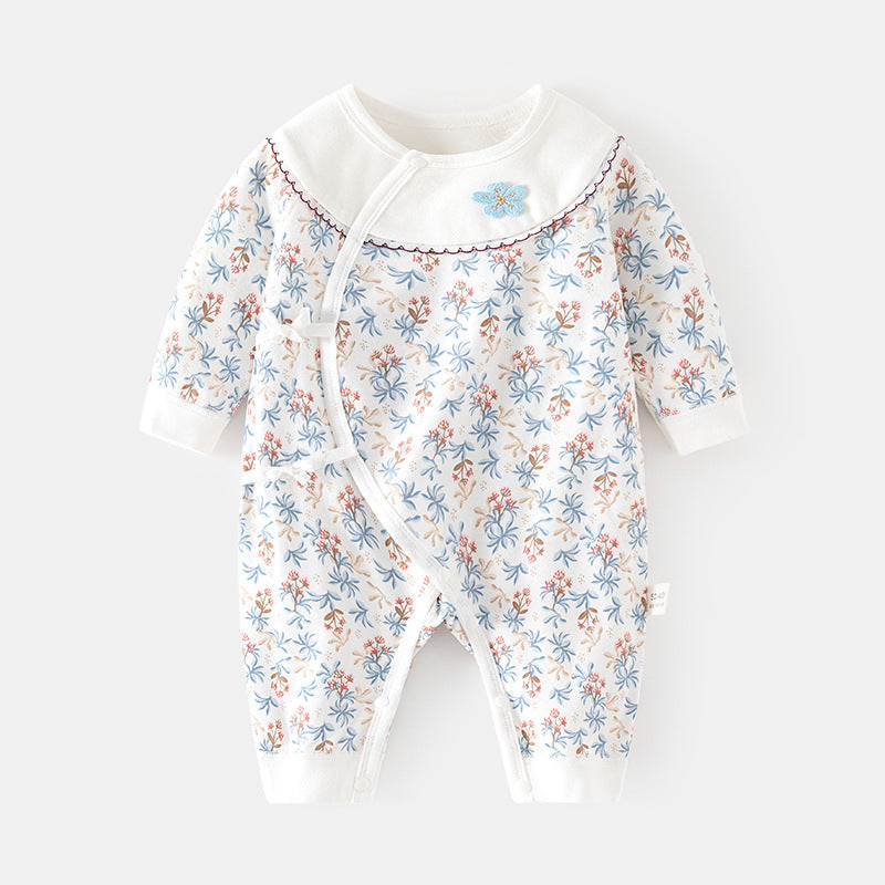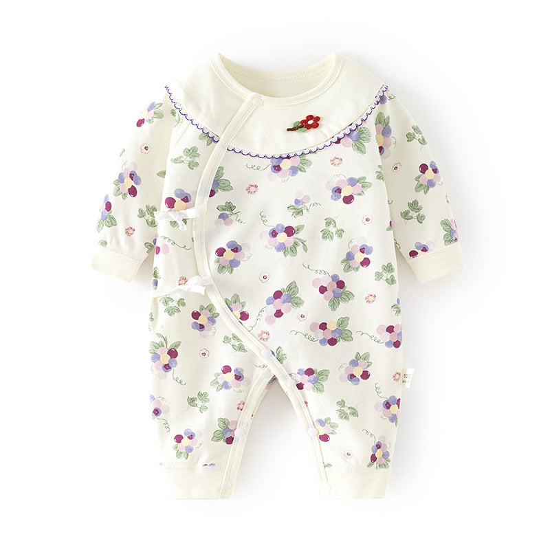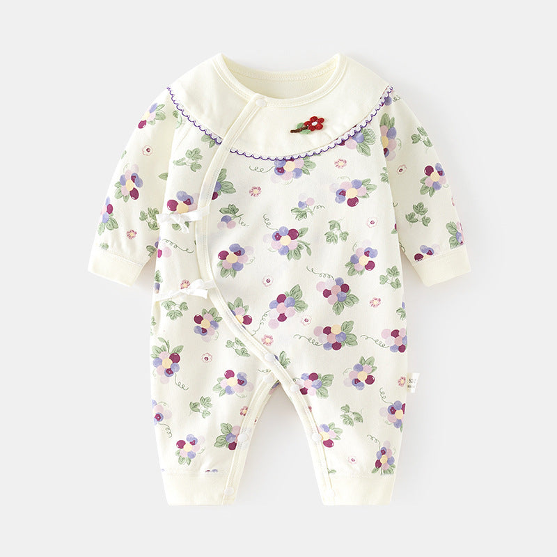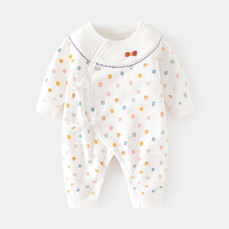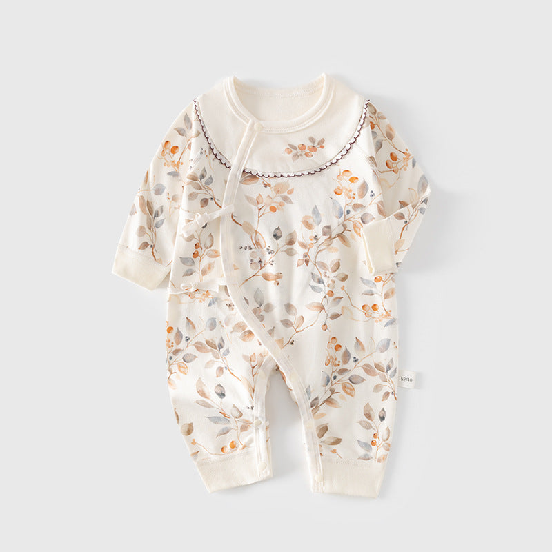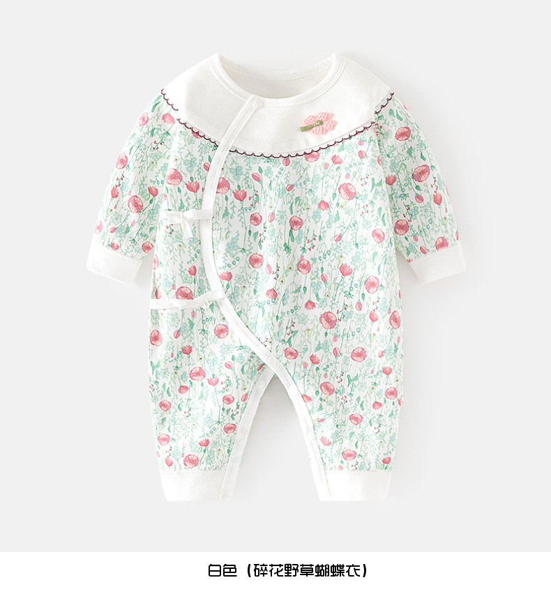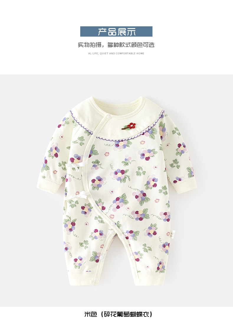 GJ25102108新生兒連身衣女寶寶無骨哈衣秋季純棉初生兒和尚服爬服春秋衣服