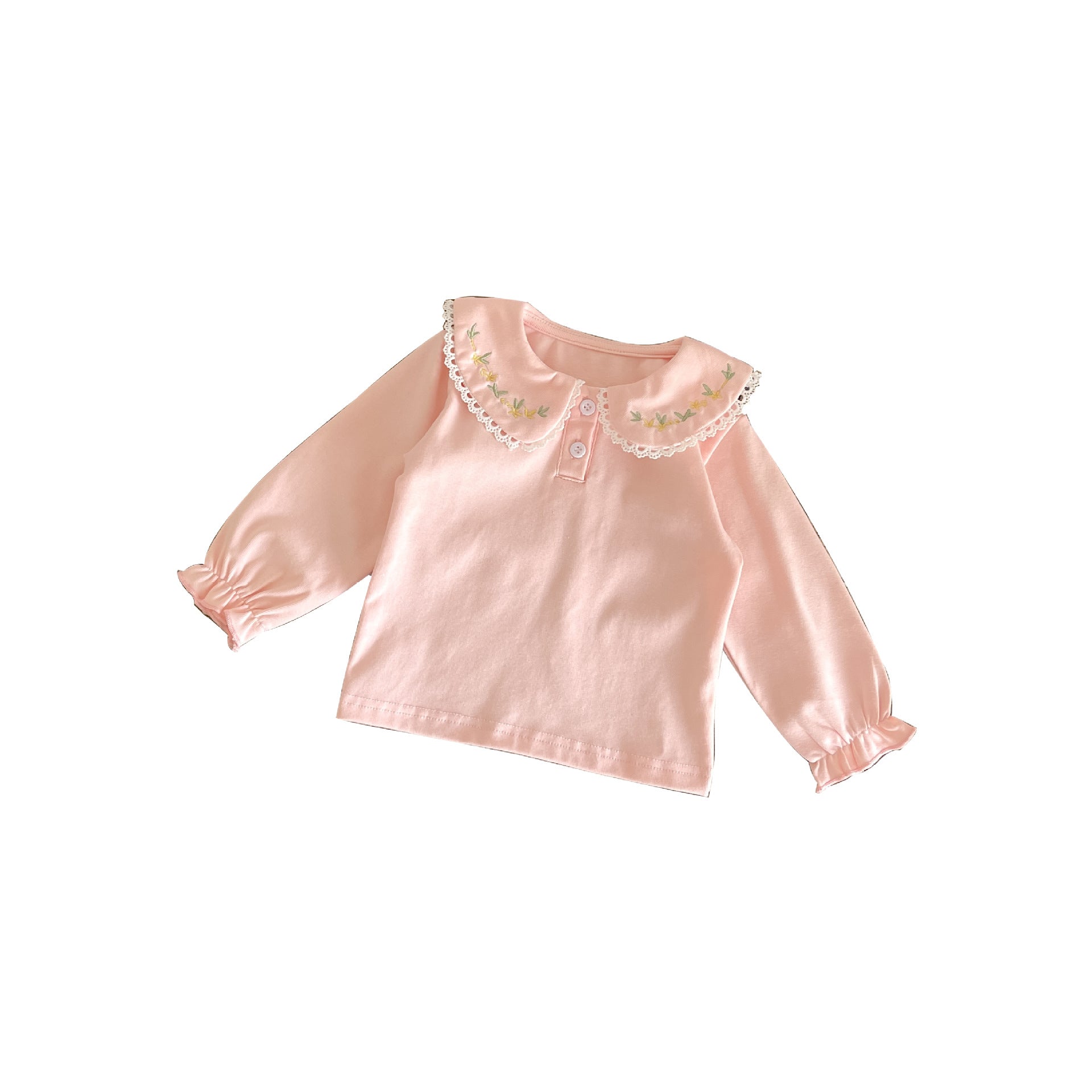 0-3岁女宝宝打底衫2023春秋款简约婴幼童绣花翻领上衣棉质长袖