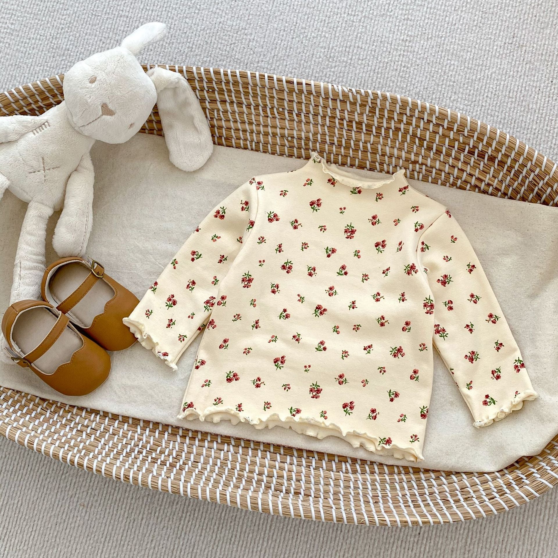 GK25121825春季女童半高領木耳邊打底衫洋氣女寶寶碎花薄長袖上衣(➡️2件或2套起,廠商才有出貨)(可以混搭開頭GK商品)