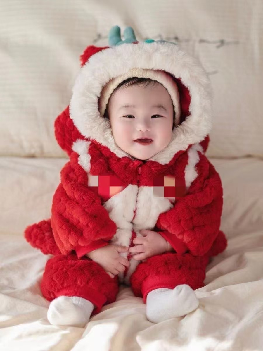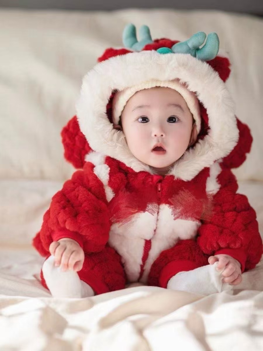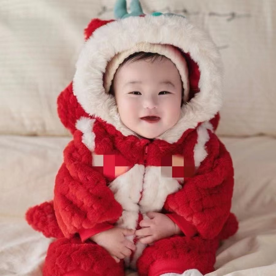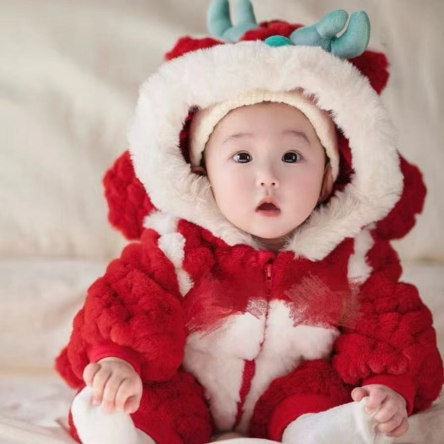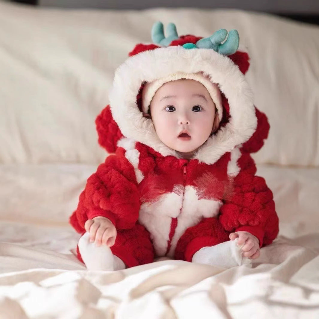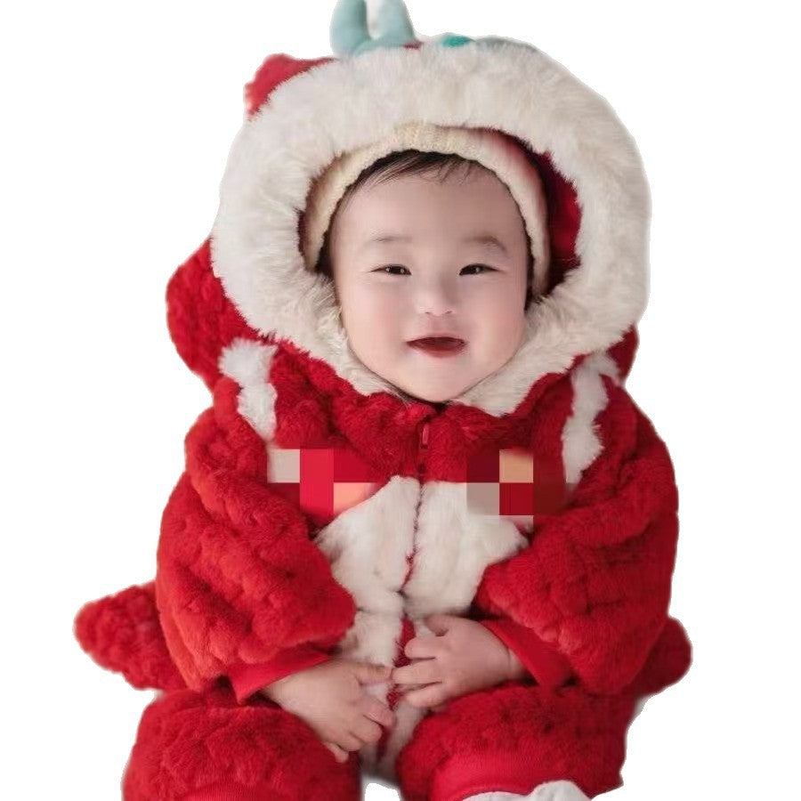 GM26010101寶寶冬季連身衣加絨加厚毛衣寶寶超喜紅色慶新年外穿爬爬服