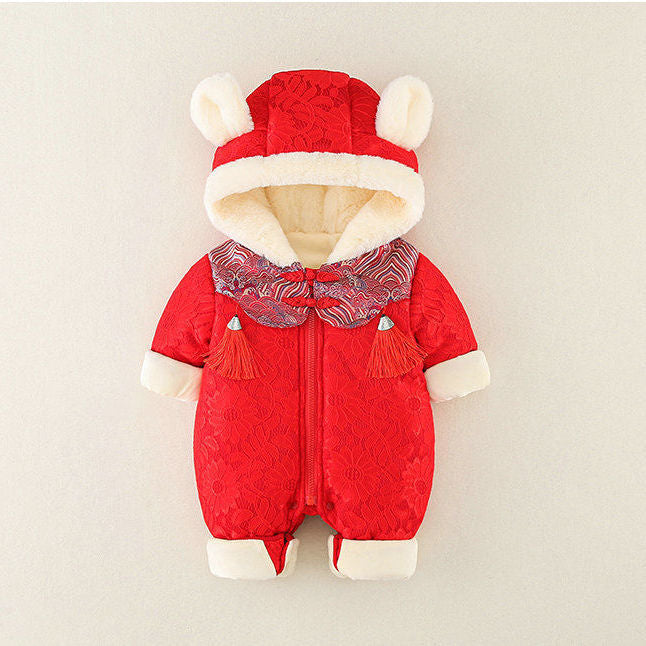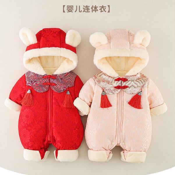 GM26010102寶寶冬季款加厚連身衣滿月男寶寶秋冬裝加棉可愛公主外出拜年服
