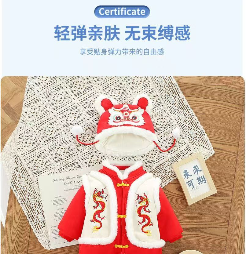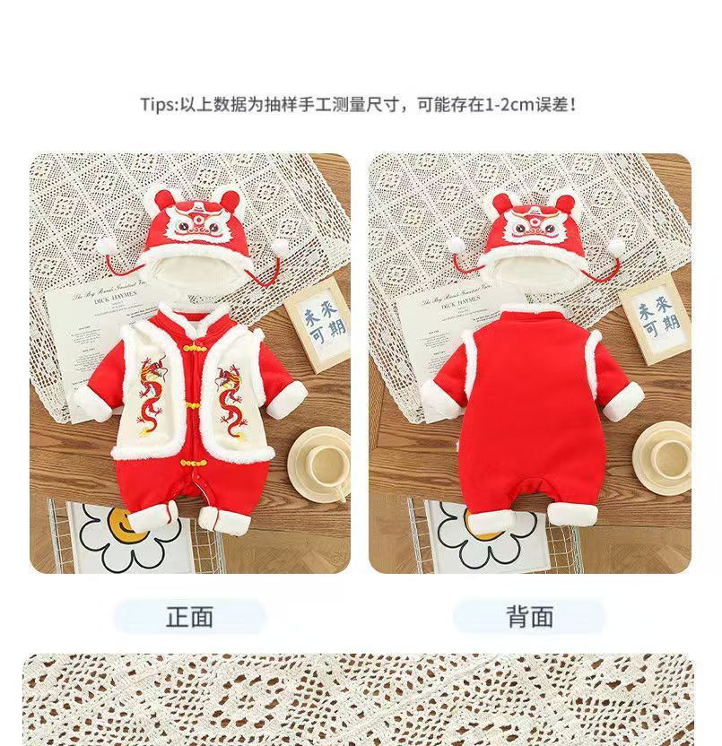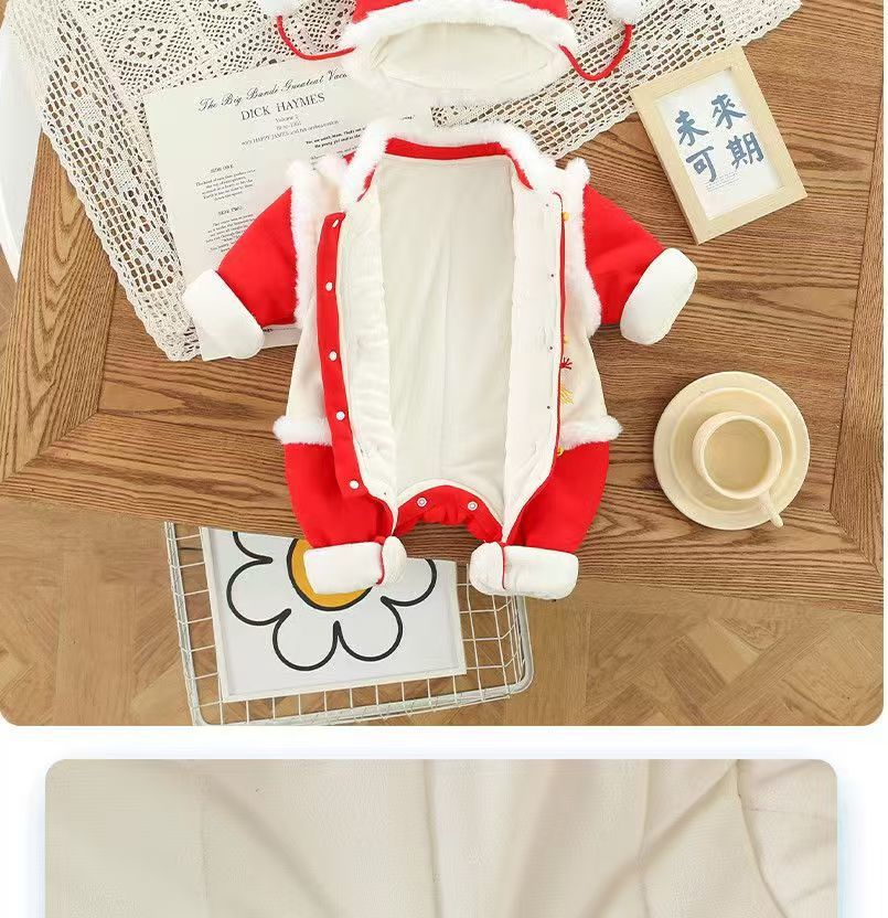 GM26010103嬰兒拜年服喜慶連身衣寶寶冬裝滿月百日週歲禮服新生兒過新年衣服
