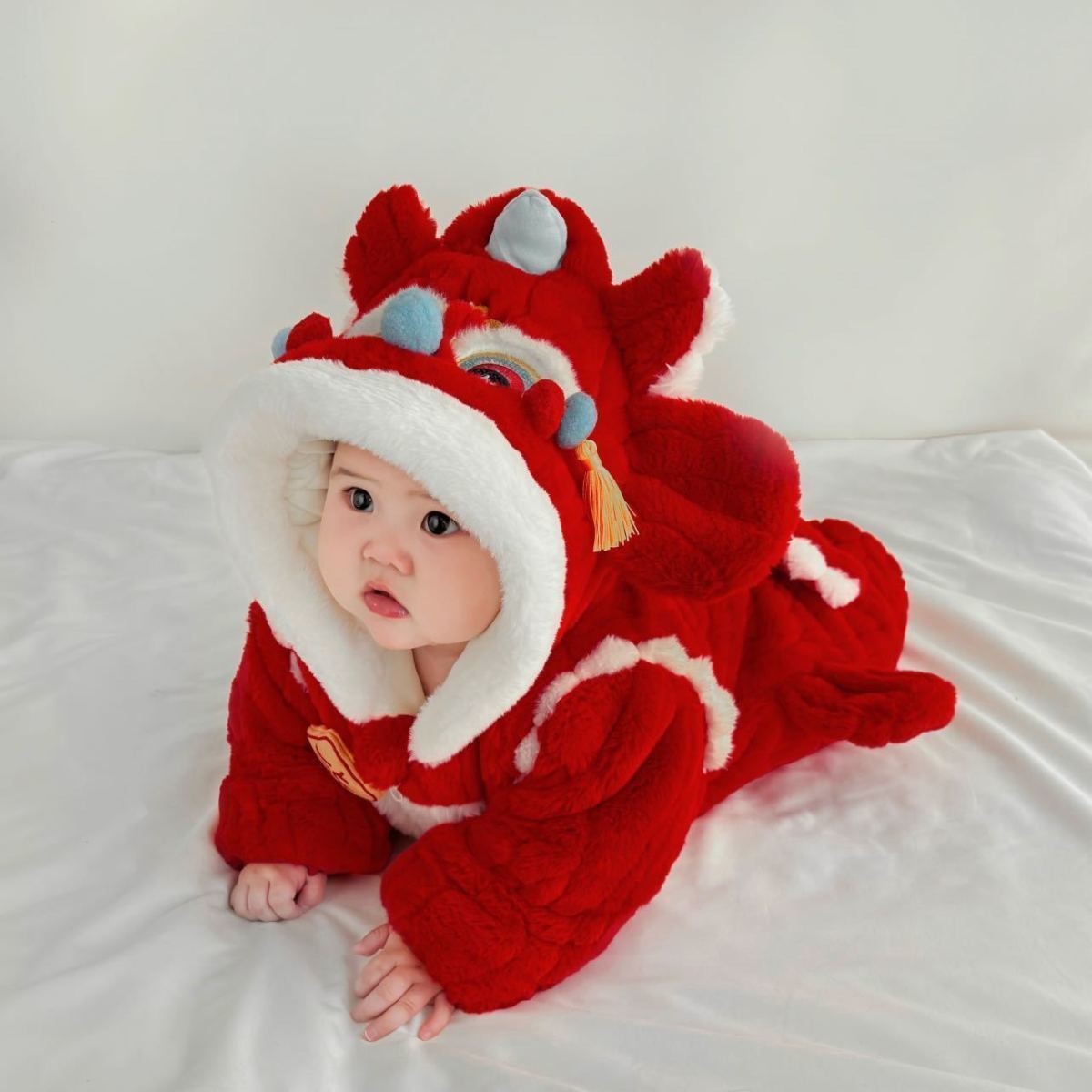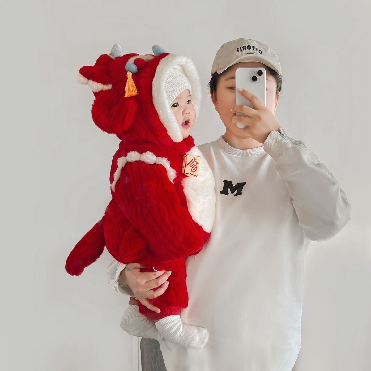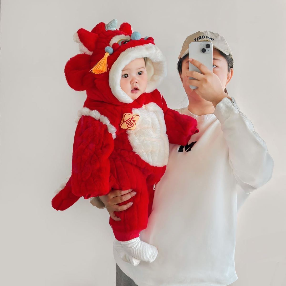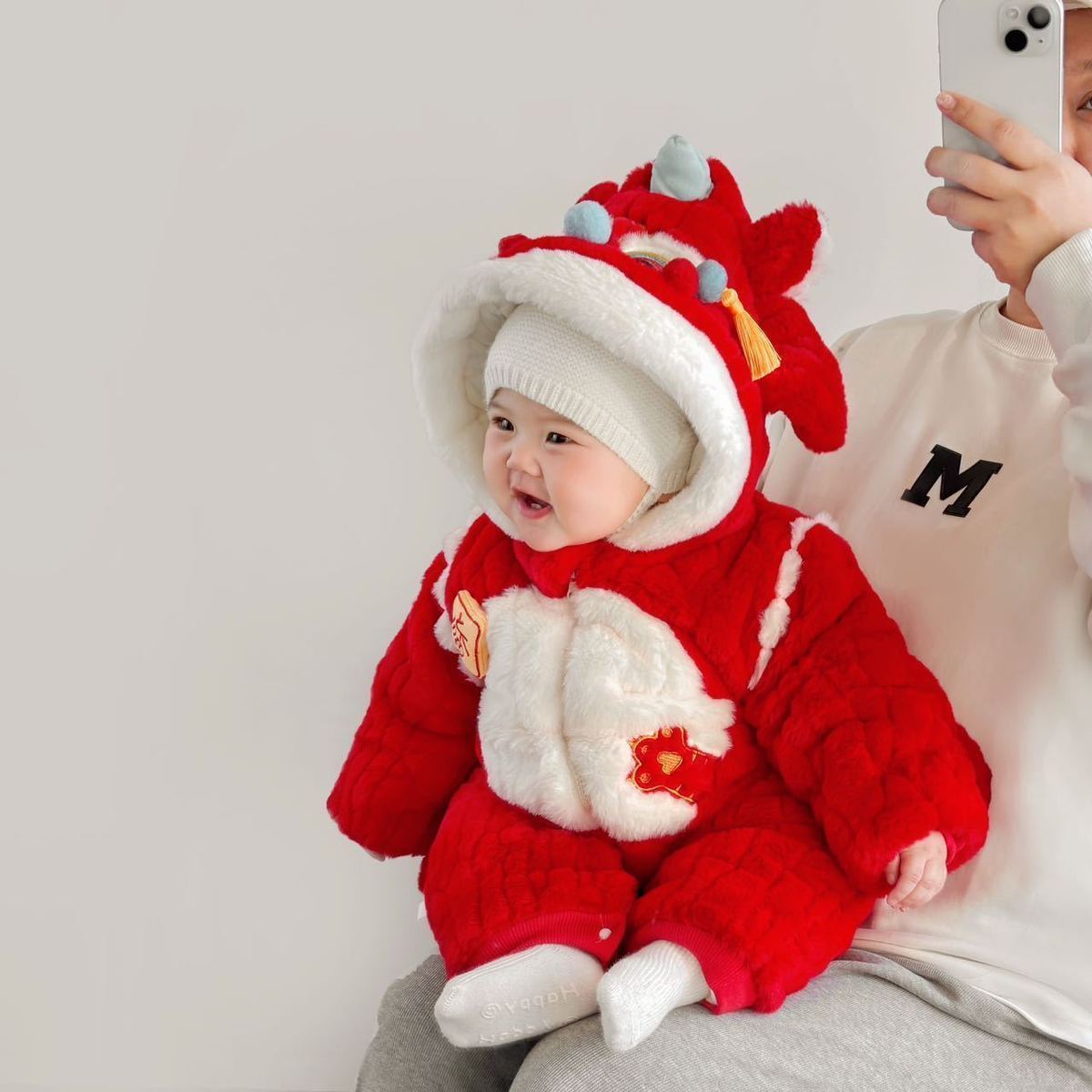 GM26010107寶寶連身衣服冬裝寶寶拜年服加絨加厚哈衣紅色喜慶超萌過年外出服