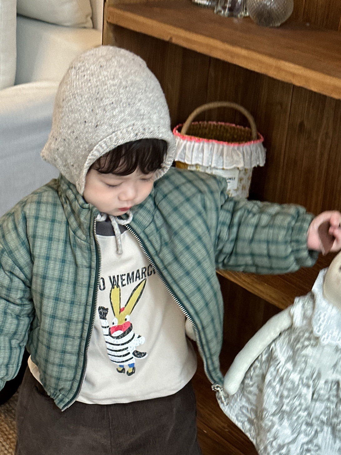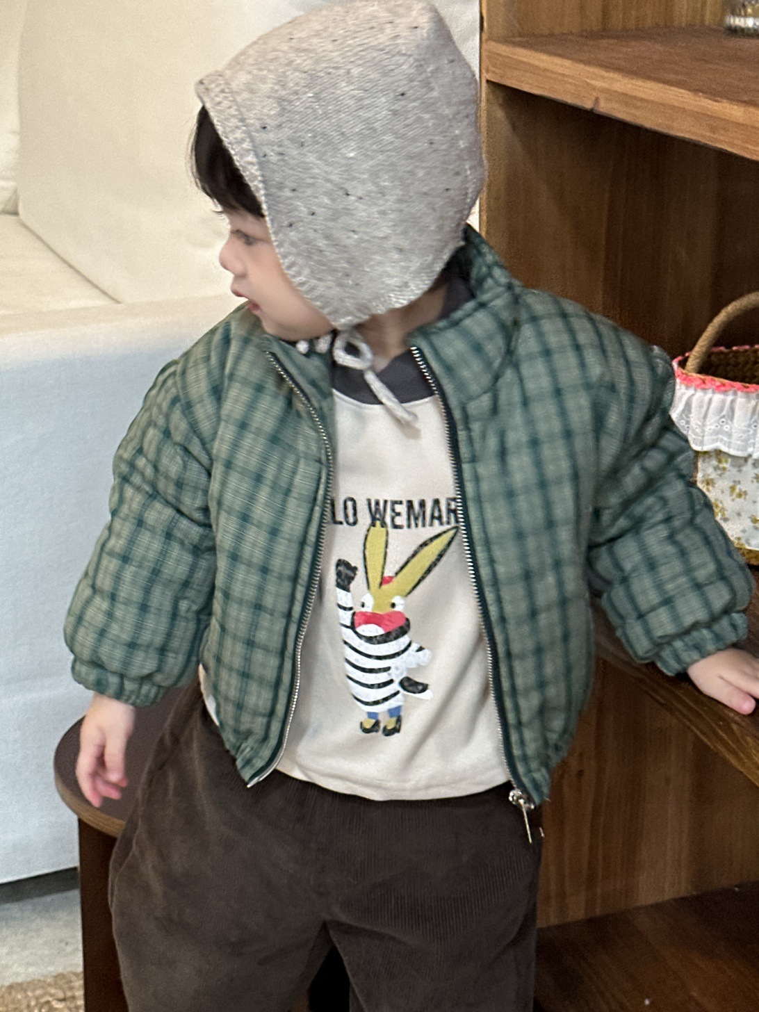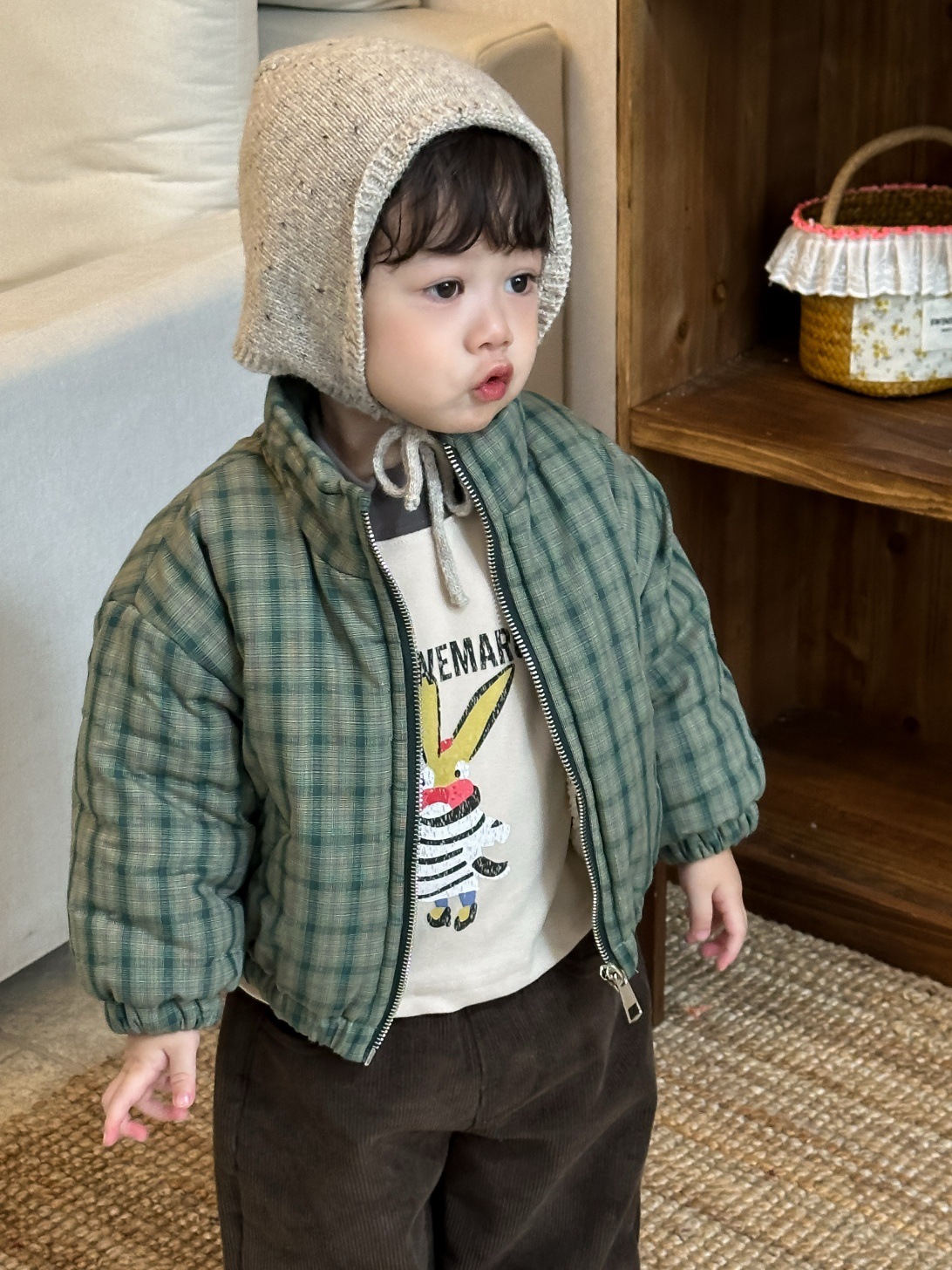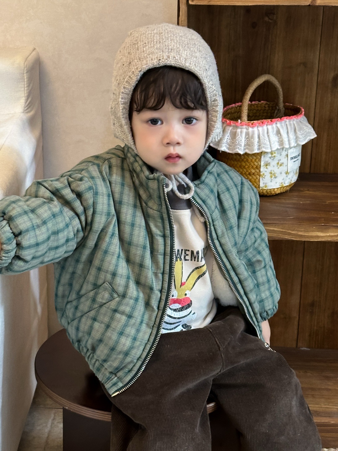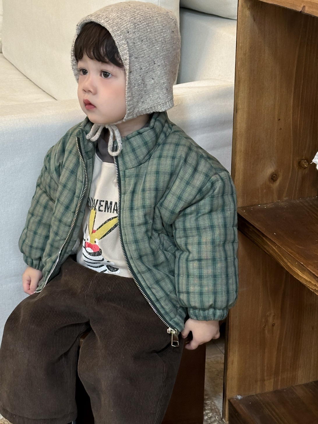 GN26012701兒童格子棉衣外套秋冬款韓版童裝小寶寶衣服冬季加厚男童衛衣套裝