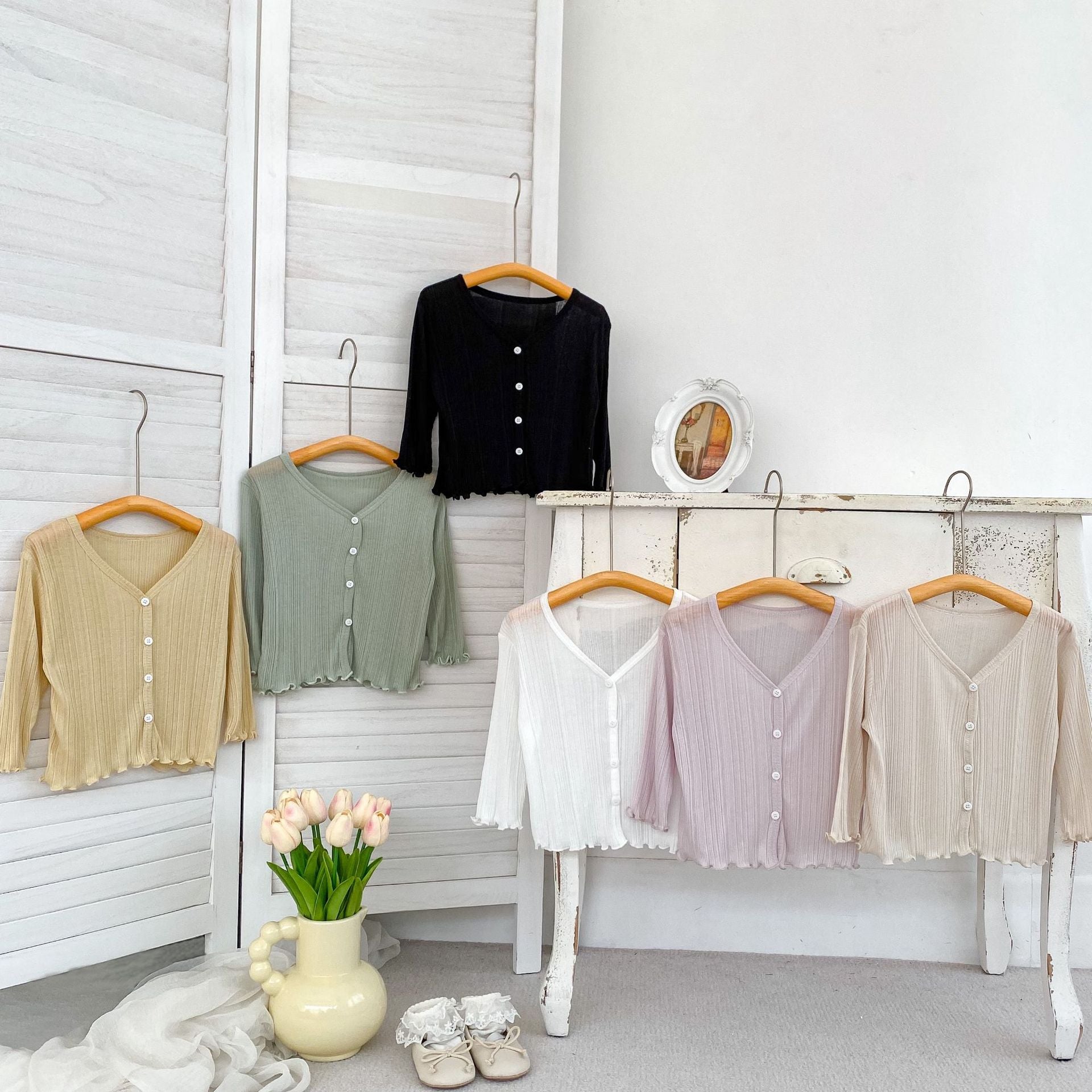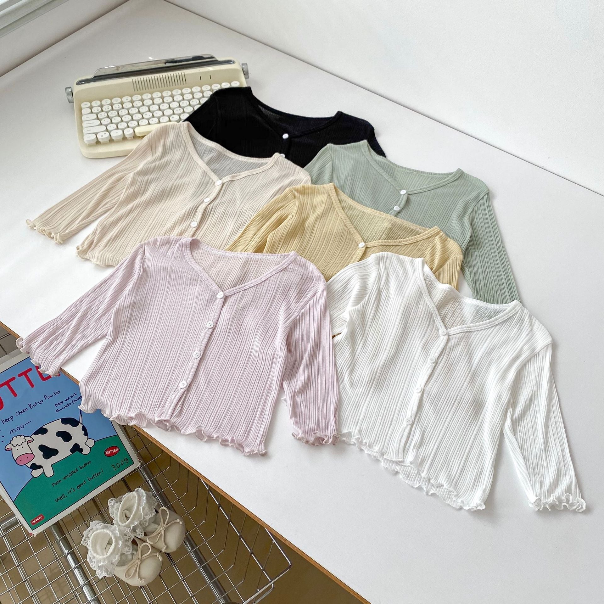 GN26030915女童防曬衣純色輕薄洋裝女寶寶夏季木耳邊開襟裙(2件起批)GN開頭需下單2款才有出貨,可混搭