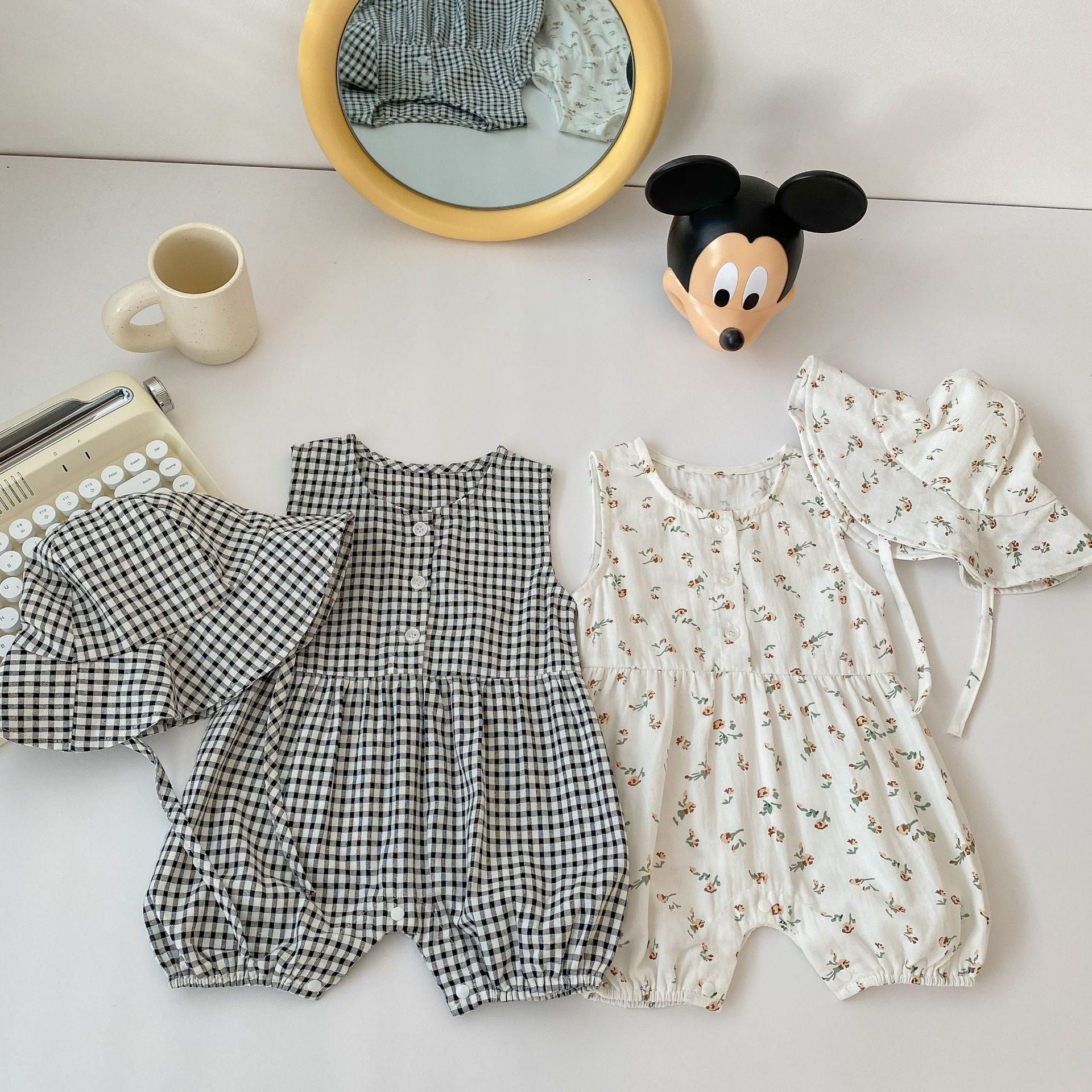 GN26030916ins夏季女寶寶洋氣格紋碎花無袖哈衣包屁衣圓領嬰兒連身衣爬爬服2件起批)GN開頭需下單2款才有出貨,可混搭