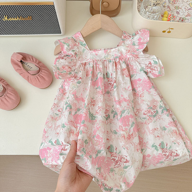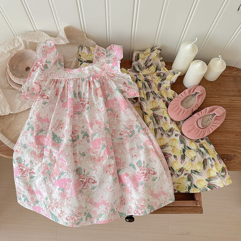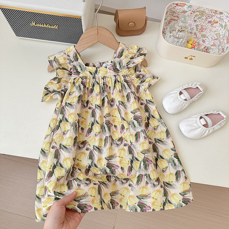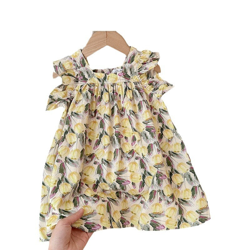 J24022906童裙2024春夏女童純棉飛袖裙兒童韓版沙灘裙度假裙背心裙