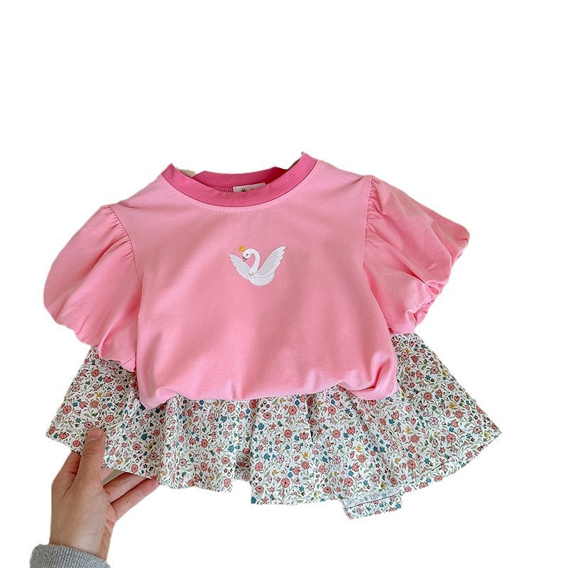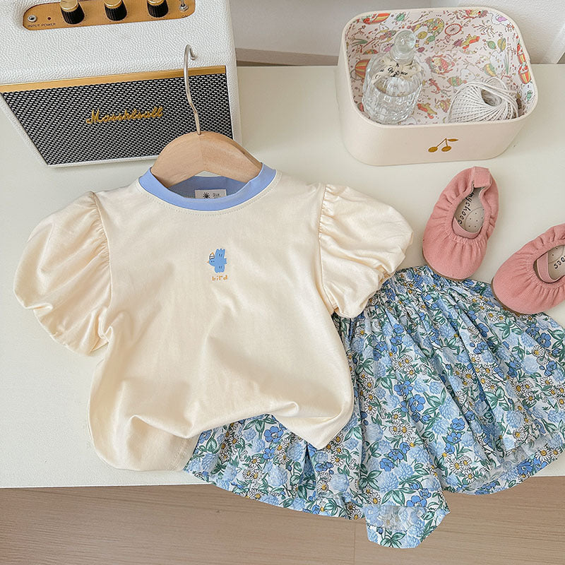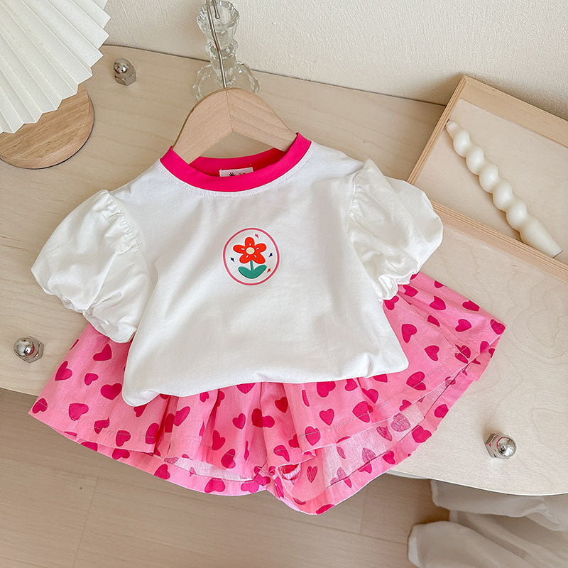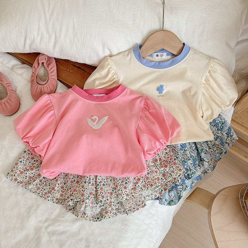 J24022909夏季新女孩套裝可愛泡泡袖上衣加韓版牛仔褲洋氣兩件式夏款