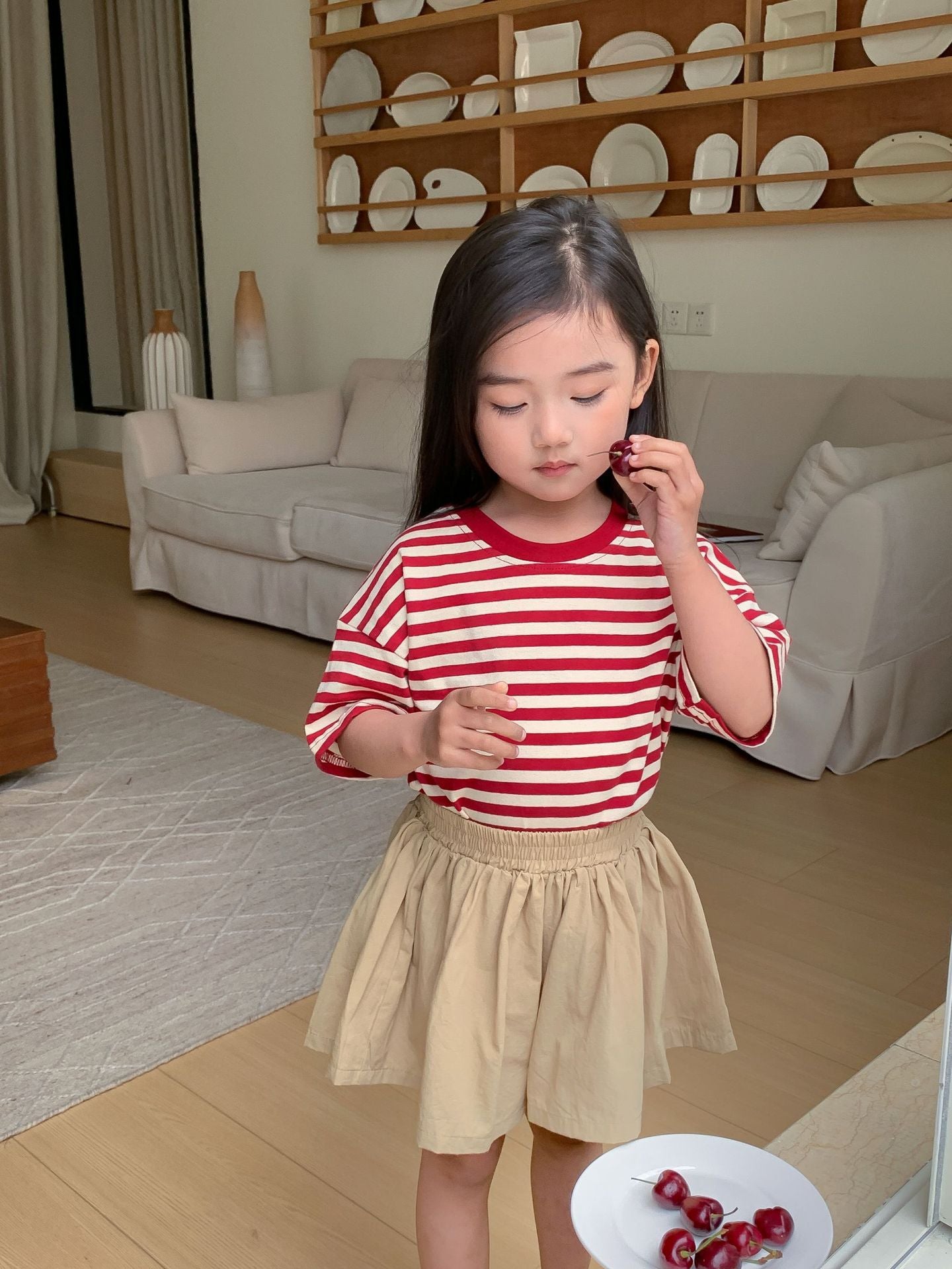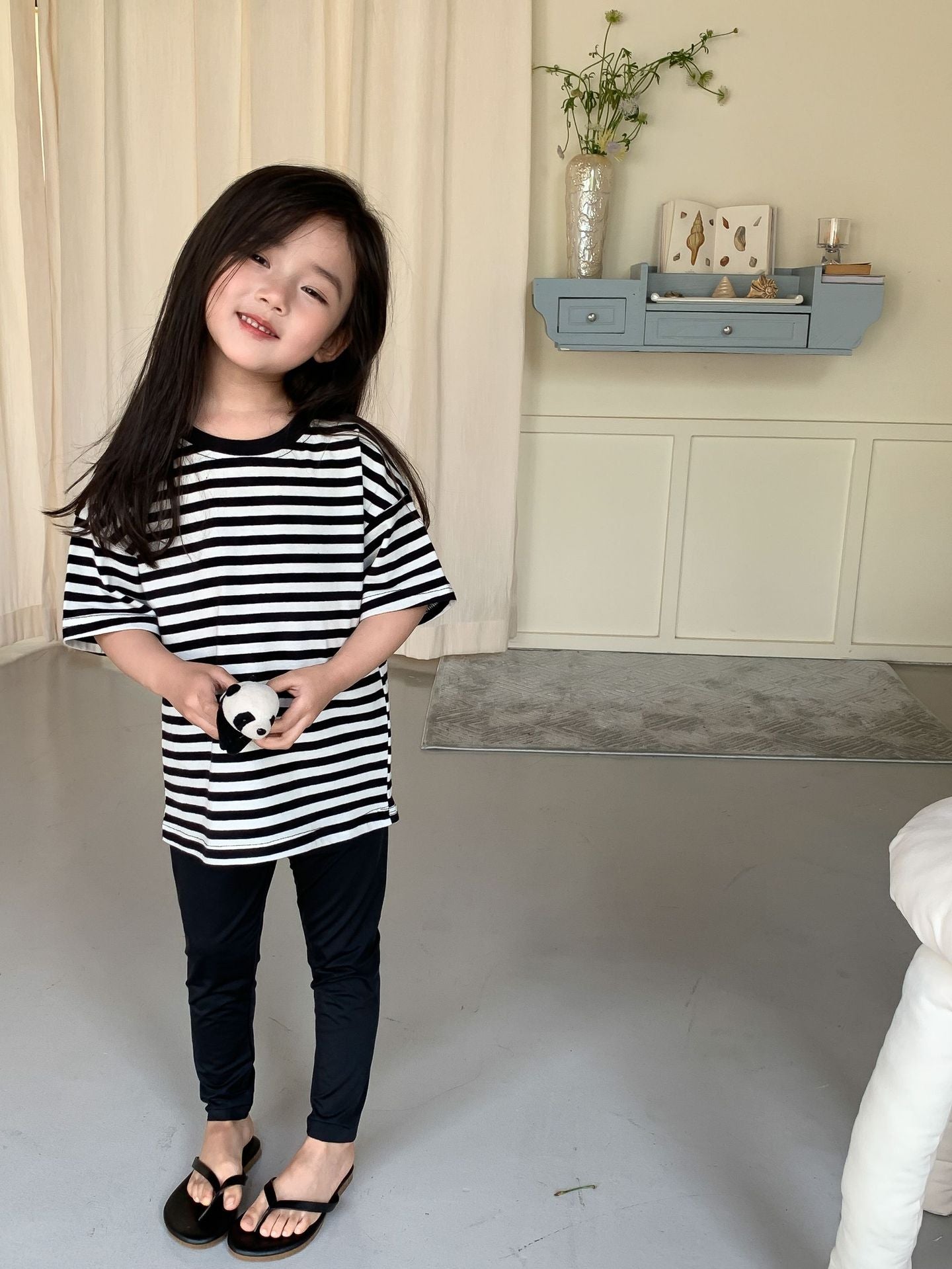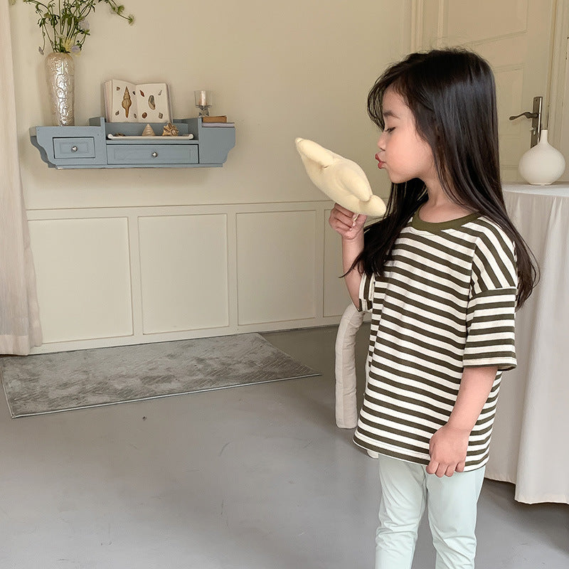J24022911童T恤2024春季男女童韓版條紋短袖兒童圓領休閒寬鬆上衣
